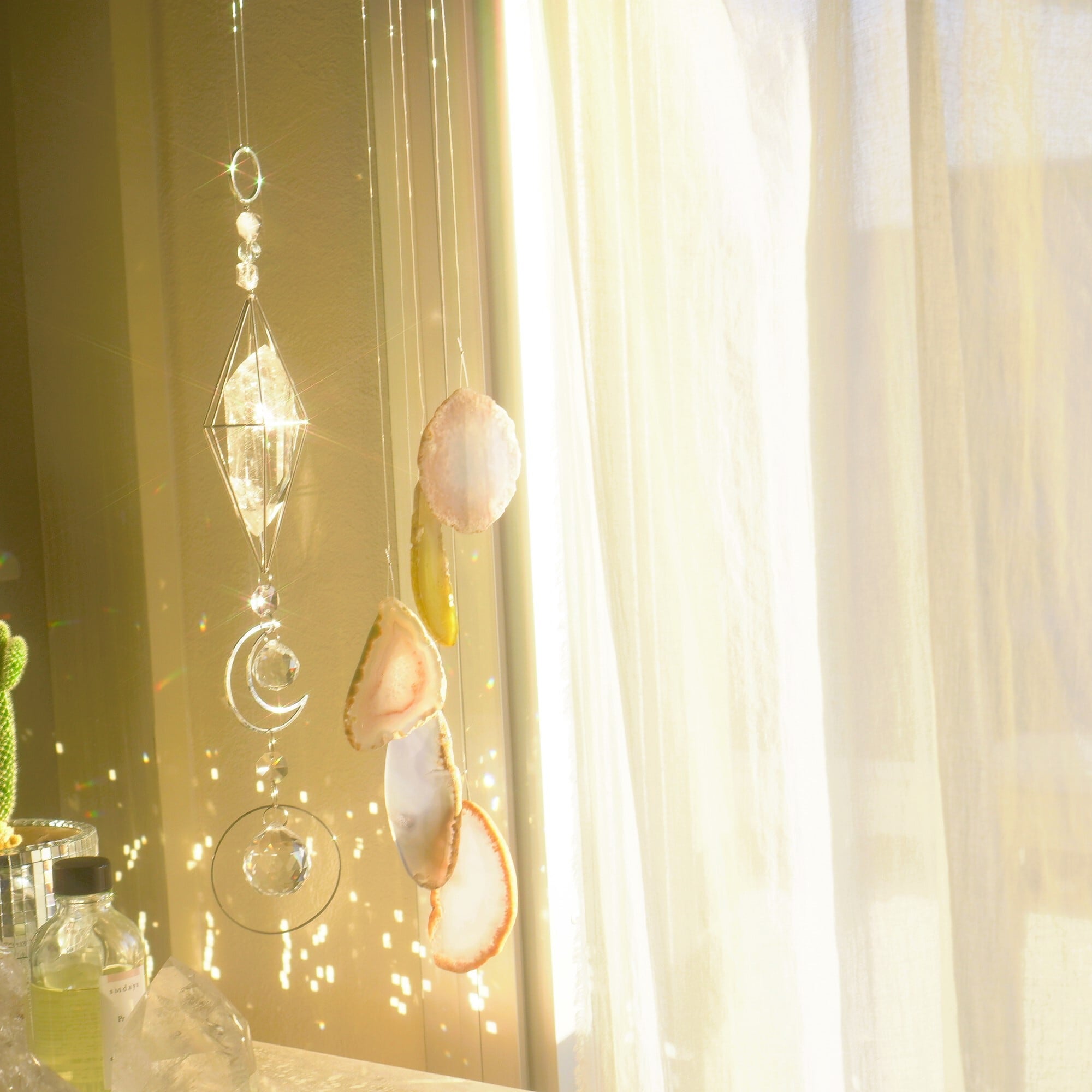 そしてカーテン越しではなく直射日光を当てた際のサンキャッチャーとしてのチャイムも、ピカピカとした美しい光をお部屋の中に運んでくれます。