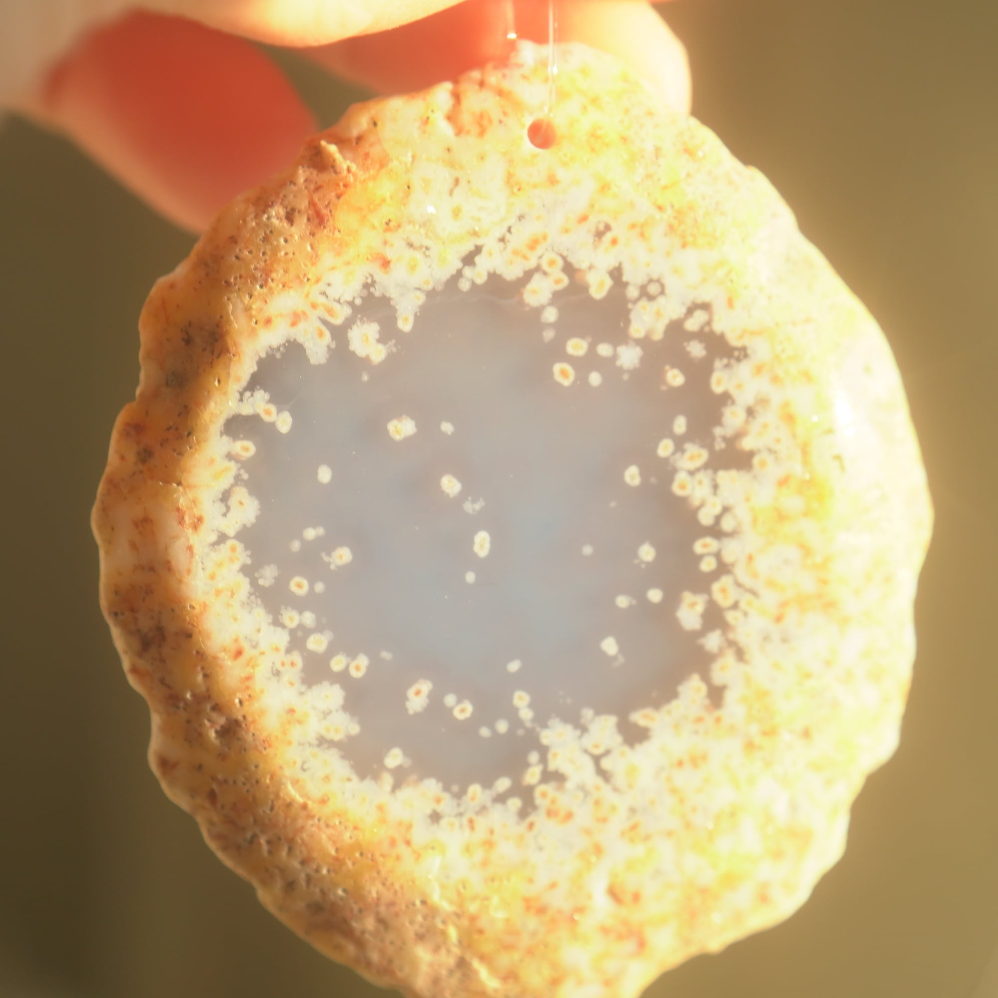 ✧染色の石なので耐光性(光による経年でのカラー変化の耐性)に優れているわけではなくベランダなど一日の中で長時間強い日光に当たるような場所に飾られるのはおすすめしないのですが、陽光に透かした時にだけ真価を発揮する美しさがありますので、是非、時折翳したりして光と一緒にお楽しみいただけたらと思います。特に濃い鮮やかな色など、色変化が気になられる場合は、日光のあまり当たらない場所に飾ってくださいね✧
