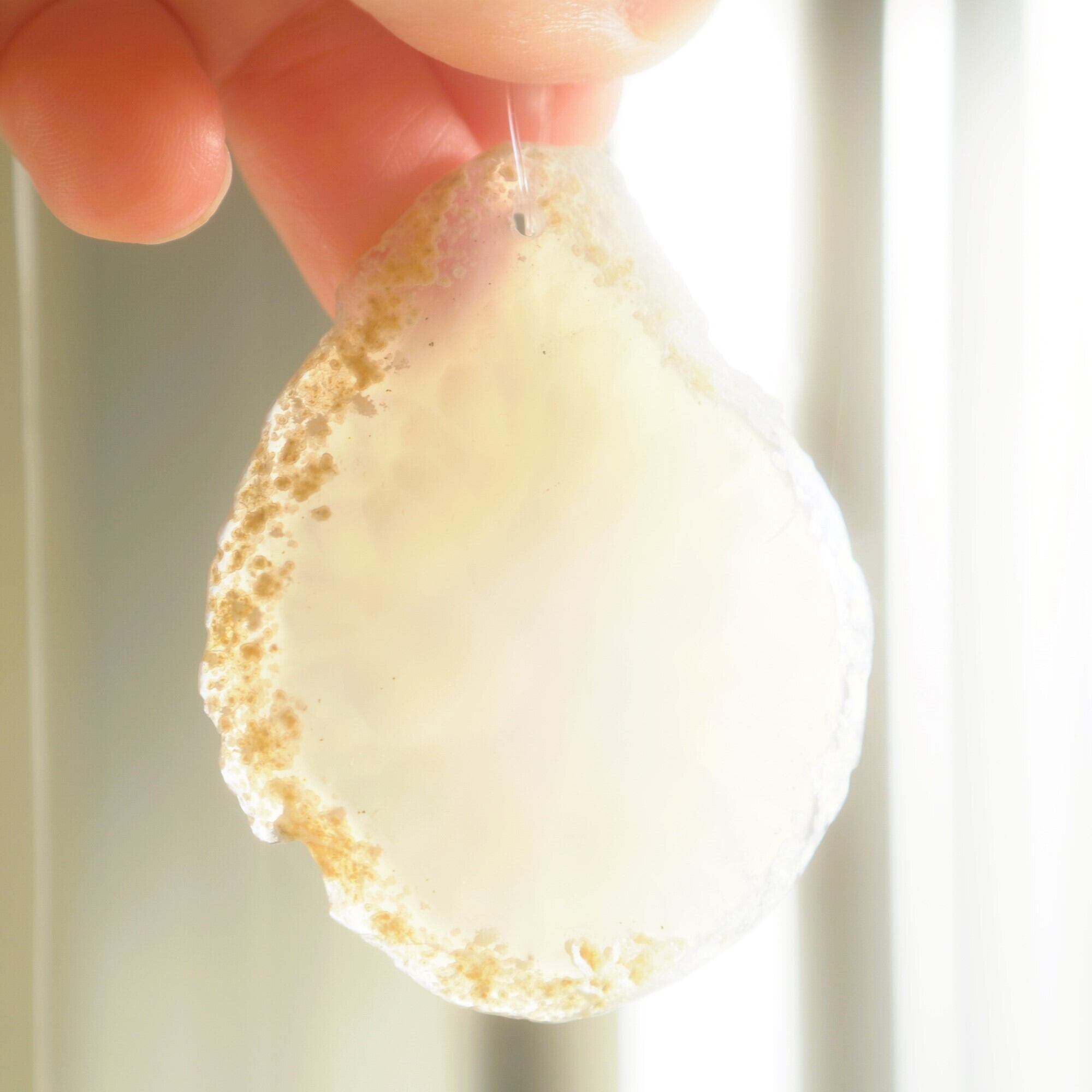 ✧瑪瑙の濃い色は染色によるもので、水に濡れた布で擦ると多少色落ちしますが、汚れが気になる時は若干の色落ち前提で水を軽く含ませた布やティッシュでやさしく拭いていただくことは大丈夫です。また、画像のような細かなヒビ・カケはスライスメノウの加工上避けられないことが多く、チャイムとしての機能や全体の外観を著しく損なうものを除き、見た目の完璧さ<音色の響きや石のもつ美しさ重視で選んで使用しております✧