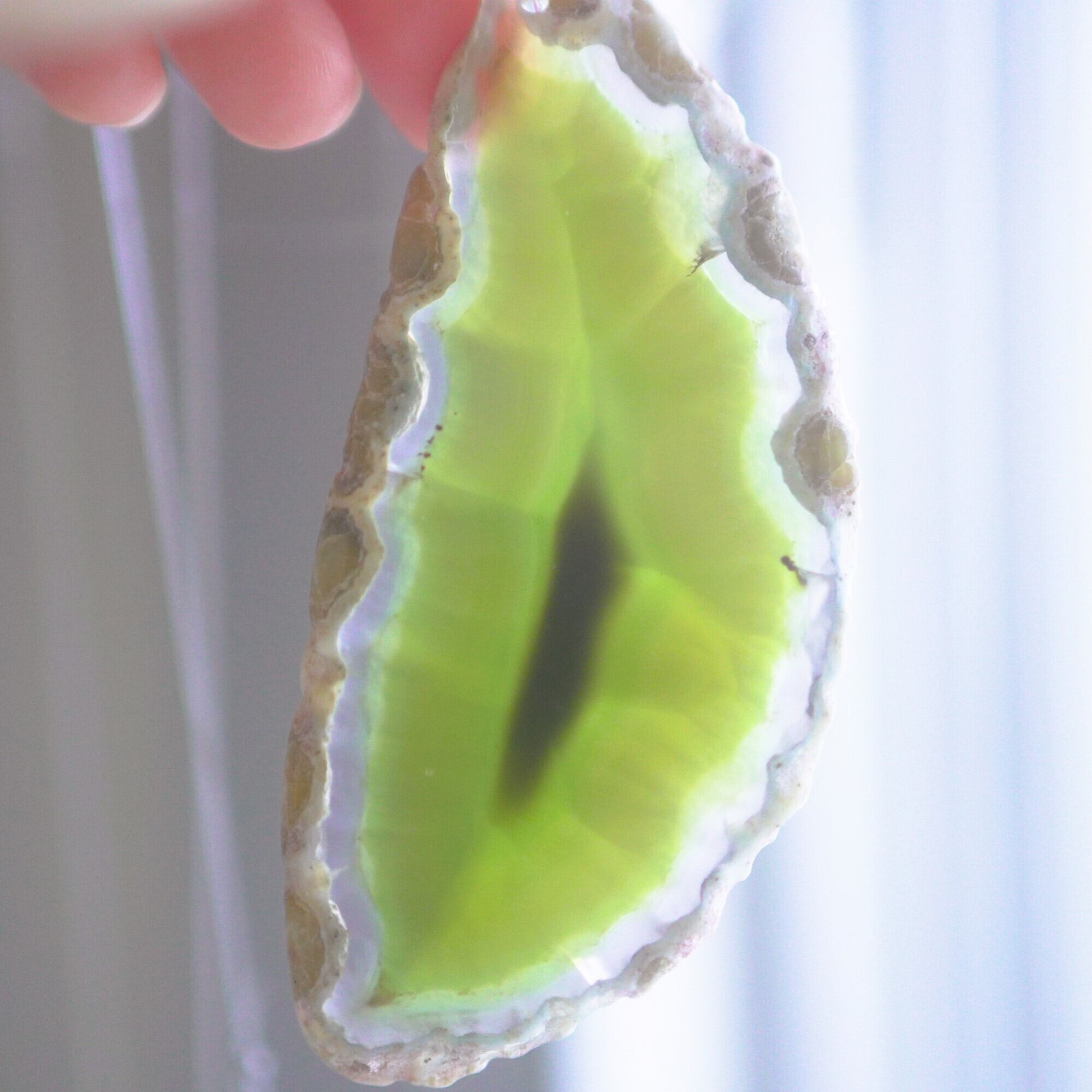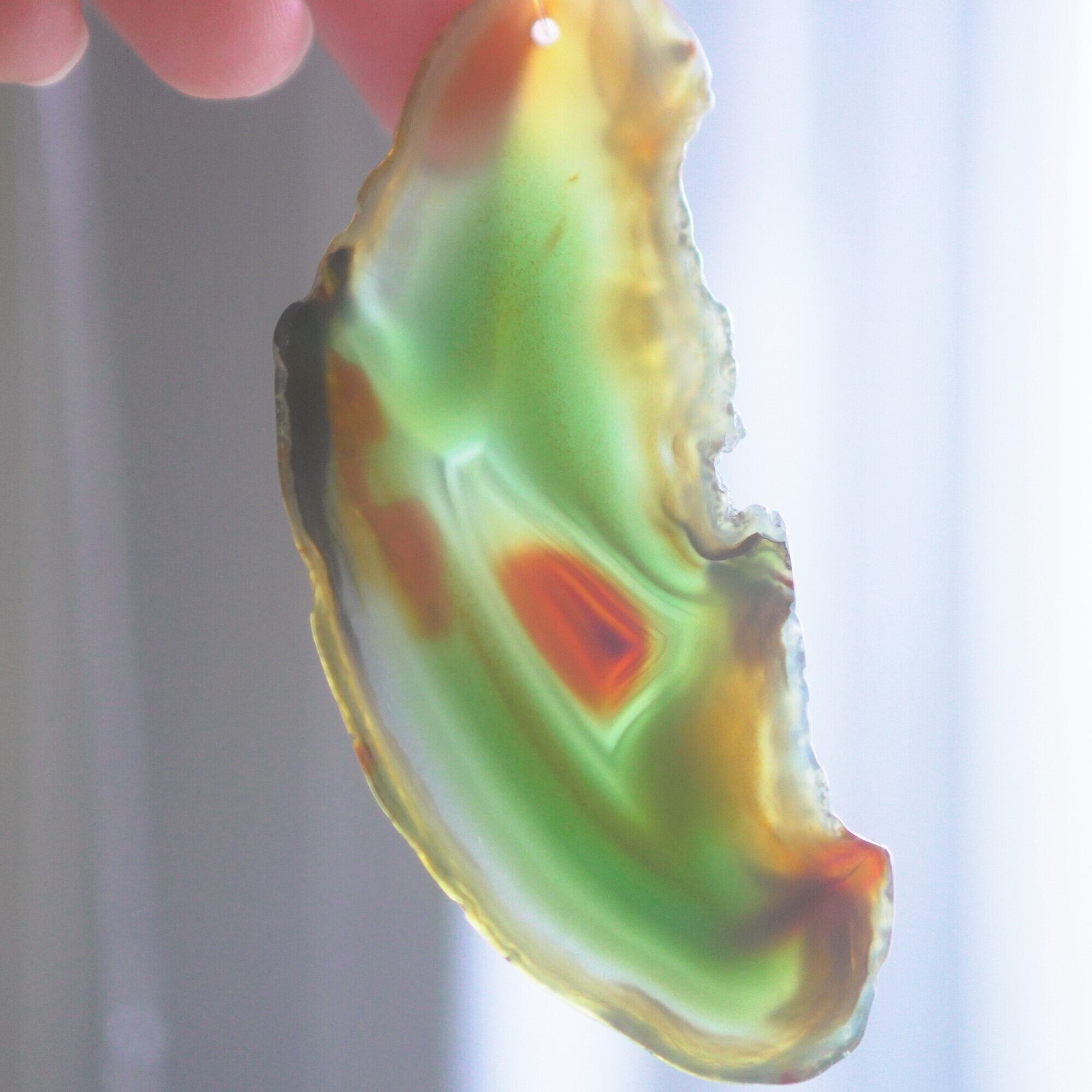 ✧染色の石なので耐光性(光による経年でのカラー変化の耐性)に優れているわけではなくベランダなど一日の中で長時間強い日光に当たるような場所に飾られるのはおすすめしないのですが、陽光に透かした時にだけ真価を発揮する美しさがありますので、是非、時折翳したりして光と一緒にお楽しみいただけたらと思います。特に濃い鮮やかな色など、色変化が気になられる場合は、日光のあまり当たらない場所に飾ってくださいね✧