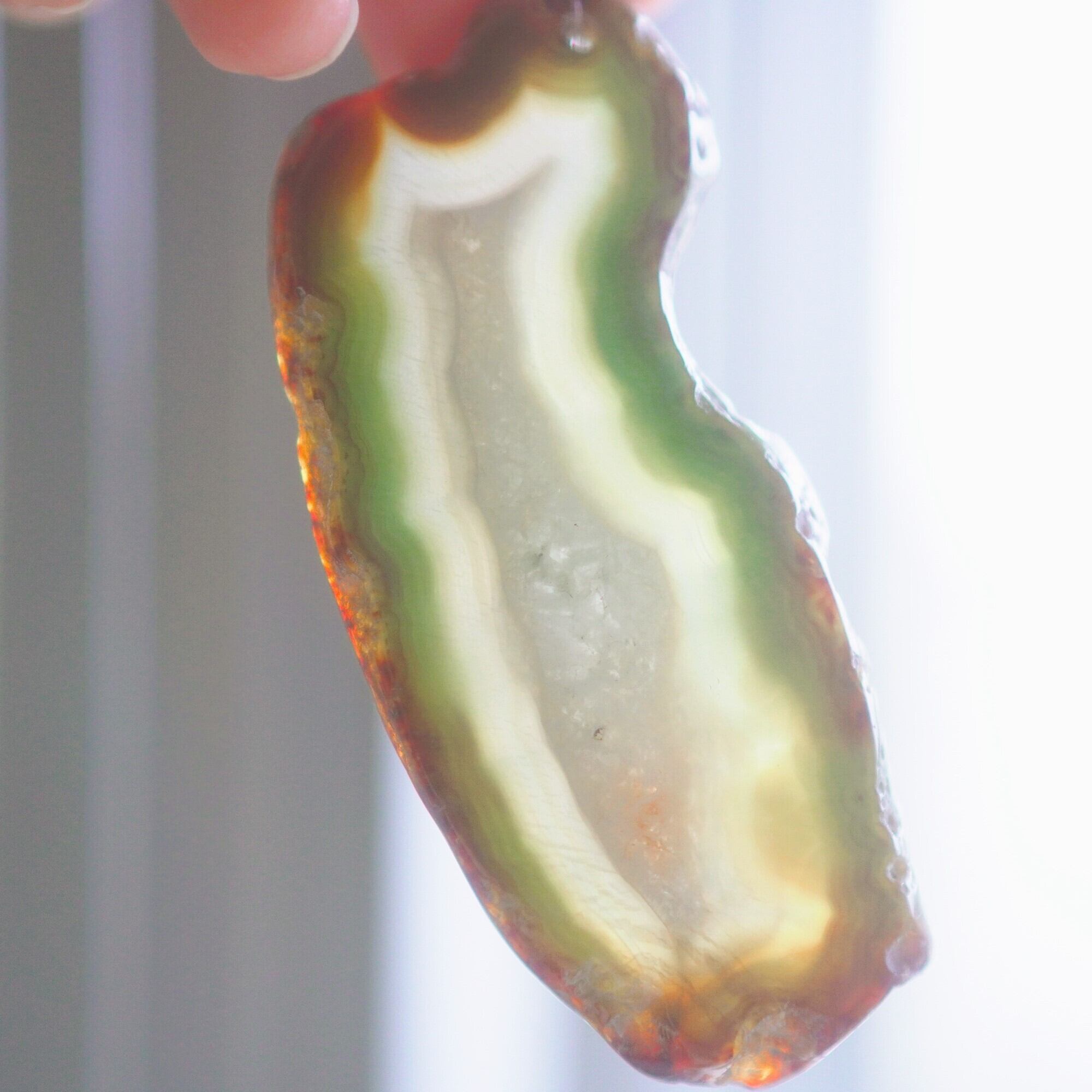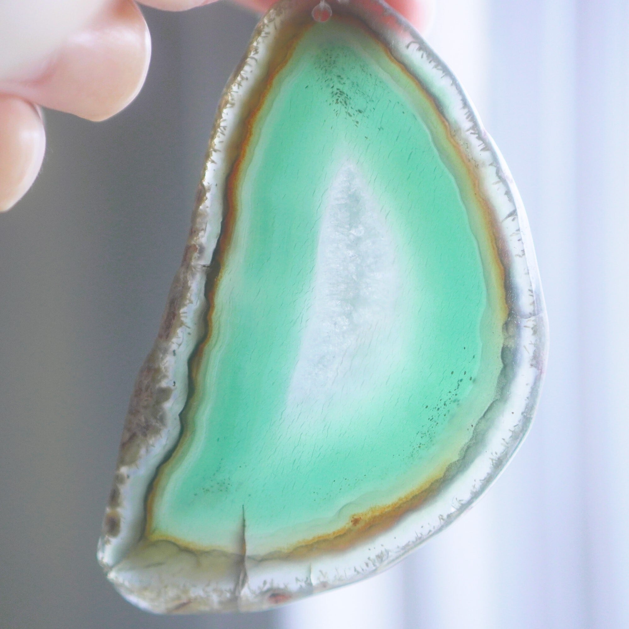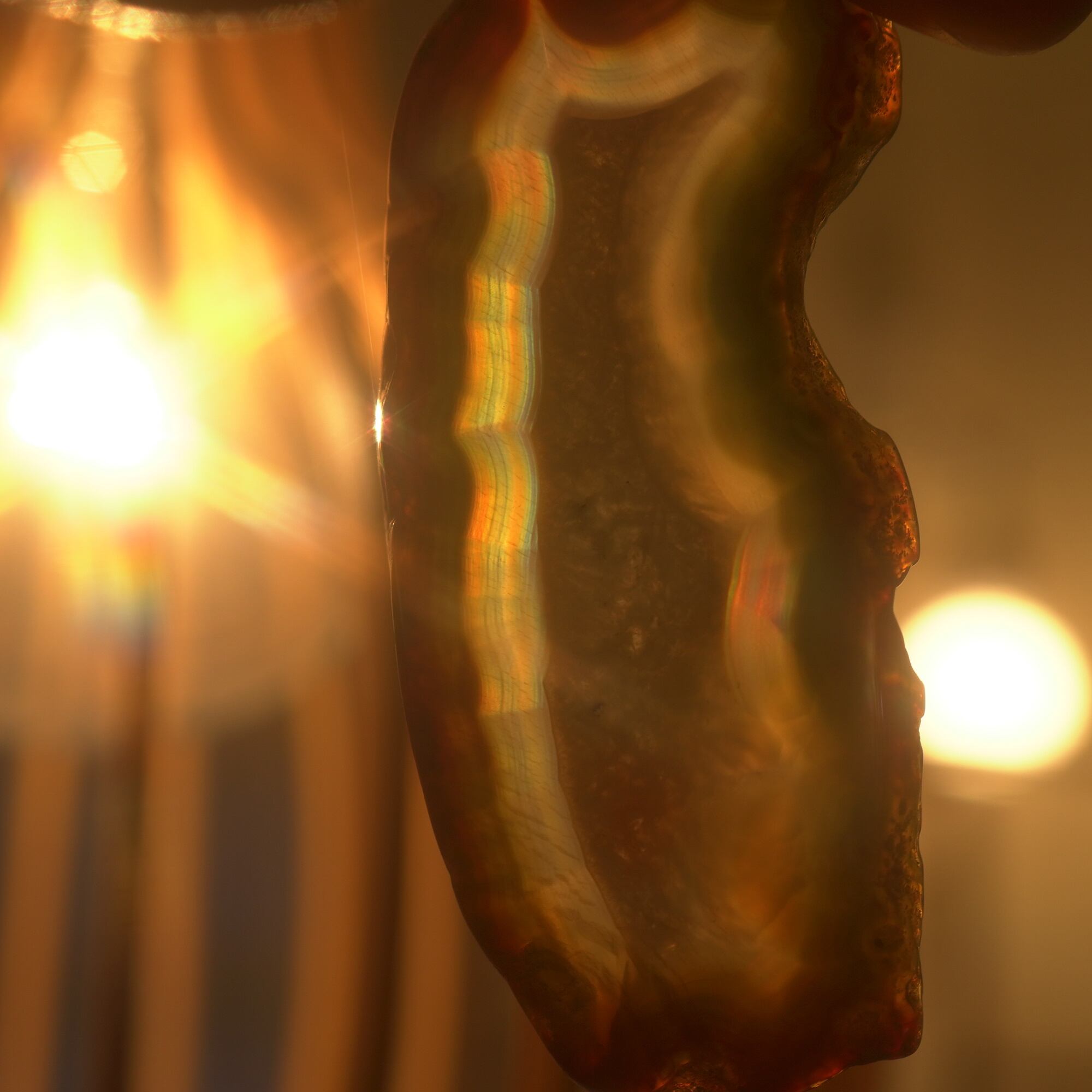 ✧染色の石なので耐光性(光による経年でのカラー変化の耐性)に優れているわけではなくベランダなど一日の中で長時間強い日光に当たるような場所に飾られるのはおすすめしないのですが、陽光に透かした時にだけ真価を発揮する美しさがありますので、是非、時折翳したりして光と一緒にお楽しみいただけたらと思います。特に濃い鮮やかな色など、色変化が気になられる場合は、日光のあまり当たらない場所に飾ってくださいね✧