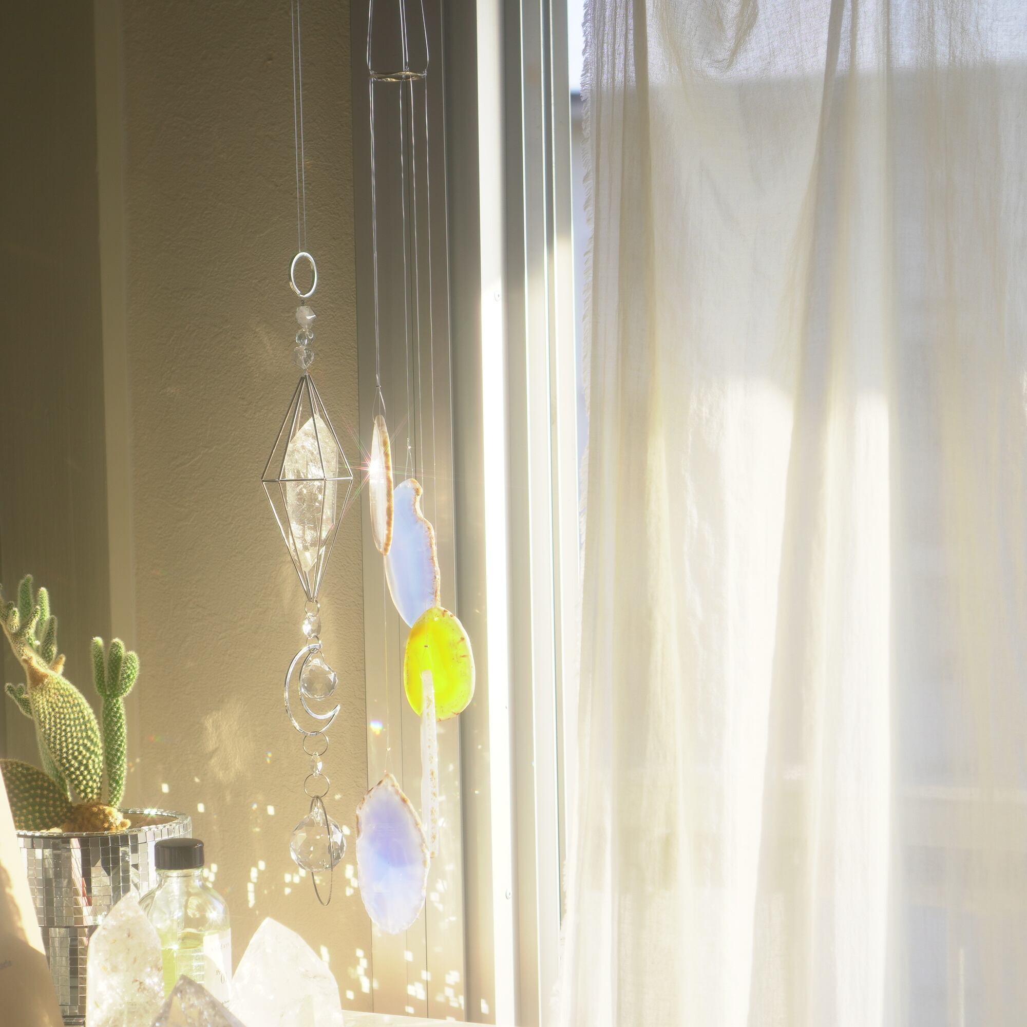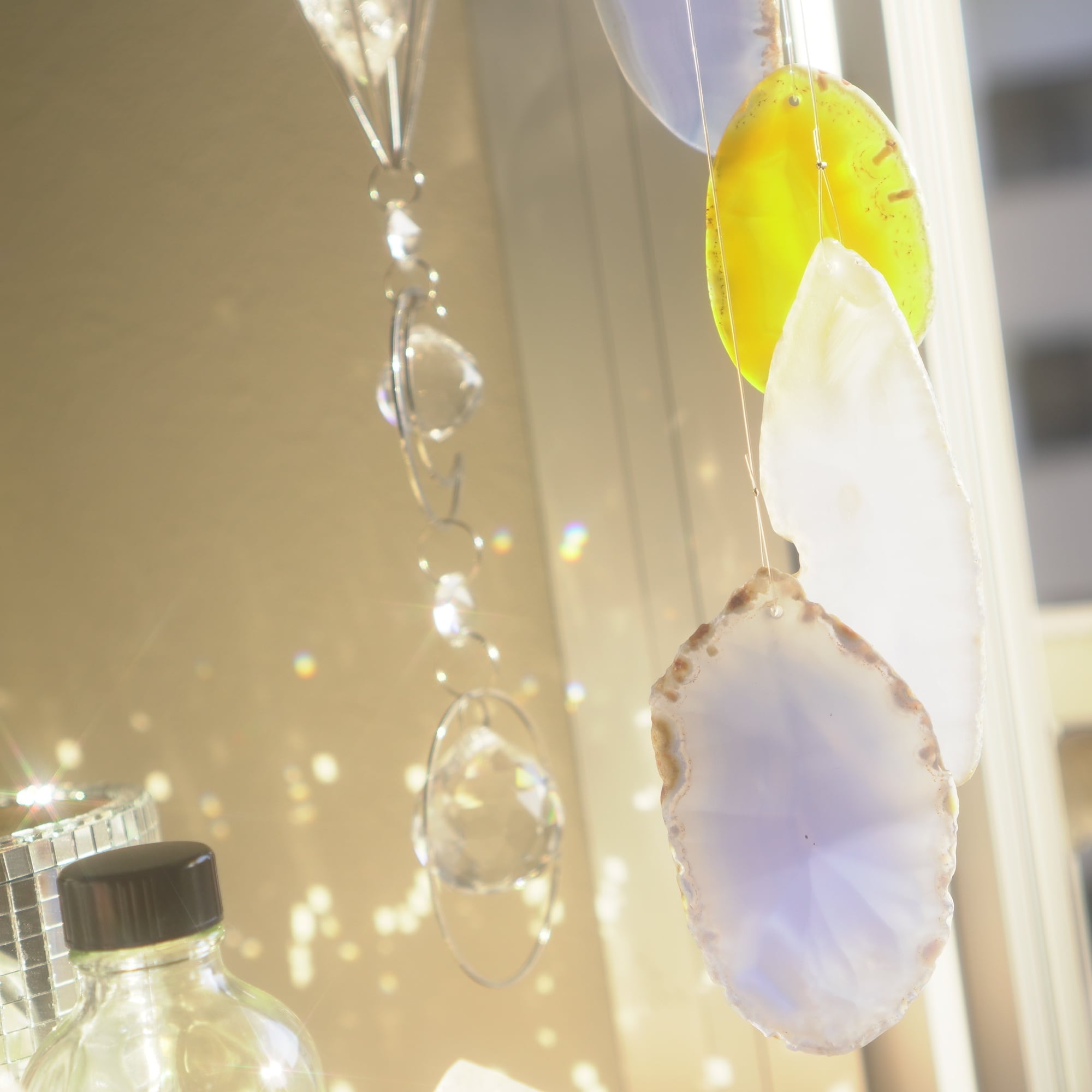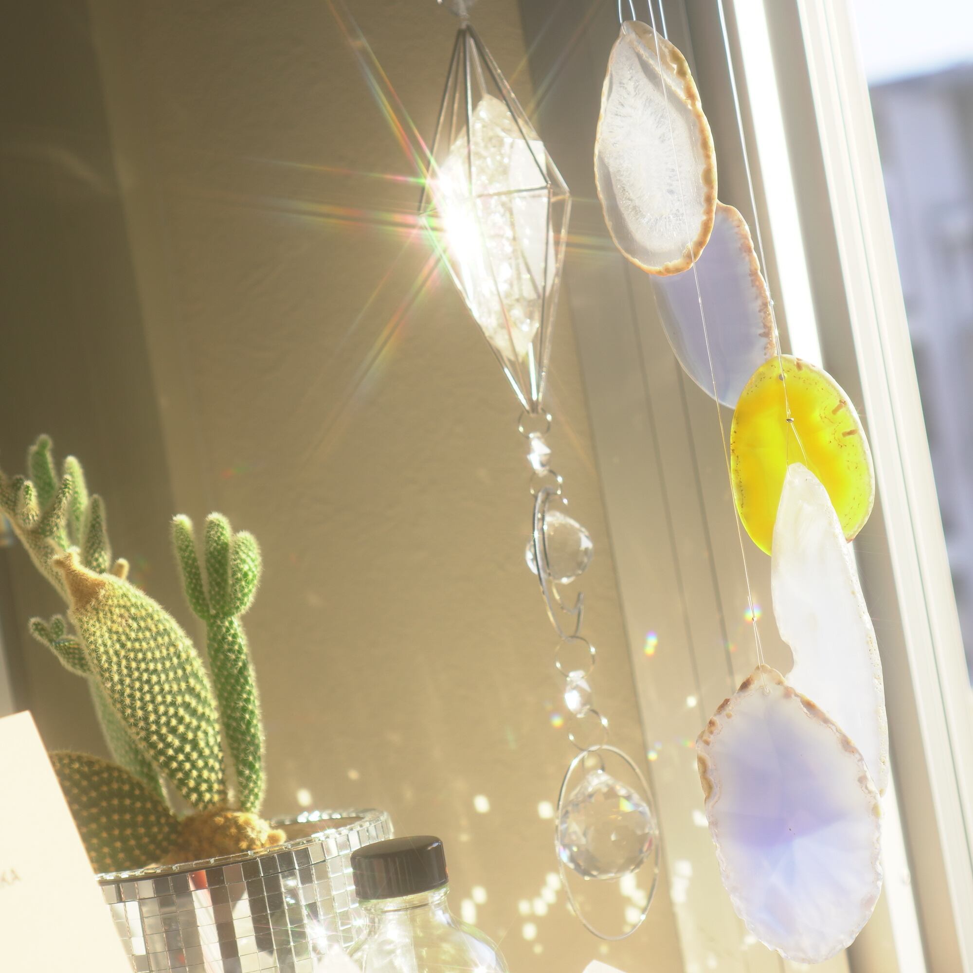 そしてカーテン越しではなく直射日光を当てた際のサンキャッチャーとしてのチャイムも、ピカピカとした美しい光をお部屋の中に運んでくれます。