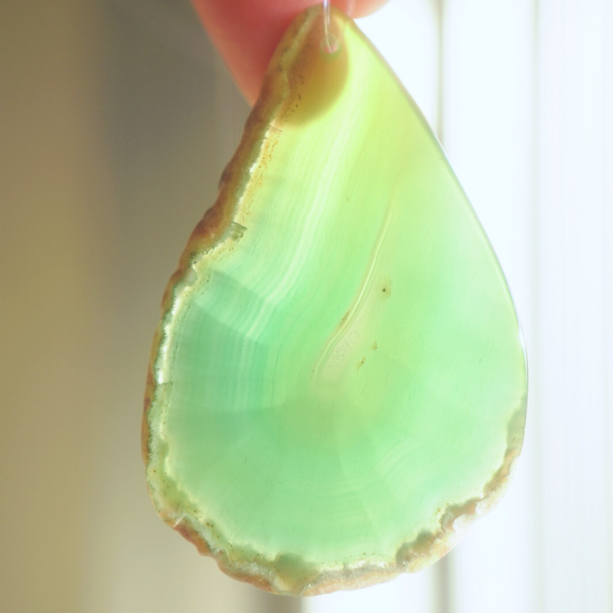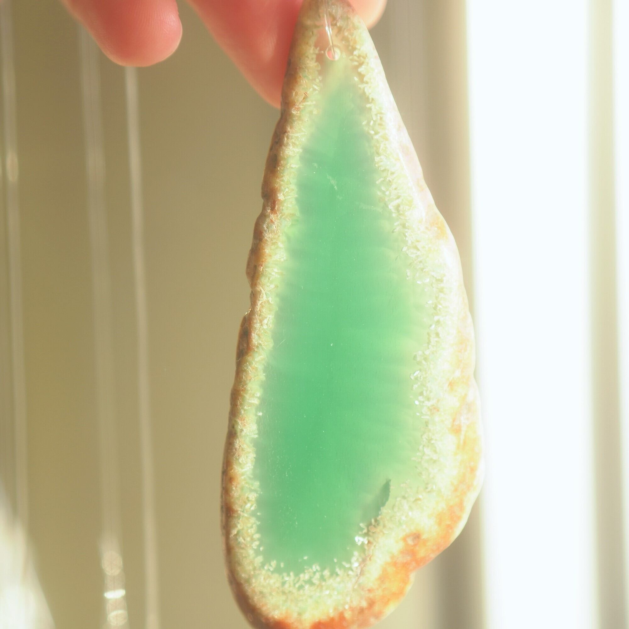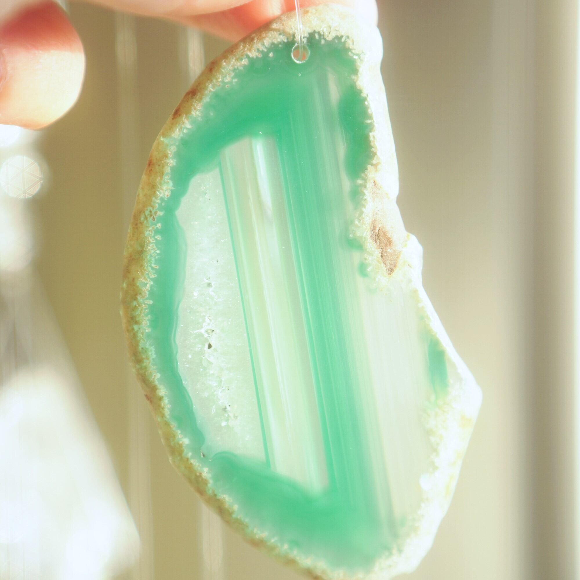 ✧染色の石なので耐光性(光による経年でのカラー変化の耐性)に優れているわけではなくベランダなど一日の中で長時間強い日光に当たるような場所に飾られるのはおすすめしないのですが、陽光に透かした時にだけ真価を発揮する美しさがありますので、是非、時折翳したりして光と一緒にお楽しみいただけたらと思います。特に濃い鮮やかな色など、色変化が気になられる場合は、日光のあまり当たらない場所に飾ってくださいね✧