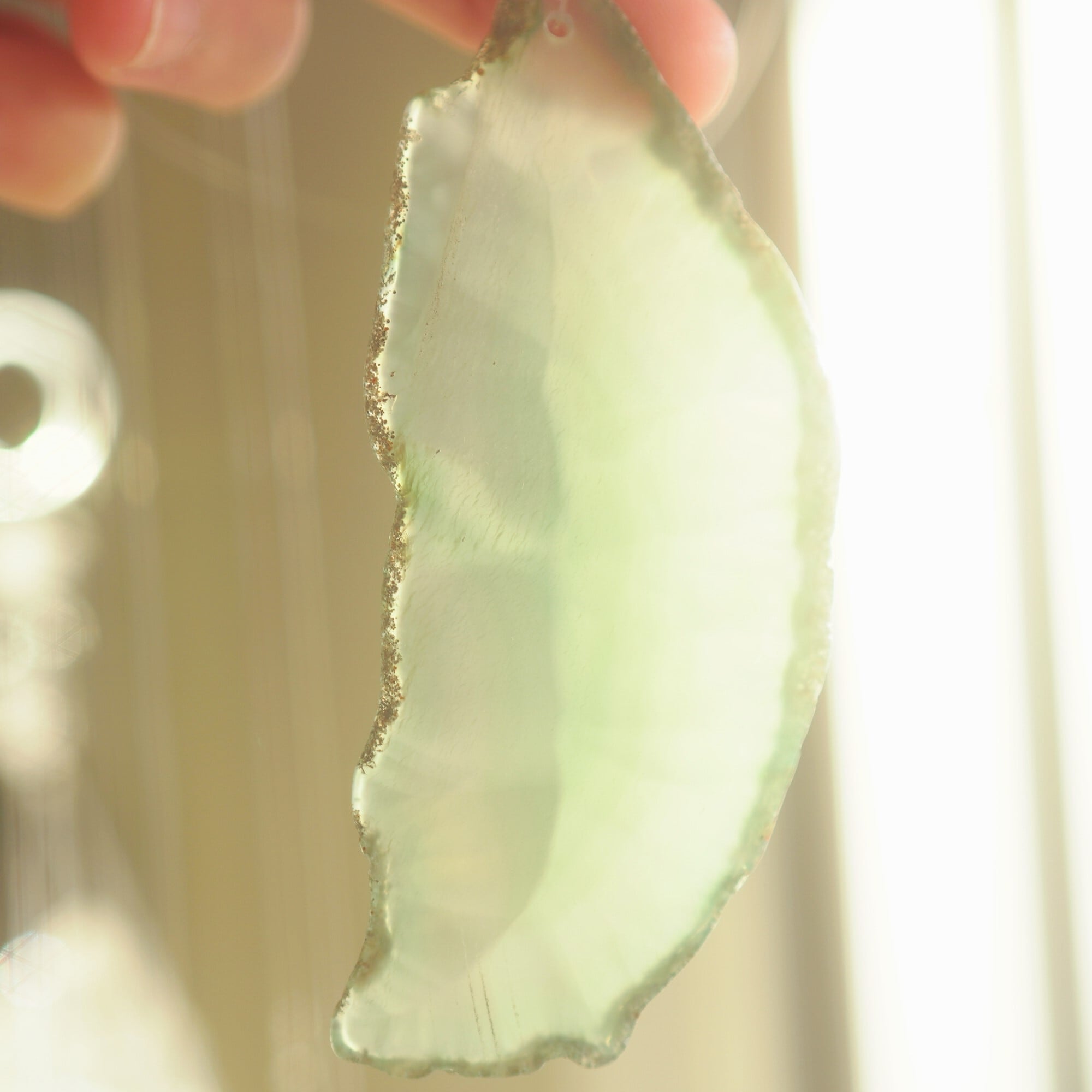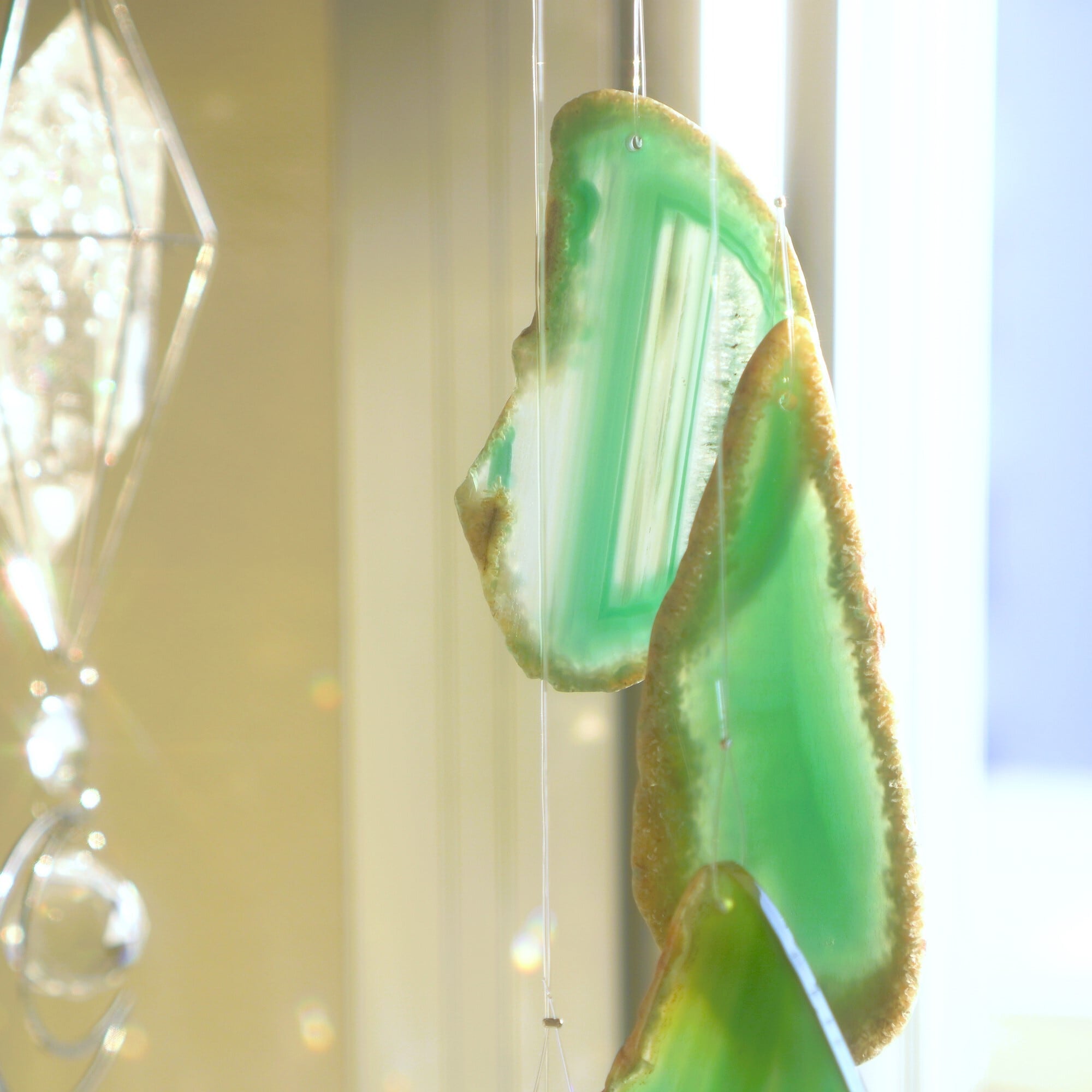 そしてカーテン越しではなく直射日光を当てた際のサンキャッチャーとしてのチャイムも、ピカピカとした美しい光をお部屋の中に運んでくれます。