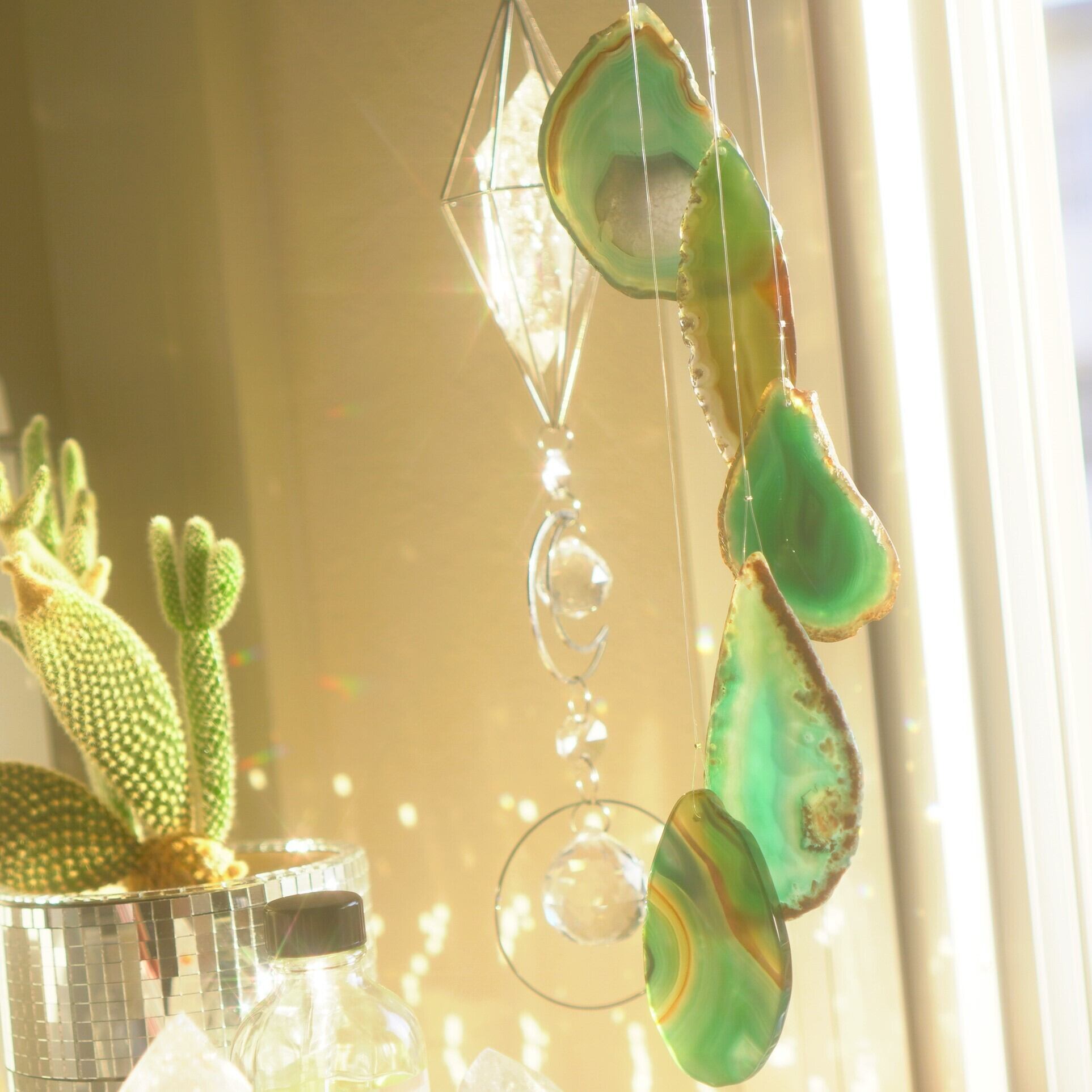 そしてカーテン越しではなく直射日光を当てた際のサンキャッチャーとしてのチャイムも、ピカピカとした美しい光をお部屋の中に運んでくれます。