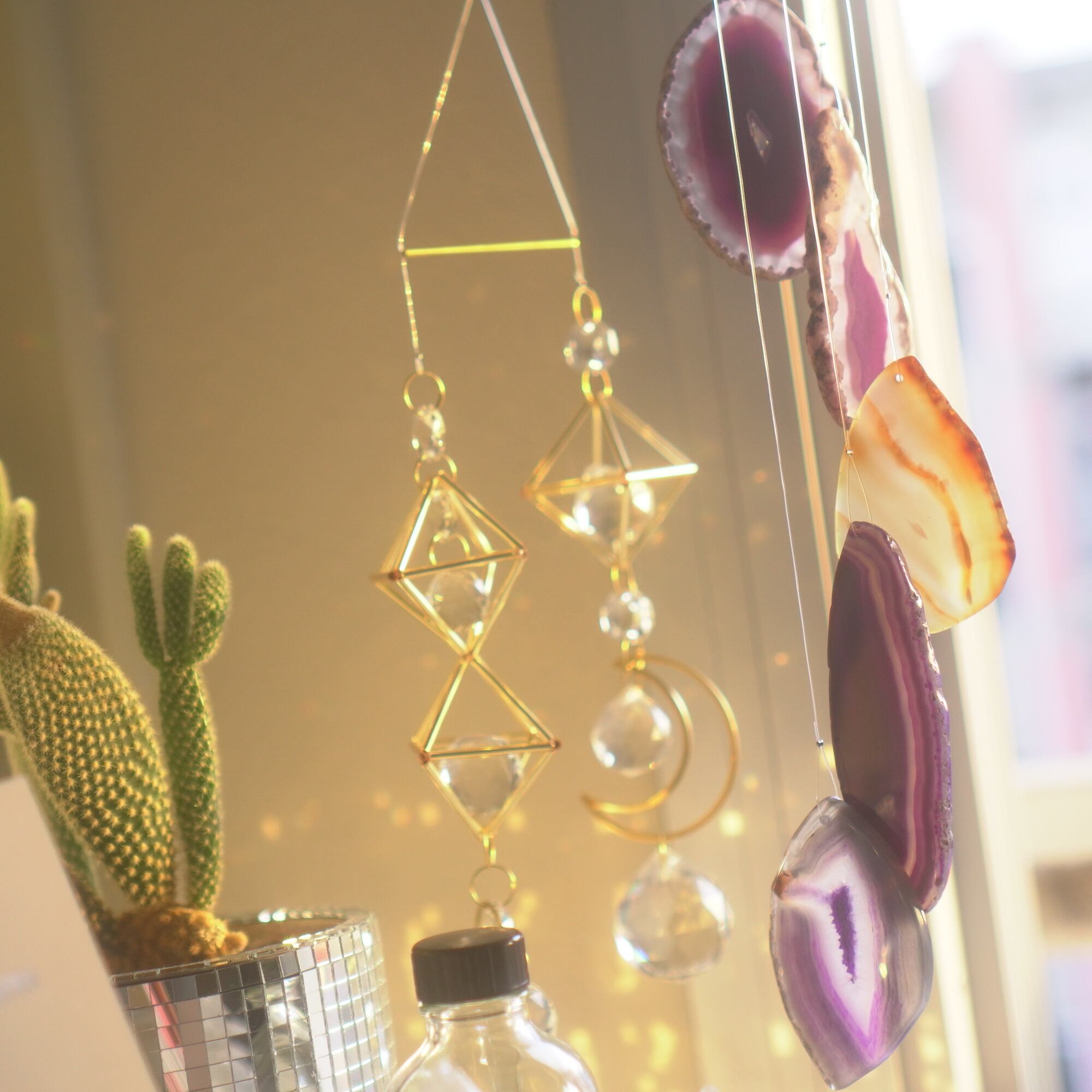 そしてカーテン越しではなく直射日光を当てた際のサンキャッチャーとしてのチャイムも、ピカピカとした美しい光をお部屋の中に運んでくれます。
