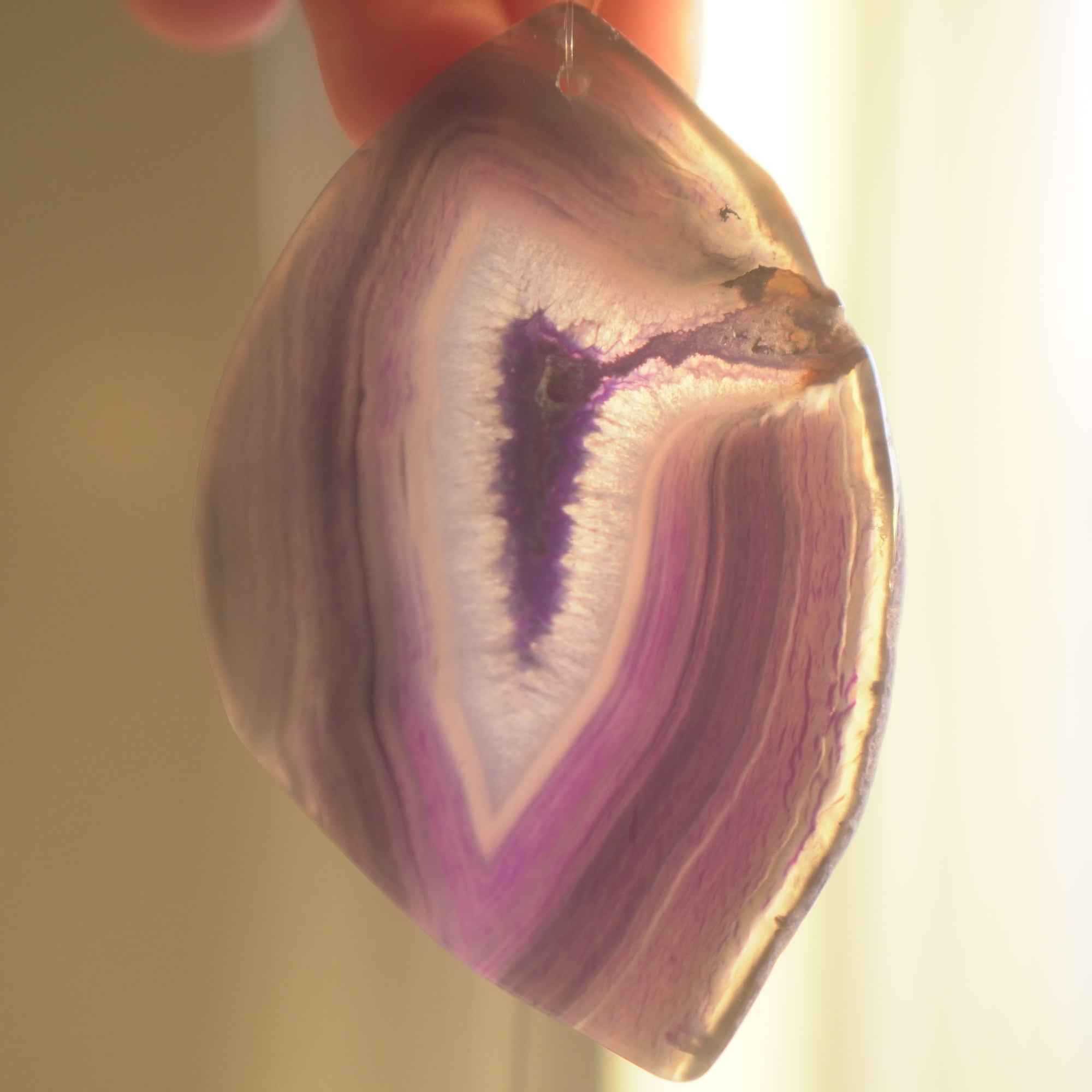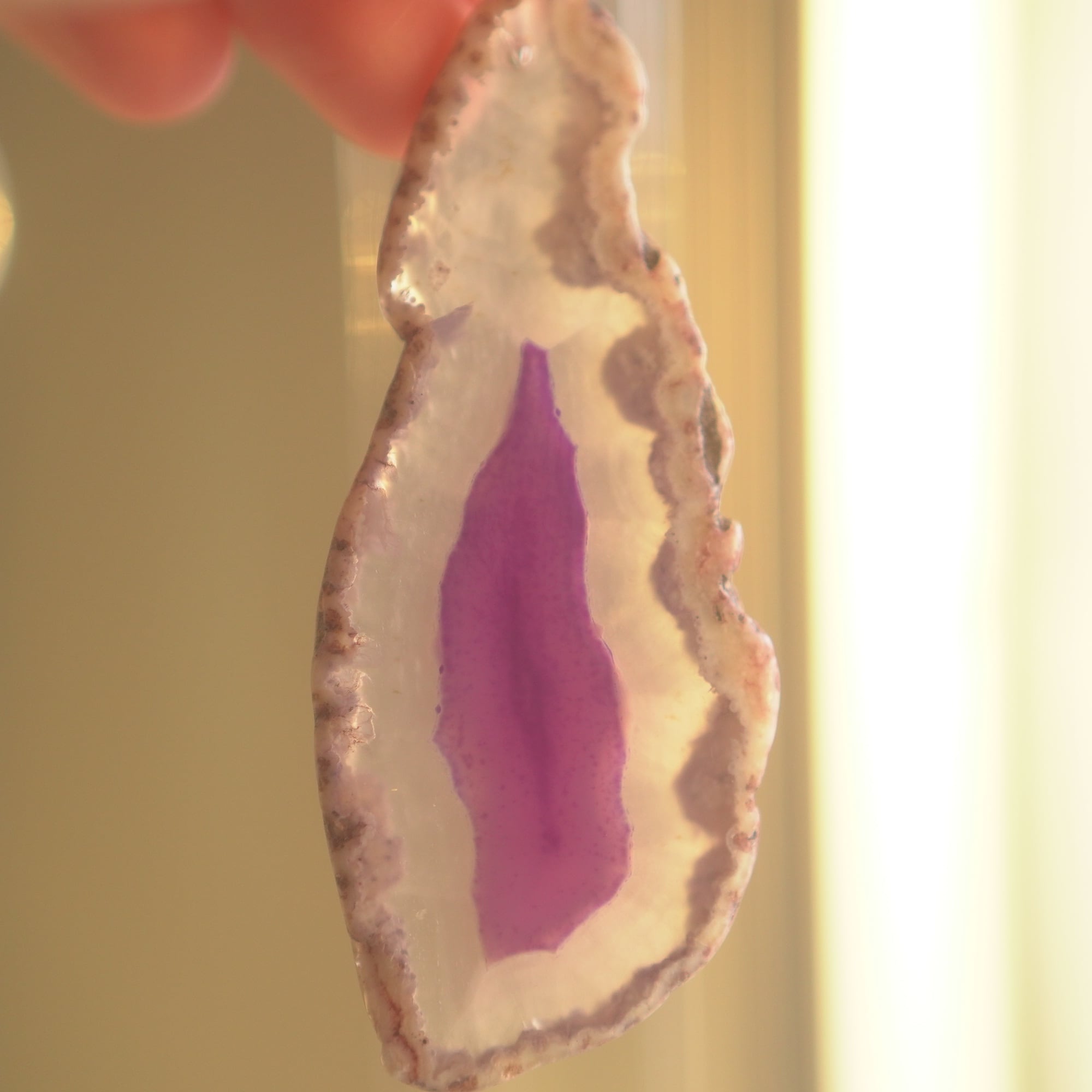 ✧染色の石なので耐光性(光による経年でのカラー変化の耐性)に優れているわけではなくベランダなど一日の中で長時間強い日光に当たるような場所に飾られるのはおすすめしないのですが、陽光に透かした時にだけ真価を発揮する美しさがありますので、是非、時折翳したりして光と一緒にお楽しみいただけたらと思います。特に濃い鮮やかな色など、色変化が気になられる場合は、日光のあまり当たらない場所に飾ってくださいね✧
