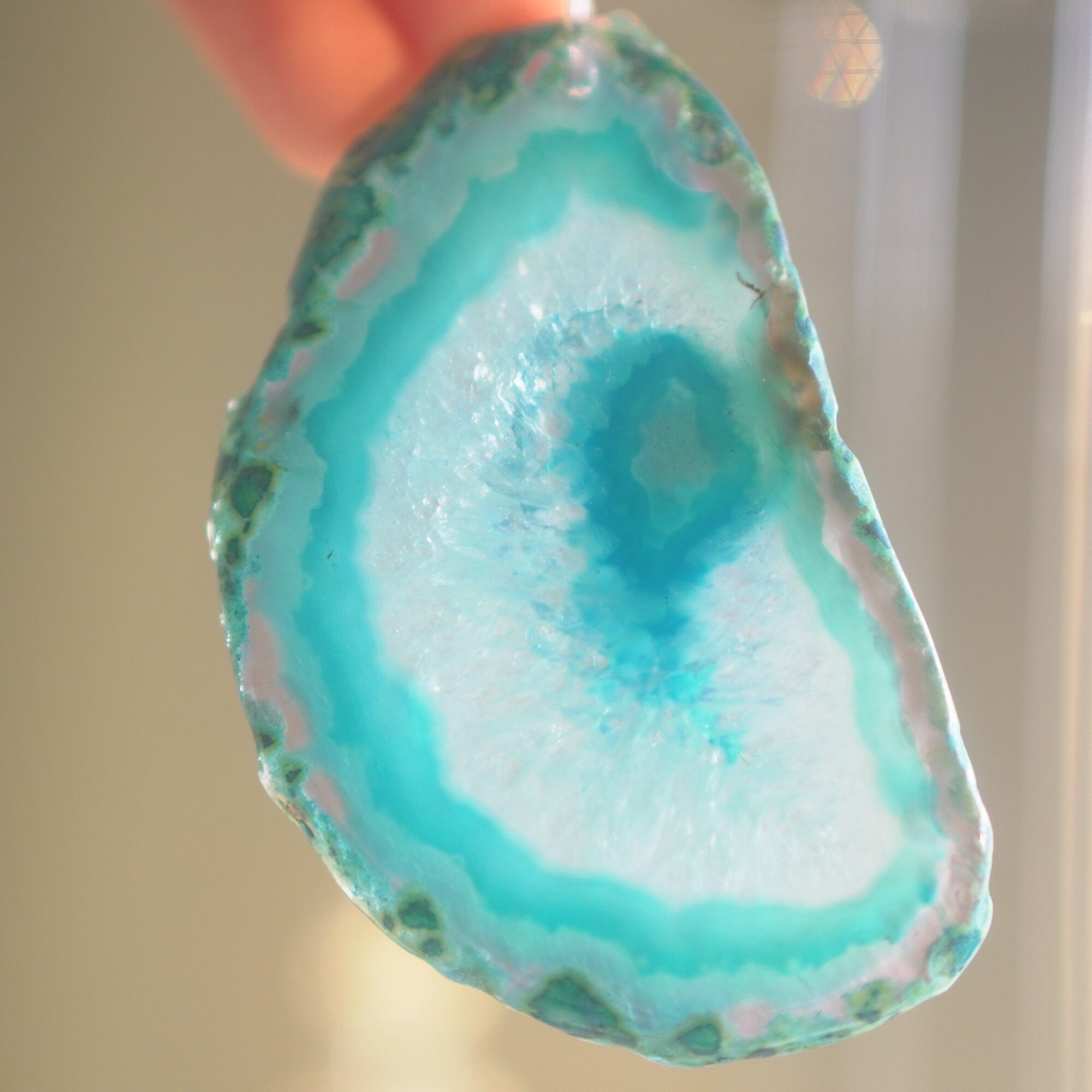 ✧染色の石なので耐光性(光による経年でのカラー変化の耐性)に優れているわけではなくベランダなど一日の中で長時間強い日光に当たるような場所に飾られるのはおすすめしないのですが、陽光に透かした時にだけ真価を発揮する美しさがありますので、是非、時折翳したりして光と一緒にお楽しみいただけたらと思います。特に濃い鮮やかな色など、色変化が気になられる場合は、日光のあまり当たらない場所に飾ってくださいね✧
