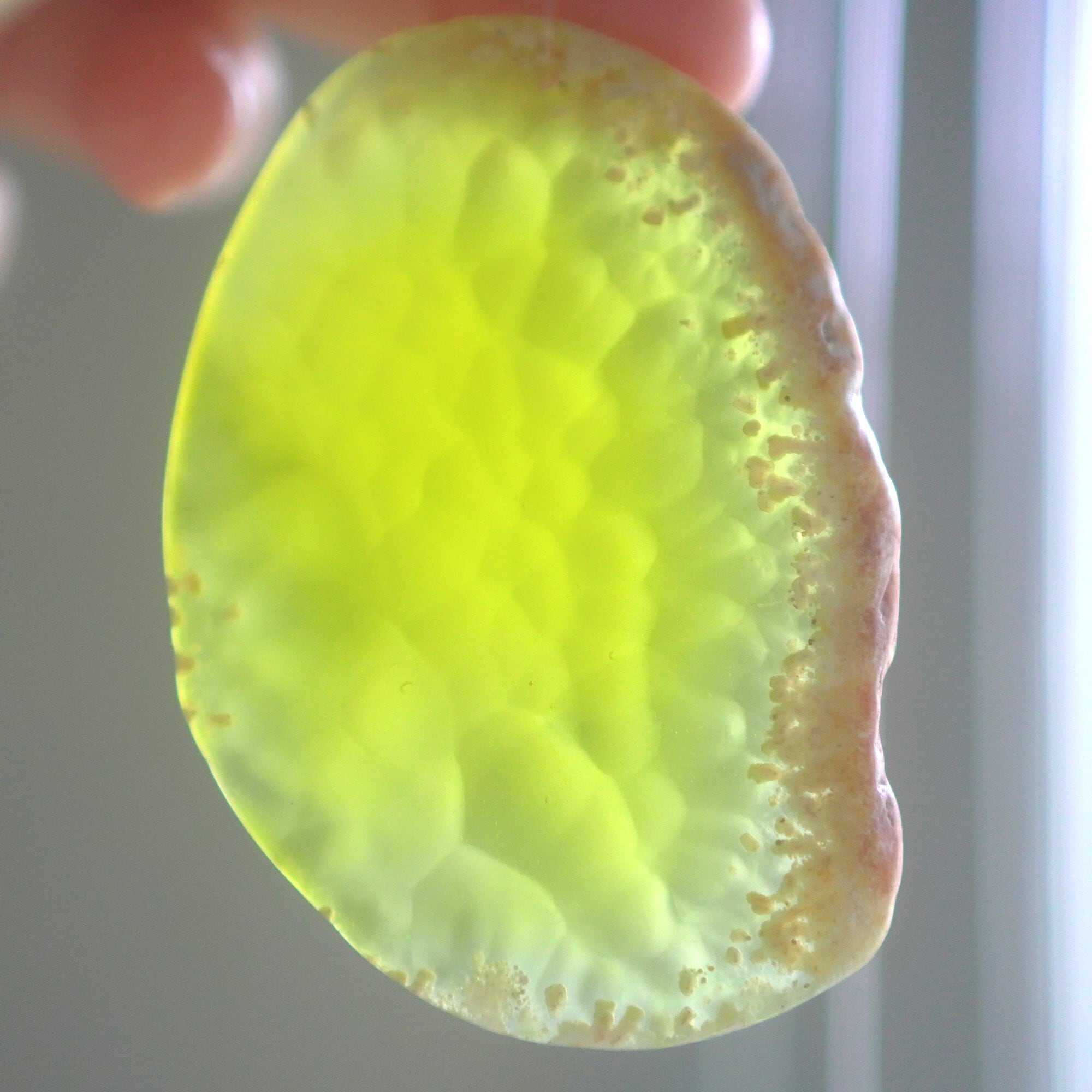 ✧染色の石なので耐光性(光による経年でのカラー変化の耐性)に優れているわけではなくベランダなど一日の中で長時間強い日光に当たるような場所に飾られるのはおすすめしないのですが、陽光に透かした時にだけ真価を発揮する美しさがありますので、是非、時折翳したりして光と一緒にお楽しみいただけたらと思います。特に濃い鮮やかな色など、色変化が気になられる場合は、日光のあまり当たらない場所に飾ってくださいね✧