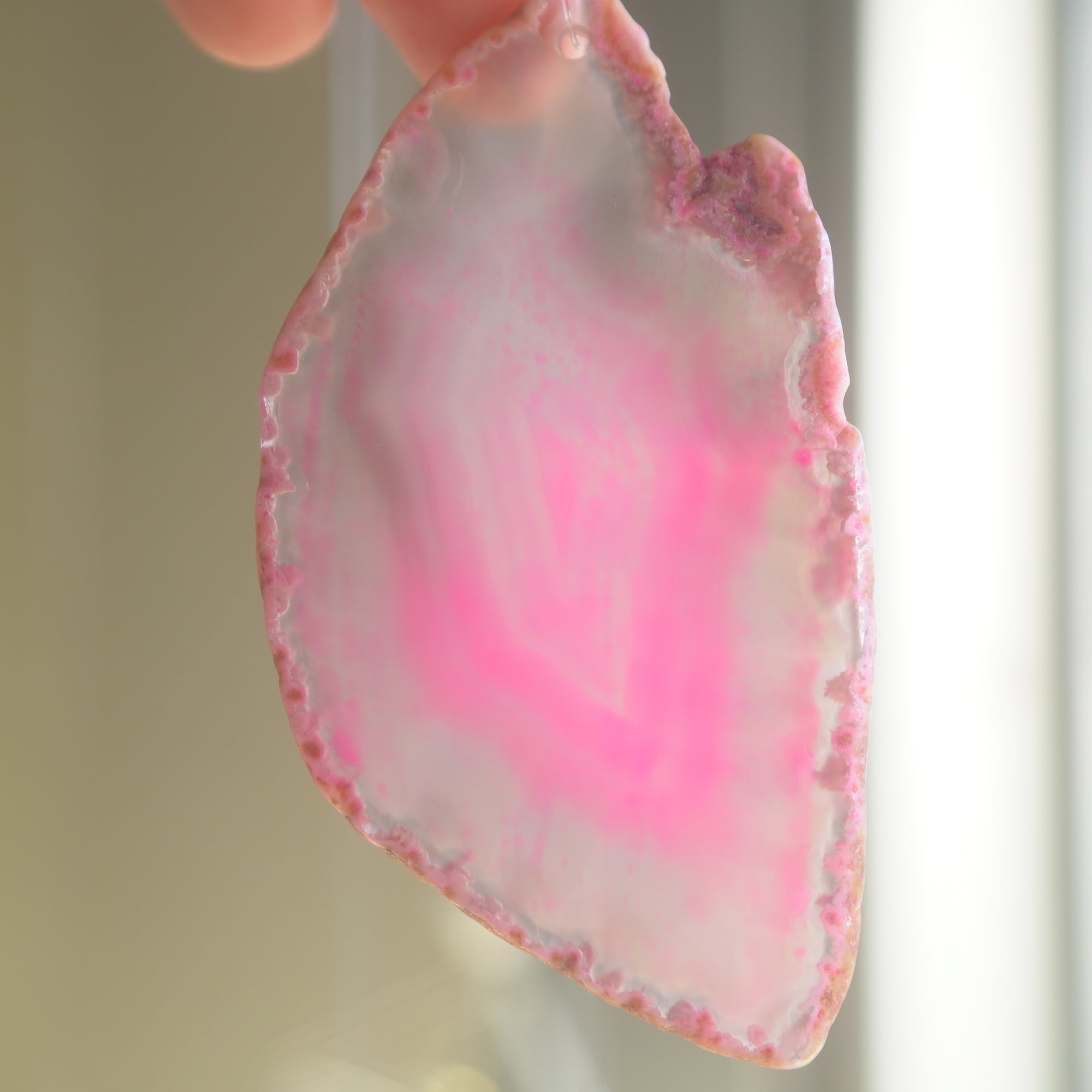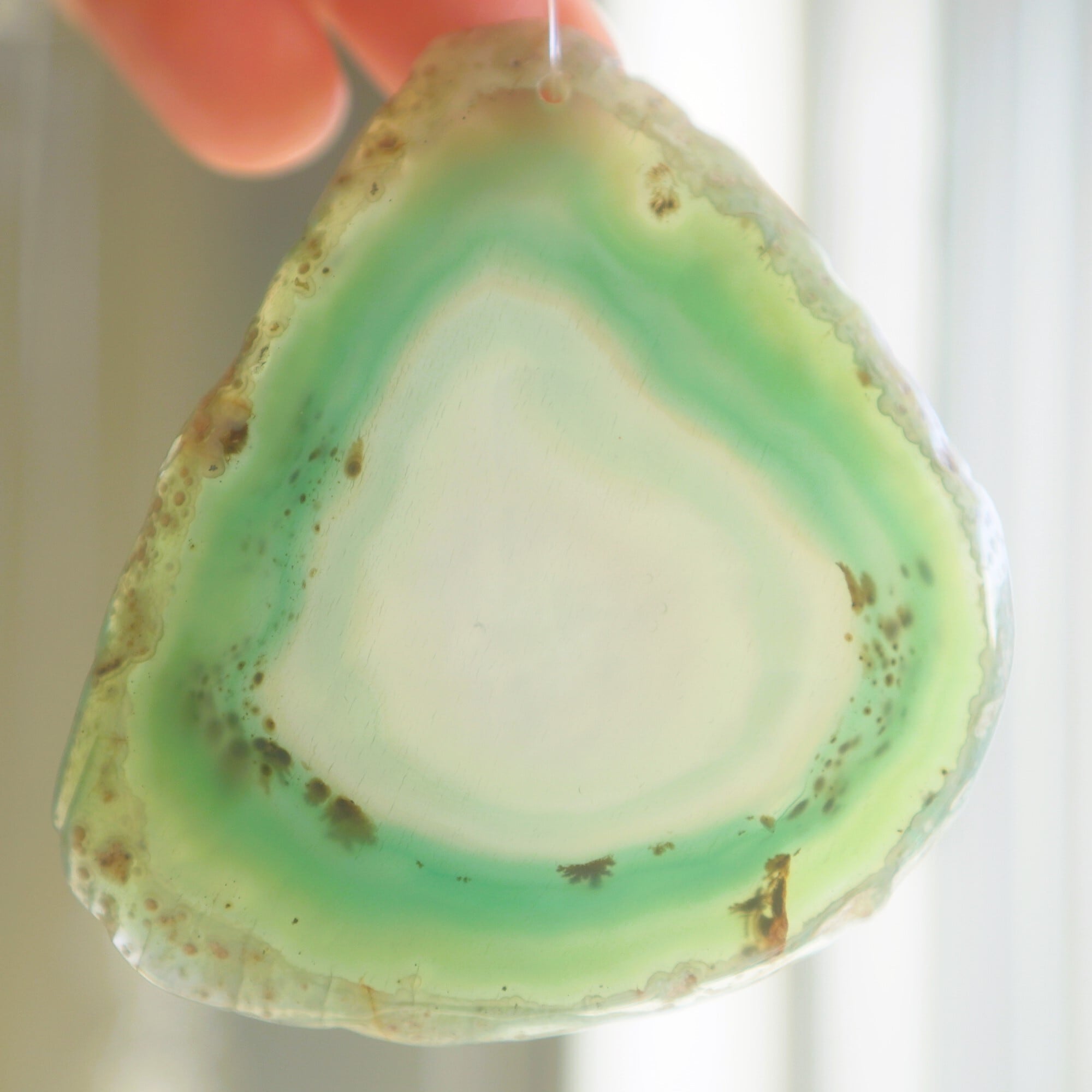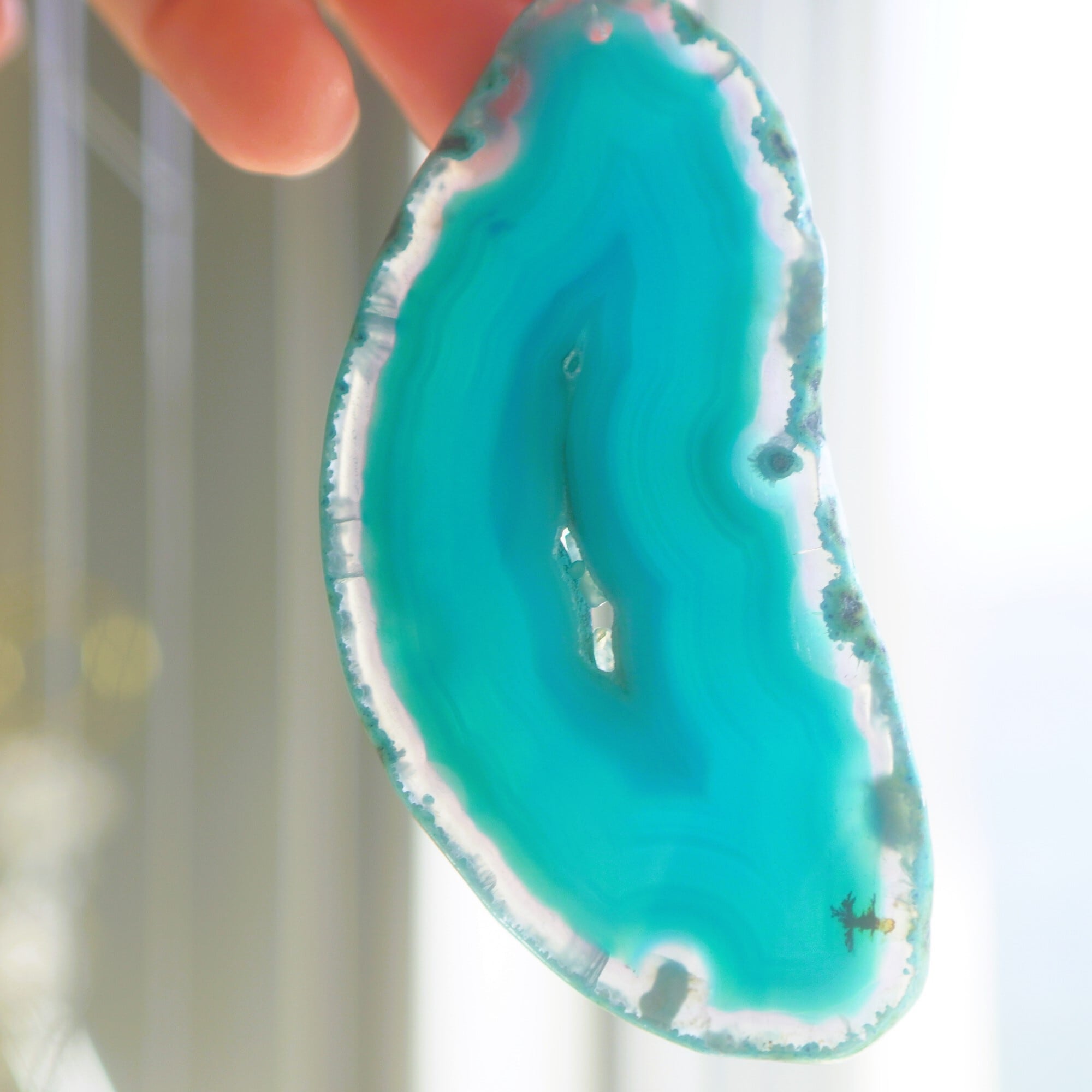 ✧染色の石なので耐光性(光による経年でのカラー変化の耐性)に優れているわけではなくベランダなど一日の中で長時間強い日光に当たるような場所に飾られるのはおすすめしないのですが、陽光に透かした時にだけ真価を発揮する美しさがありますので、是非、時折翳したりして光と一緒にお楽しみいただけたらと思います。特に濃い鮮やかな色など、色変化が気になられる場合は、日光のあまり当たらない場所に飾ってくださいね✧