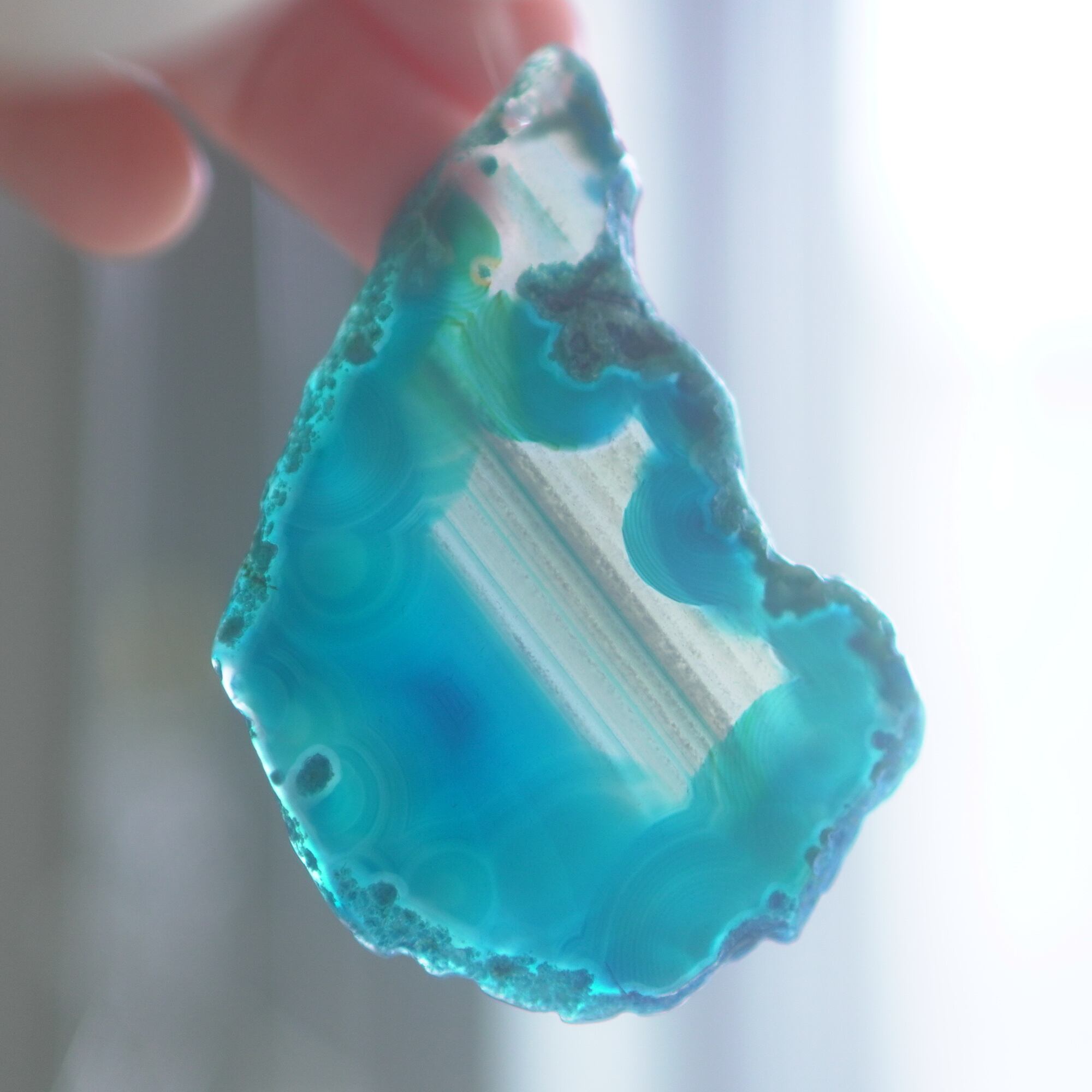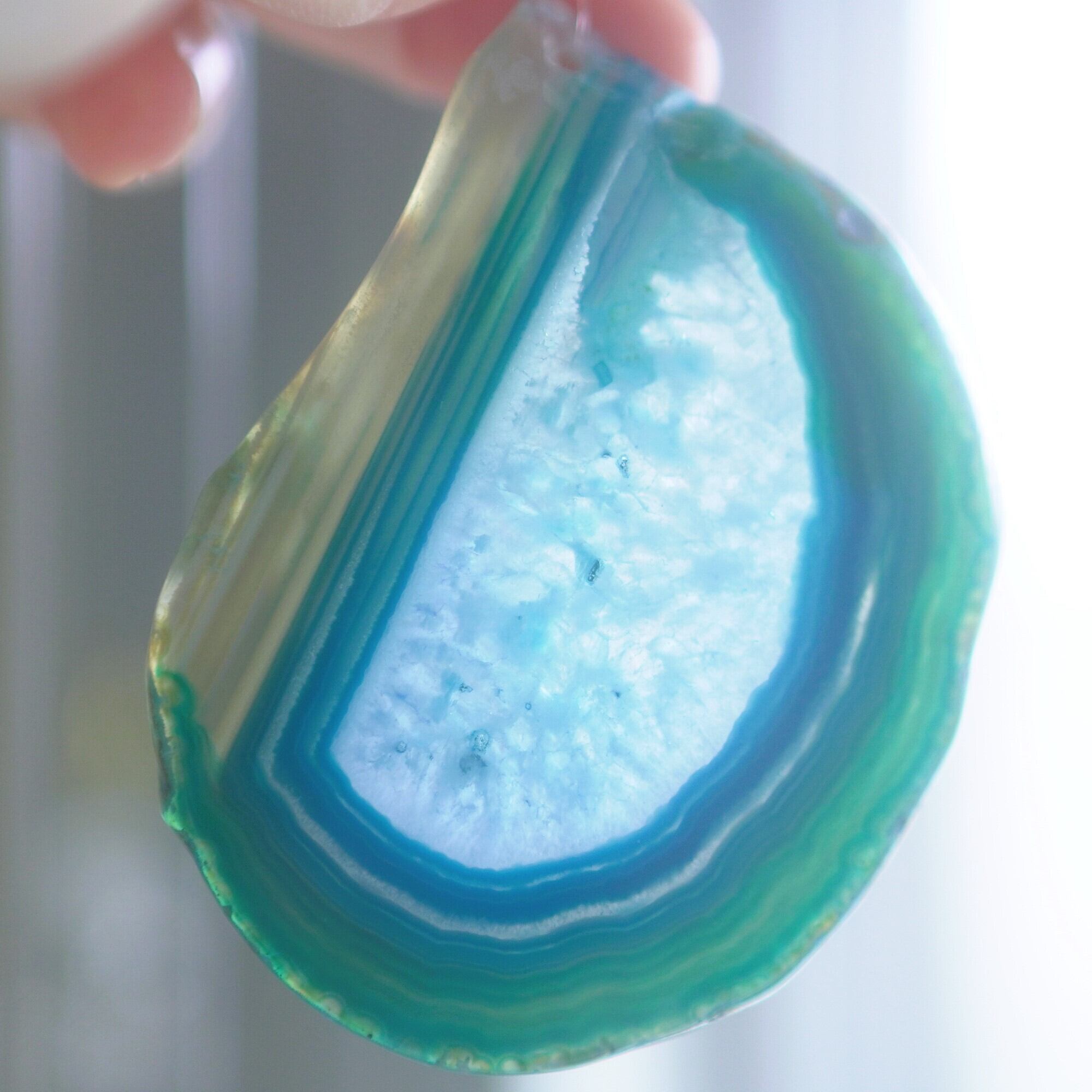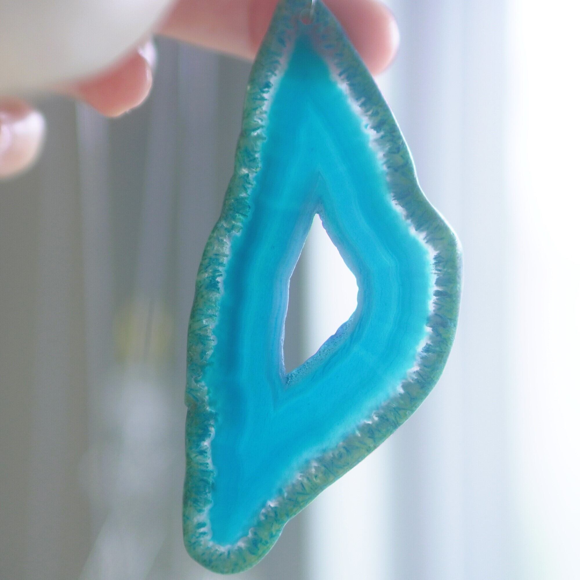 ✧染色の石なので耐光性(光による経年でのカラー変化の耐性)に優れているわけではなくベランダなど一日の中で長時間強い日光に当たるような場所に飾られるのはおすすめしないのですが、陽光に透かした時にだけ真価を発揮する美しさがありますので、是非、時折翳したりして光と一緒にお楽しみいただけたらと思います。特に濃い鮮やかな色など、色変化が気になられる場合は、日光のあまり当たらない場所に飾ってくださいね✧