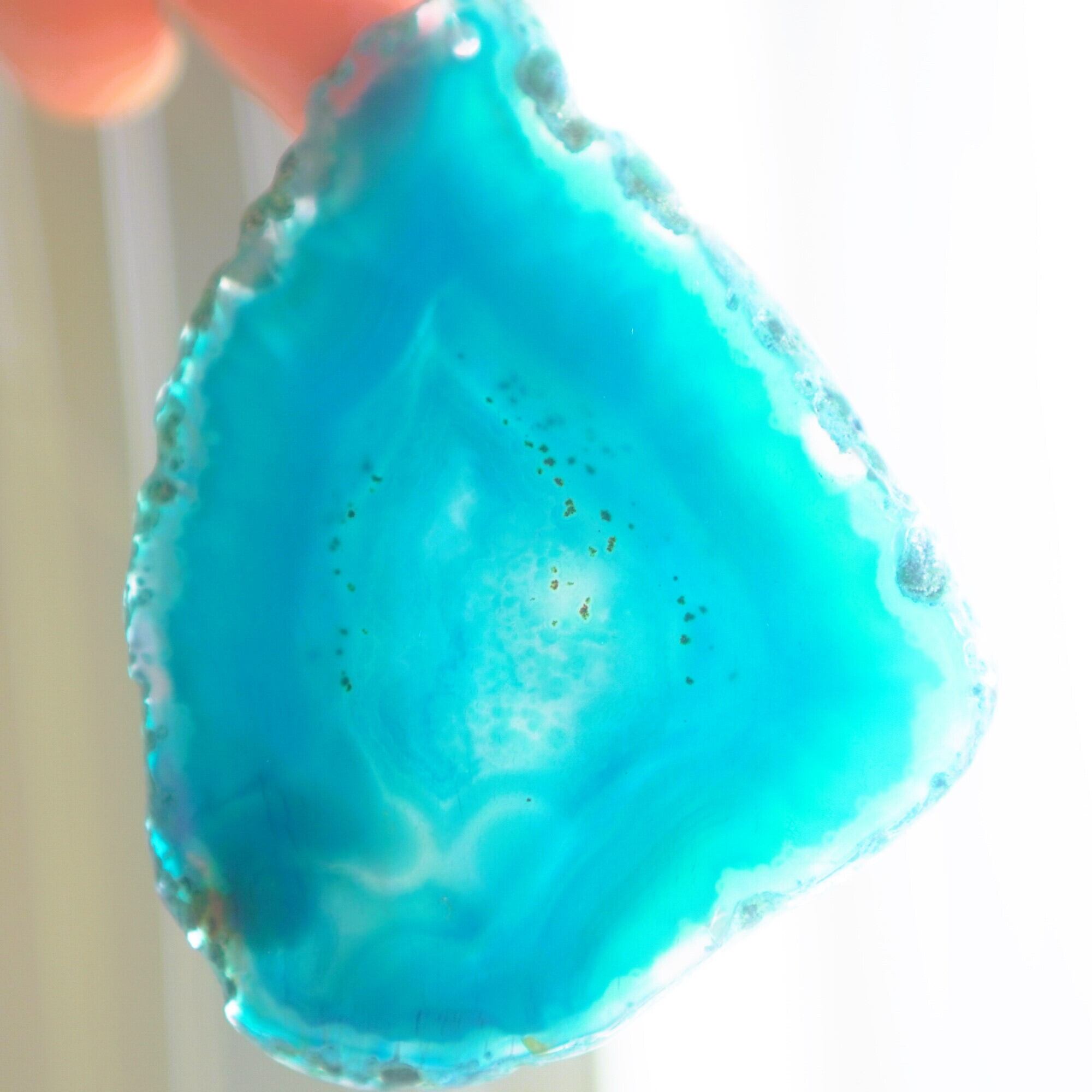 ✧染色の石なので耐光性(光による経年でのカラー変化の耐性)に優れているわけではなくベランダなど一日の中で長時間強い日光に当たるような場所に飾られるのはおすすめしないのですが、陽光に透かした時にだけ真価を発揮する美しさがありますので、是非、時折翳したりして光と一緒にお楽しみいただけたらと思います。特に濃い鮮やかな色など、色変化が気になられる場合は、日光のあまり当たらない場所に飾ってくださいね✧