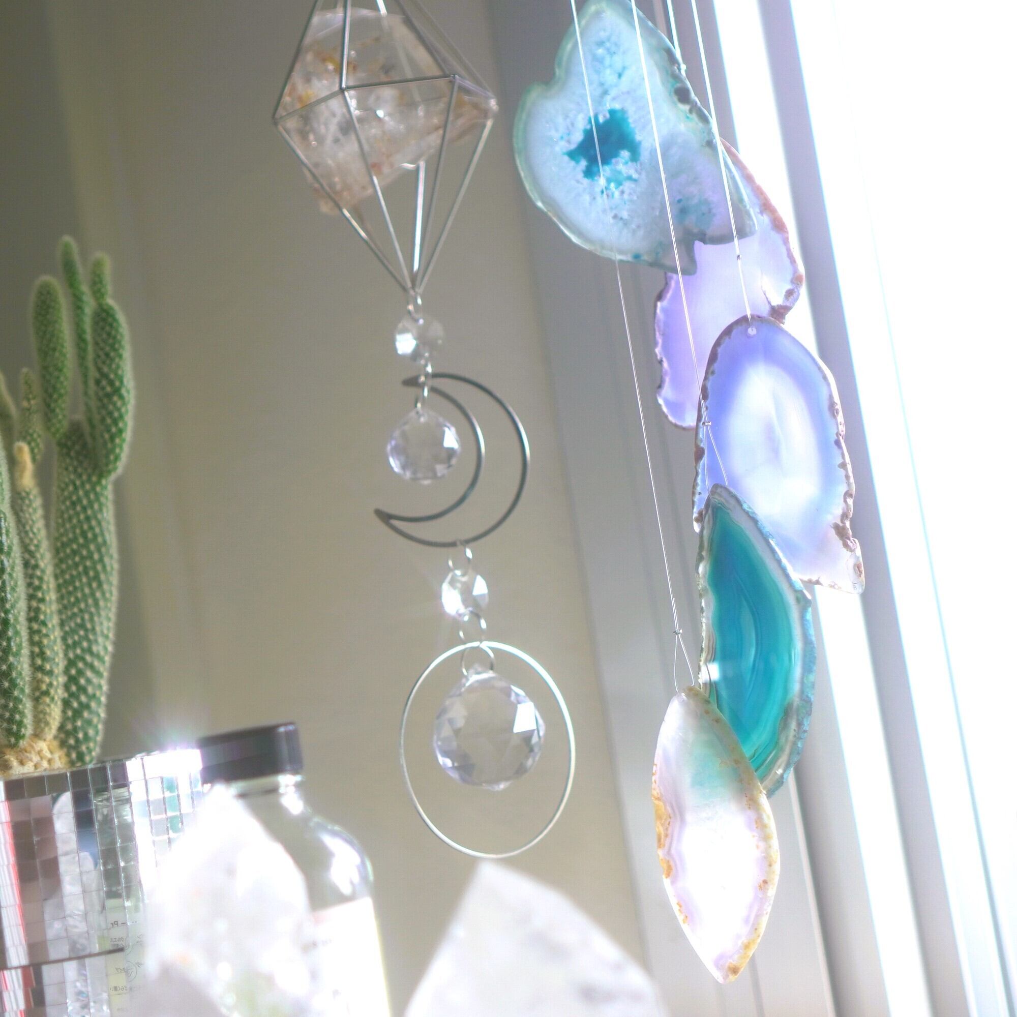 そしてカーテン越しではなく直射日光を当てた際のサンキャッチャーとしてのチャイムも、ピカピカとした美しい光をお部屋の中に運んでくれます。