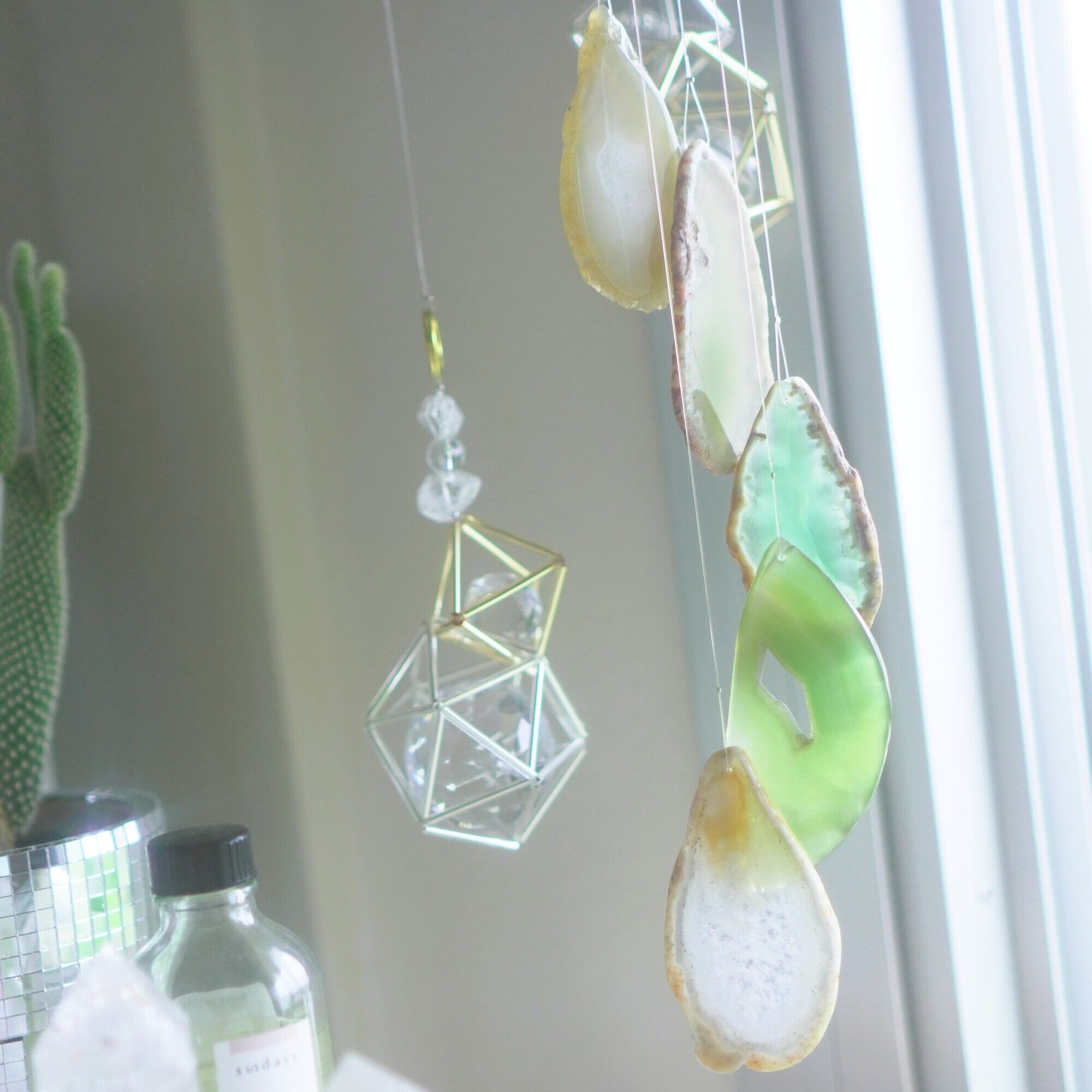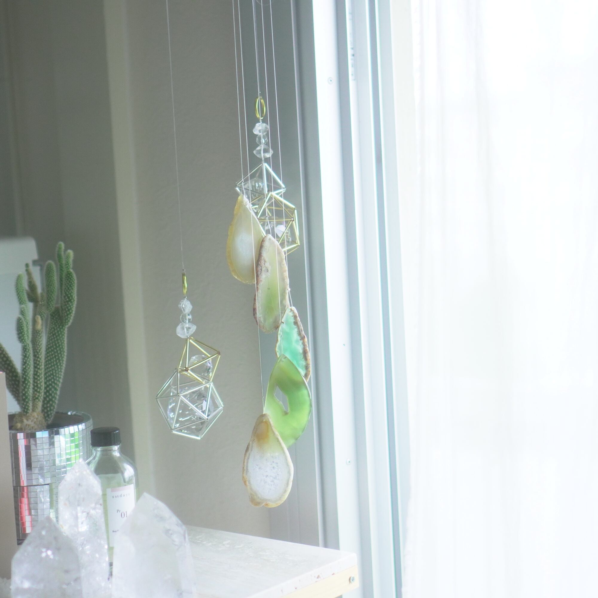 そしてカーテン越しではなく直射日光を当てた際のサンキャッチャーとしてのチャイムも、ピカピカとした美しい光をお部屋の中に運んでくれます。