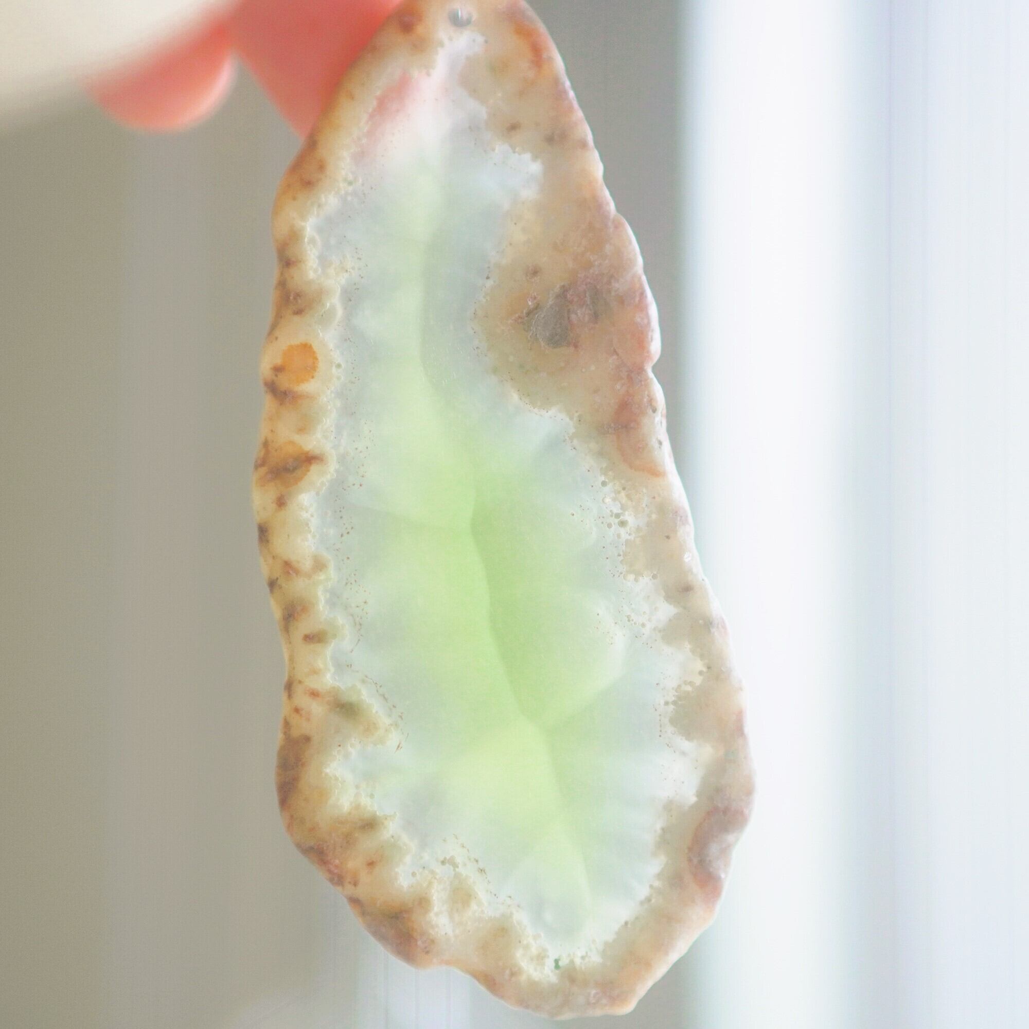 ✧染色の石なので耐光性(光による経年でのカラー変化の耐性)に優れているわけではなくベランダなど一日の中で長時間強い日光に当たるような場所に飾られるのはおすすめしないのですが、陽光に透かした時にだけ真価を発揮する美しさがありますので、是非、時折翳したりして光と一緒にお楽しみいただけたらと思います。特に濃い鮮やかな色など、色変化が気になられる場合は、日光のあまり当たらない場所に飾ってくださいね✧