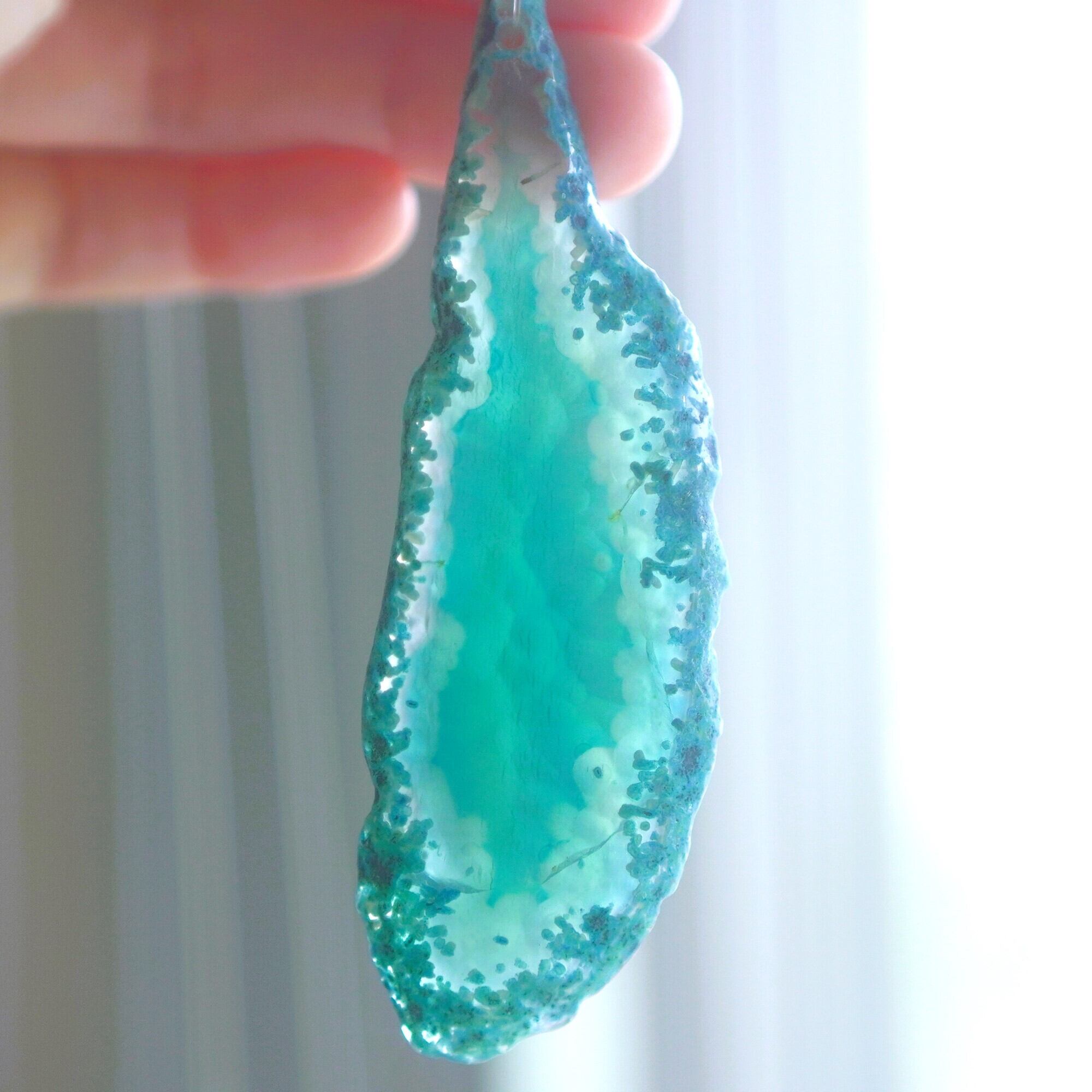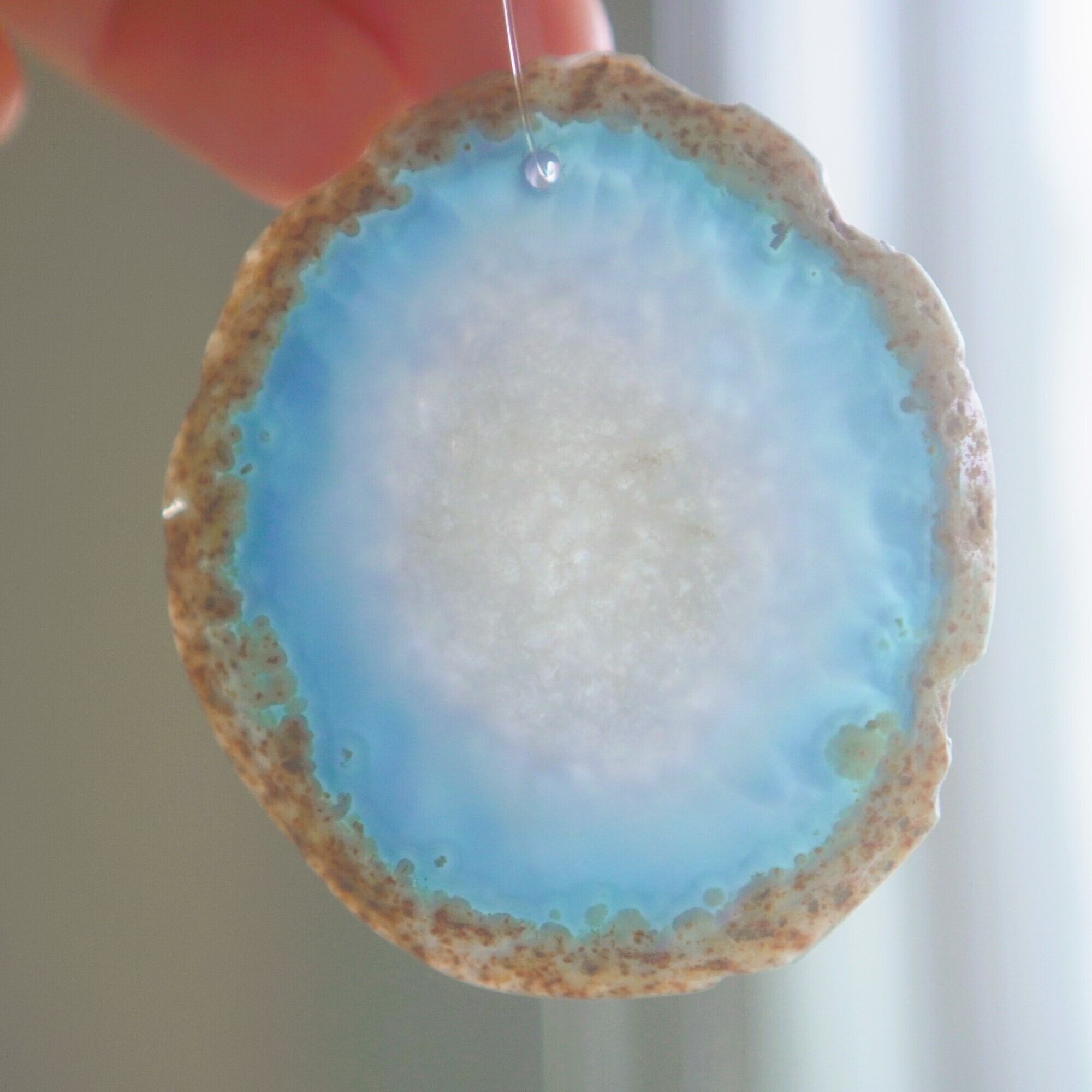 ✧染色の石なので耐光性(光による経年でのカラー変化の耐性)に優れているわけではなくベランダなど一日の中で長時間強い日光に当たるような場所に飾られるのはおすすめしないのですが、陽光に透かした時にだけ真価を発揮する美しさがありますので、是非、時折翳したりして光と一緒にお楽しみいただけたらと思います。特に濃い鮮やかな色など、色変化が気になられる場合は、日光のあまり当たらない場所に飾ってくださいね✧