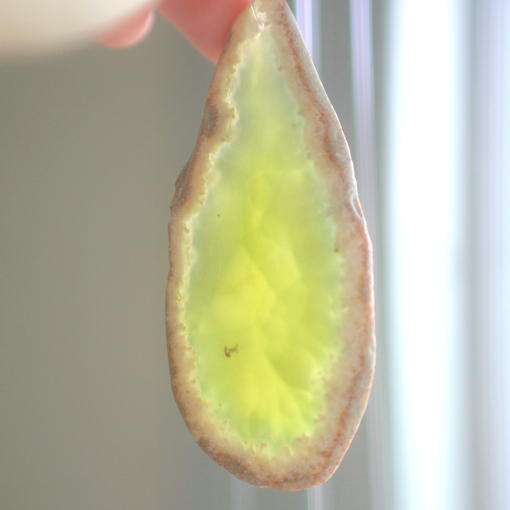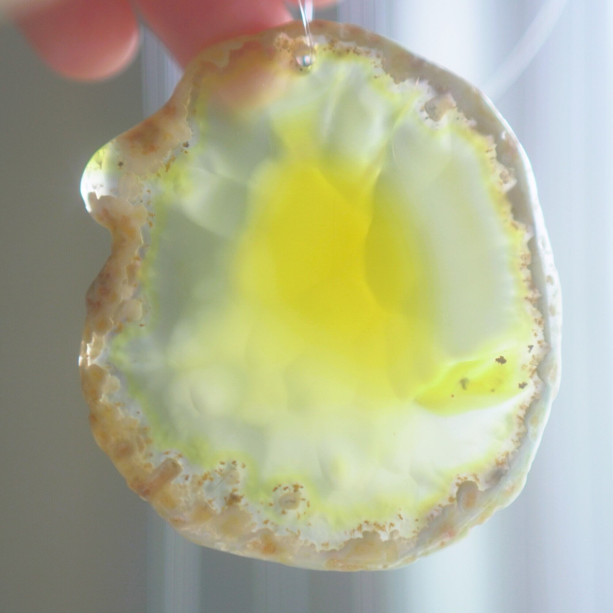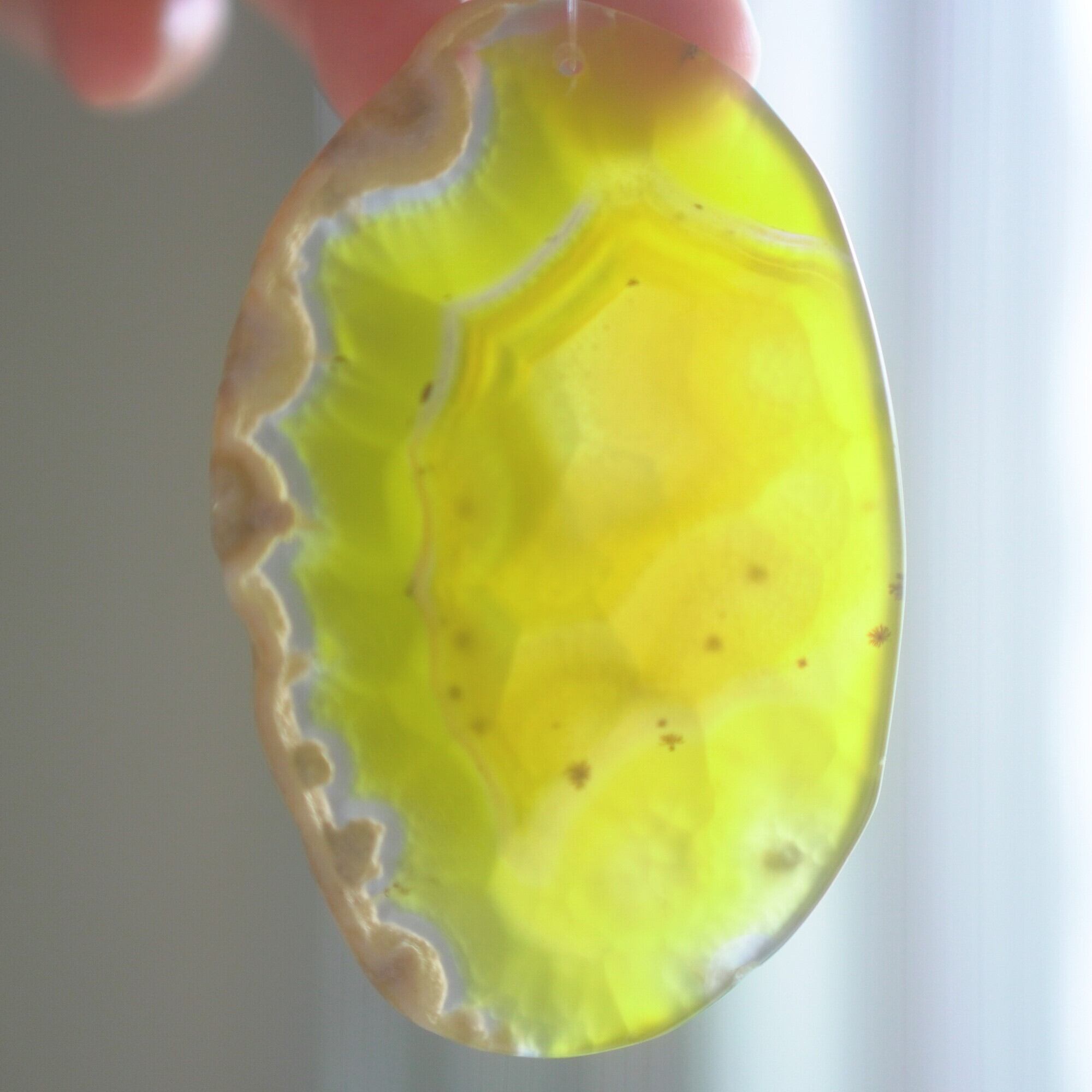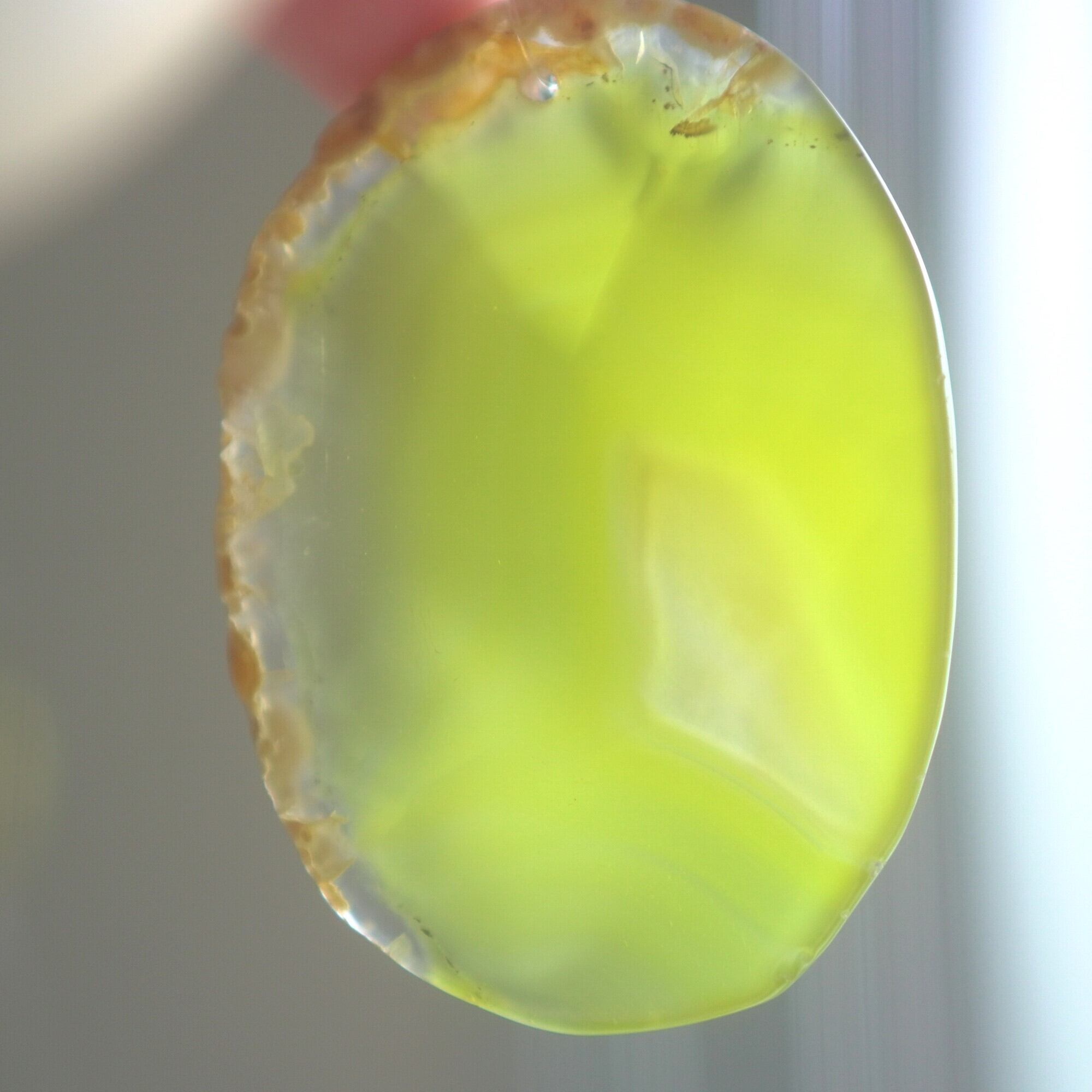✧染色の石なので耐光性(光による経年でのカラー変化の耐性)に優れているわけではなくベランダなど一日の中で長時間強い日光に当たるような場所に飾られるのはおすすめしないのですが、陽光に透かした時にだけ真価を発揮する美しさがありますので、是非、時折翳したりして光と一緒にお楽しみいただけたらと思います。特に濃い鮮やかな色など、色変化が気になられる場合は、日光のあまり当たらない場所に飾ってくださいね✧