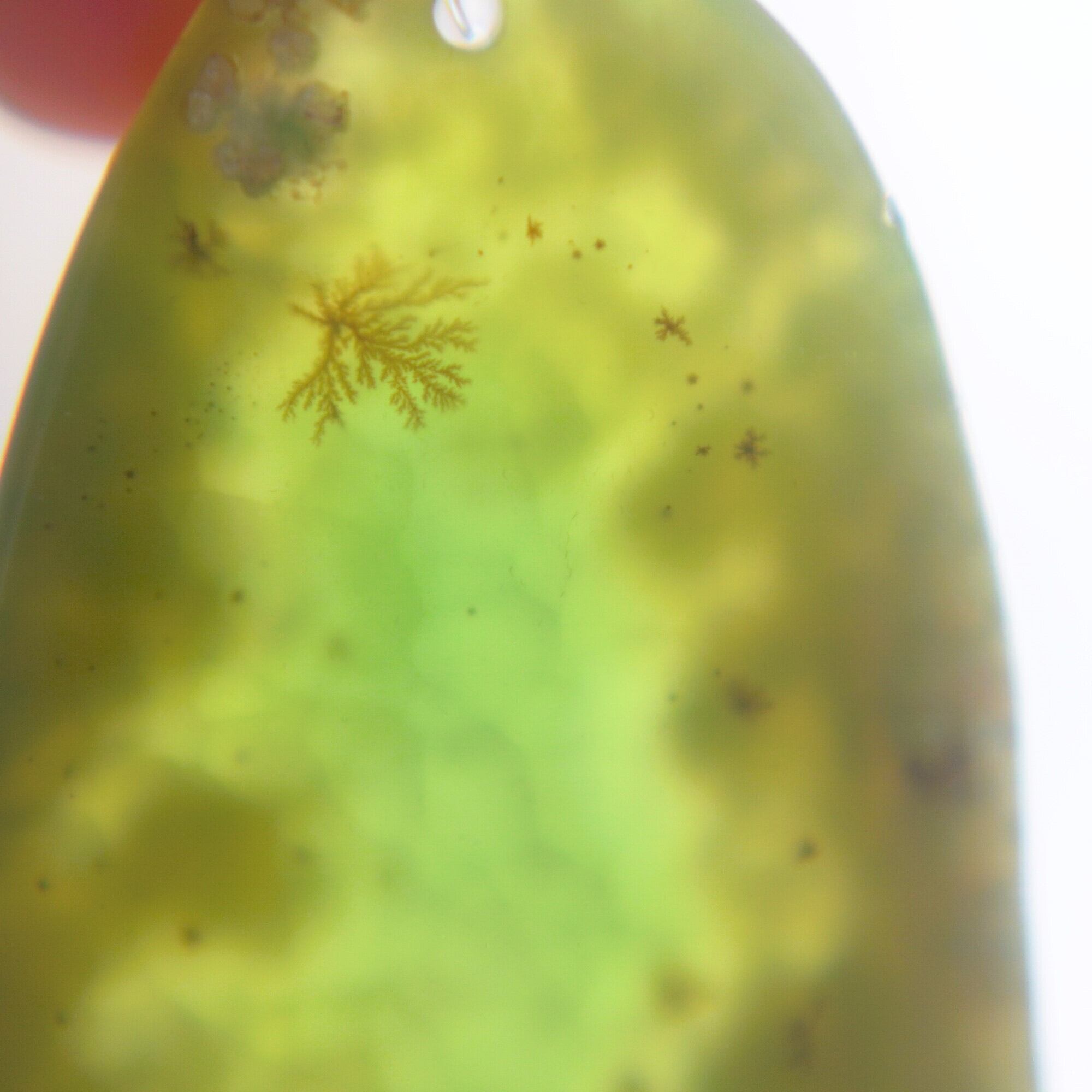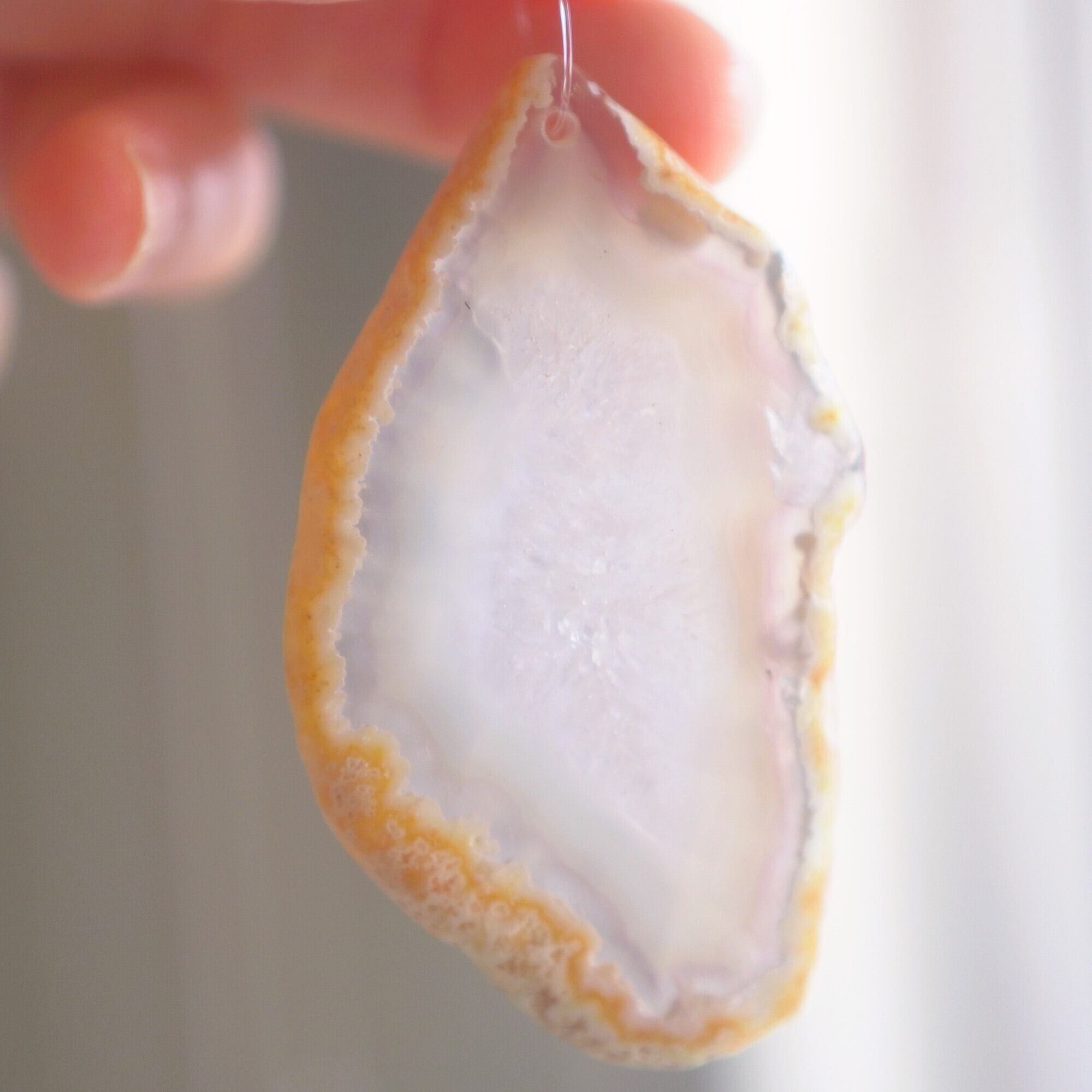 重ねる石同士の側面の加工状態によっても良い音が鳴ったり鳴らなかったり、石の見た目だけで組み合わせを決められないことが難しいポイントでもあるのですが、そんな中、たくさんの石の中から選ばれた5枚のスライスアゲートから出来上がったチャイムたちは、どこか悠々自適に空を泳ぐ妖精のようでもあり、それぞれの音を楽しそうに奏でてくれます。