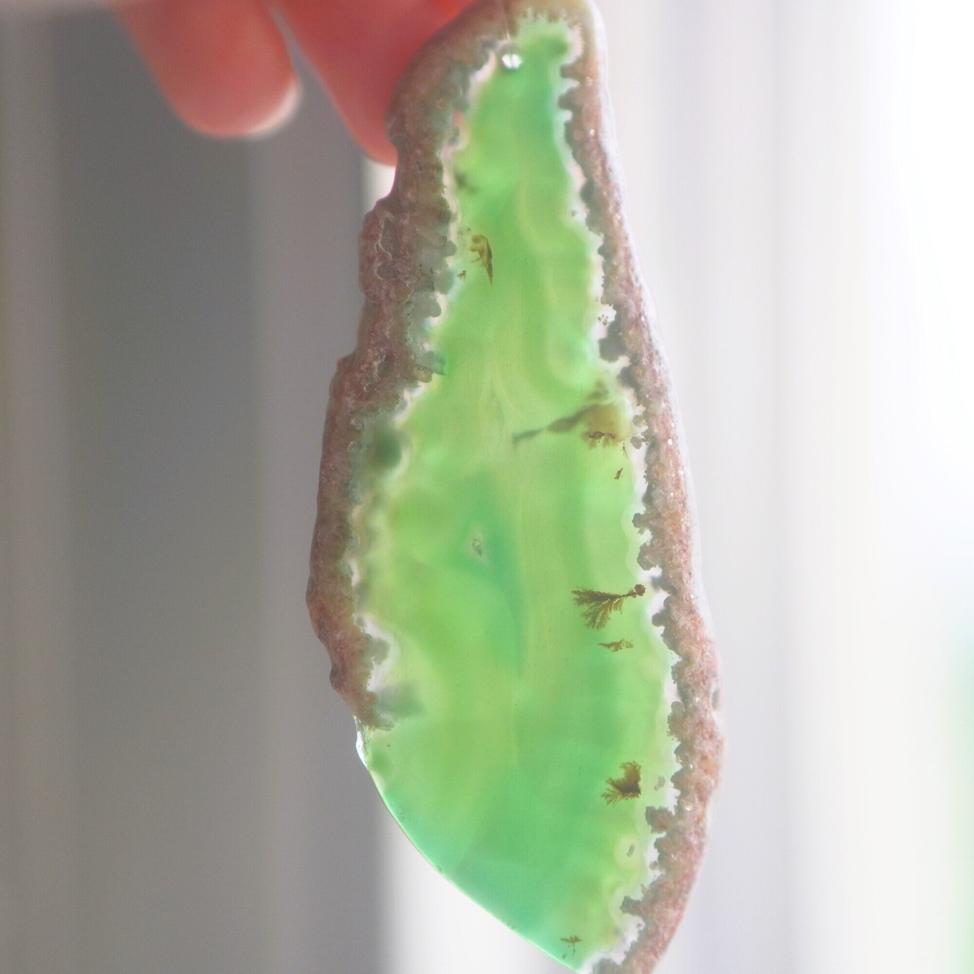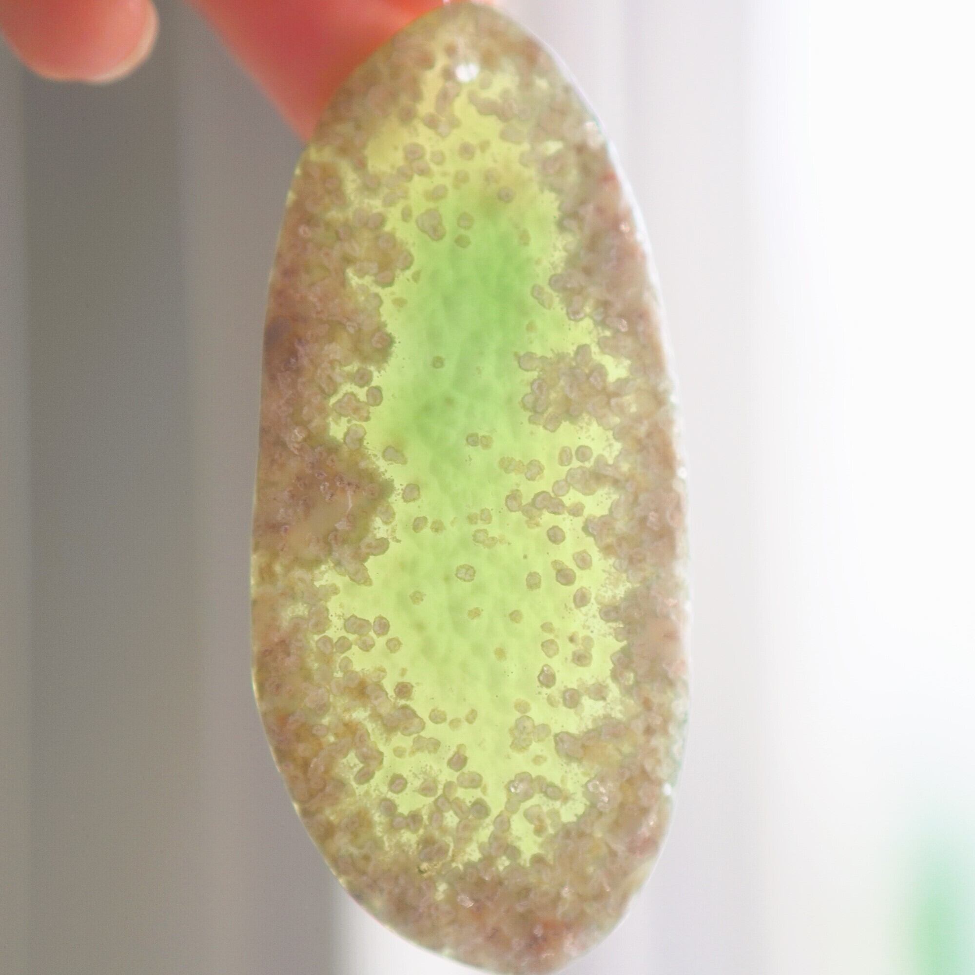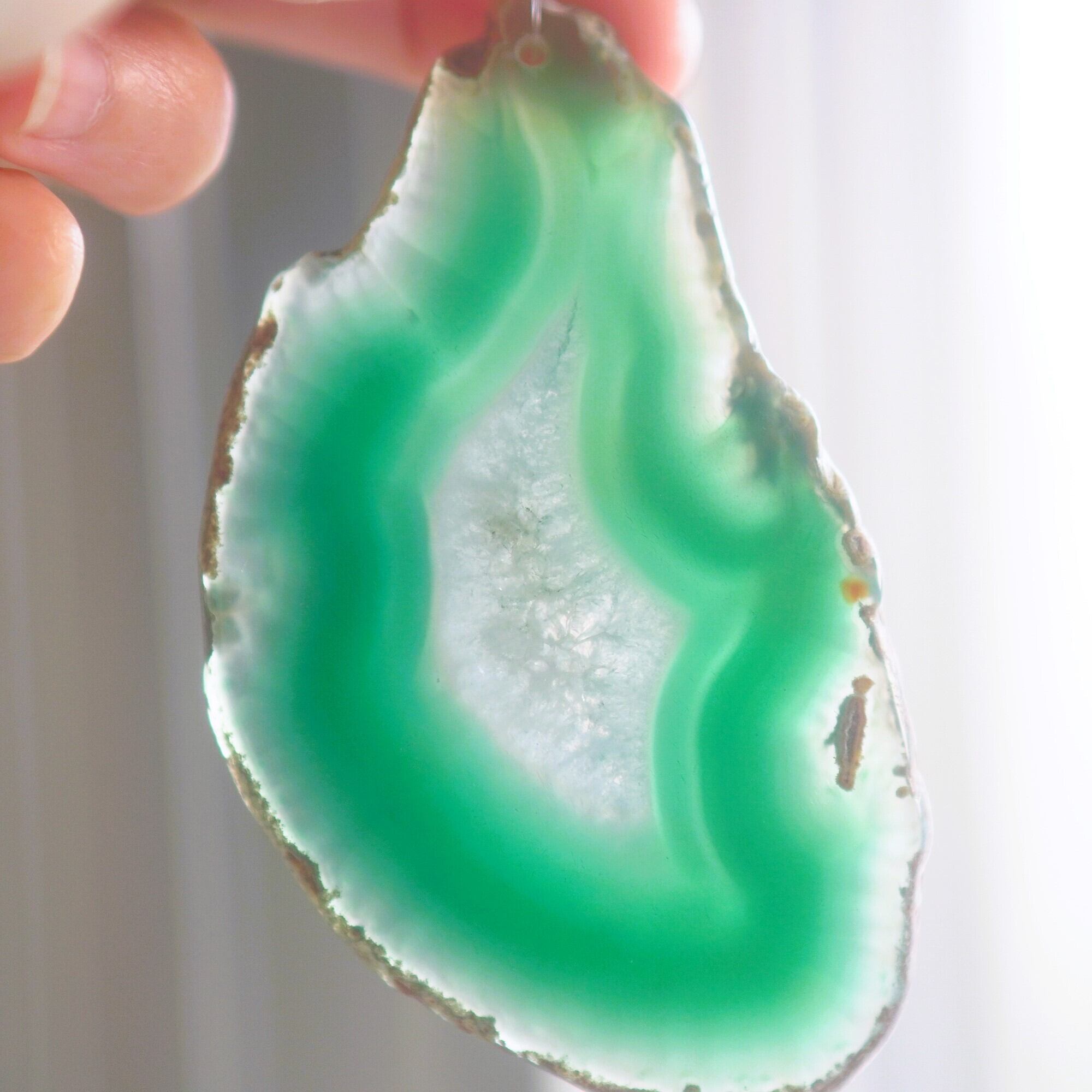✧染色の石なので耐光性(光による経年でのカラー変化の耐性)に優れているわけではなくベランダなど一日の中で長時間強い日光に当たるような場所に飾られるのはおすすめしないのですが、陽光に透かした時にだけ真価を発揮する美しさがありますので、是非、時折翳したりして光と一緒にお楽しみいただけたらと思います。特に濃い鮮やかな色など、色変化が気になられる場合は、日光のあまり当たらない場所に飾ってくださいね✧