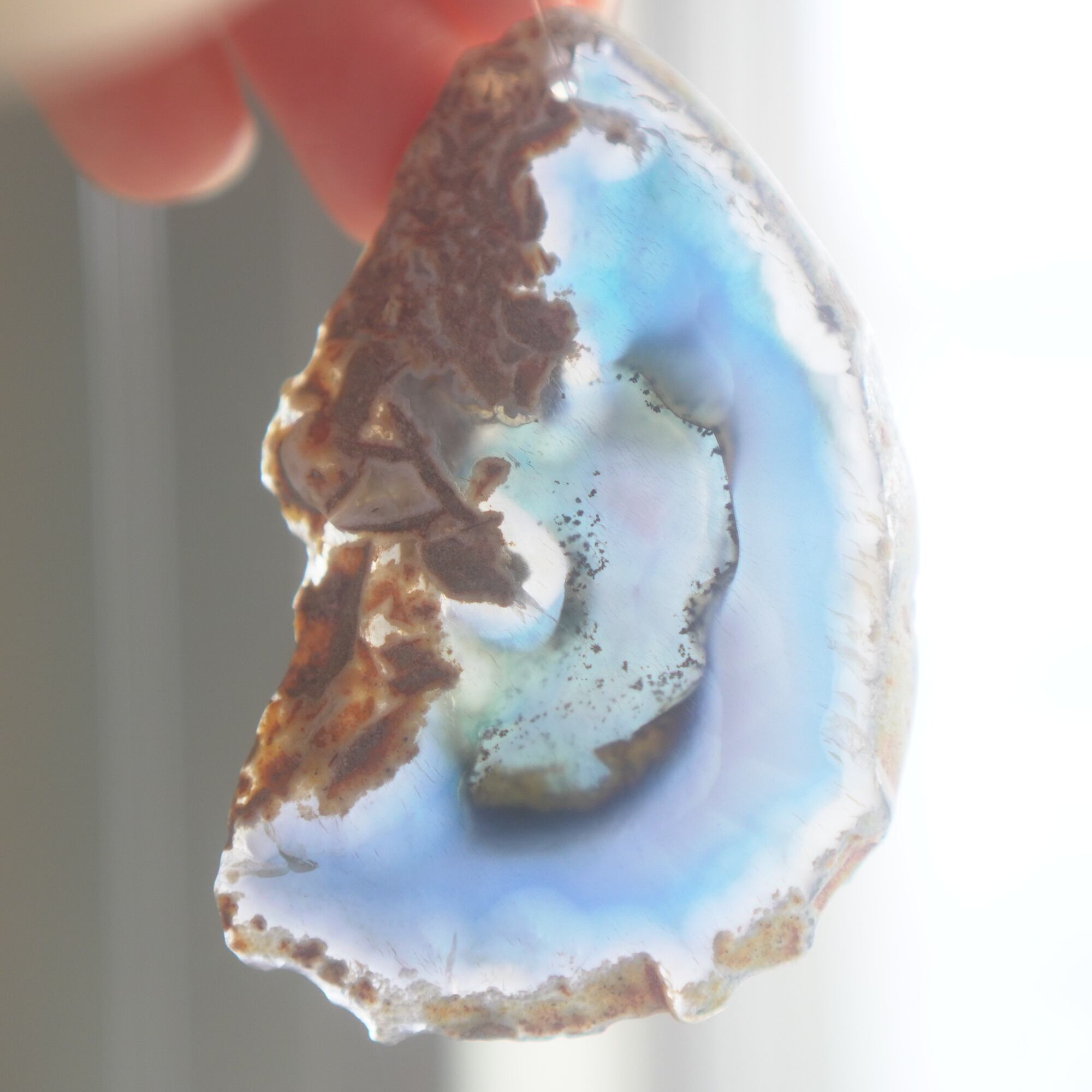✧染色の石なので耐光性(光による経年でのカラー変化の耐性)に優れているわけではなくベランダなど一日の中で長時間強い日光に当たるような場所に飾られるのはおすすめしないのですが、陽光に透かした時にだけ真価を発揮する美しさがありますので、是非、時折翳したりして光と一緒にお楽しみいただけたらと思います。特に濃い鮮やかな色など、色変化が気になられる場合は、日光のあまり当たらない場所に飾ってくださいね✧