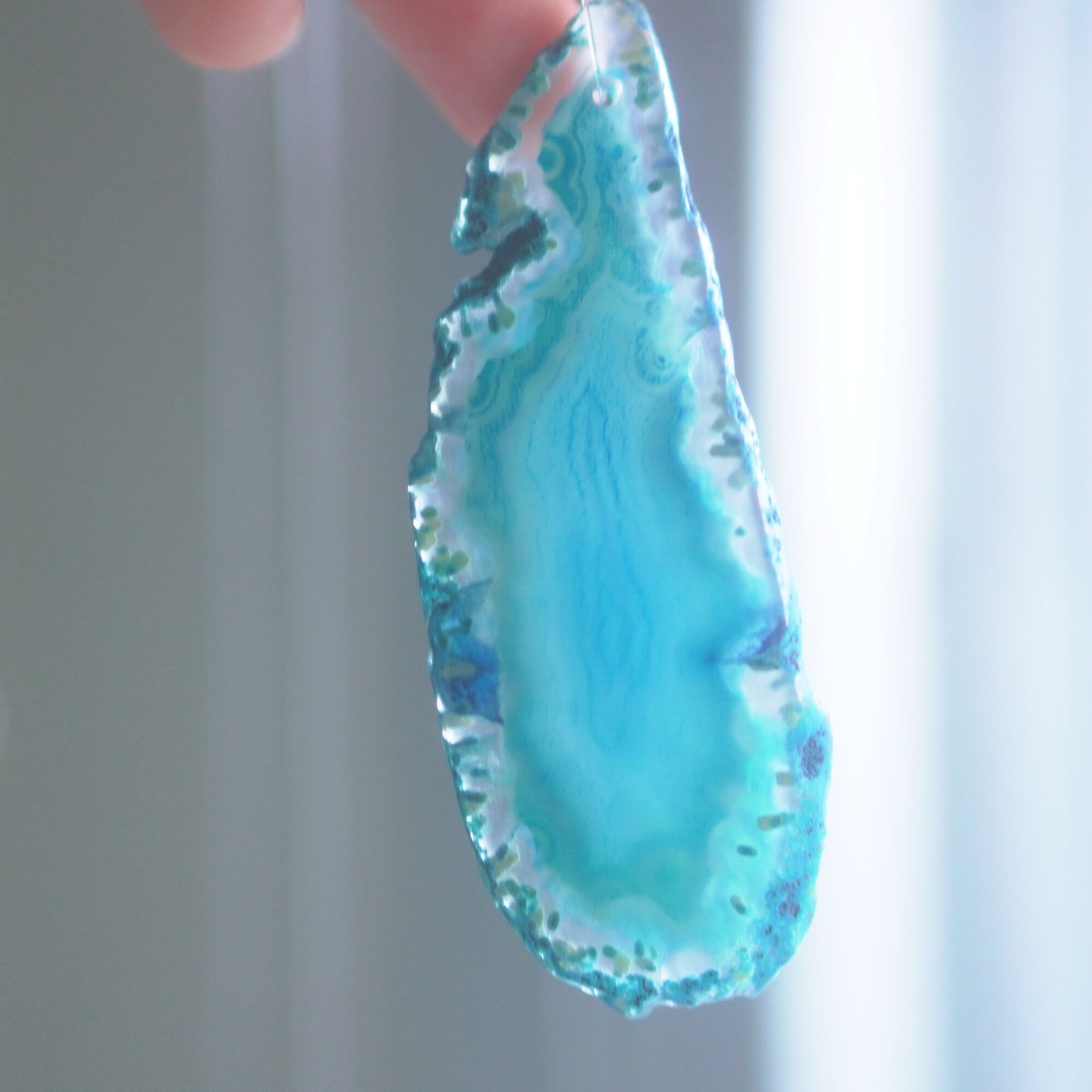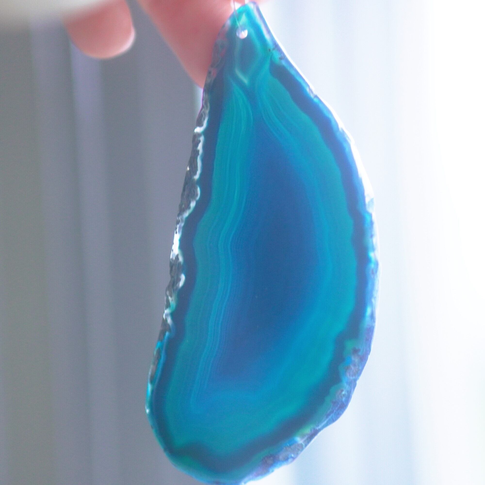 ✧染色の石なので耐光性(光による経年でのカラー変化の耐性)に優れているわけではなくベランダなど一日の中で長時間強い日光に当たるような場所に飾られるのはおすすめしないのですが、陽光に透かした時にだけ真価を発揮する美しさがありますので、是非、時折翳したりして光と一緒にお楽しみいただけたらと思います。特に濃い鮮やかな色など、色変化が気になられる場合は、日光のあまり当たらない場所に飾ってくださいね✧