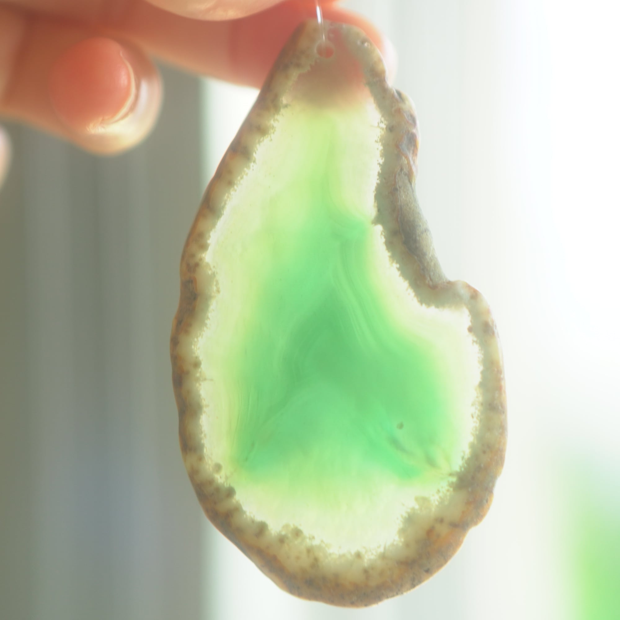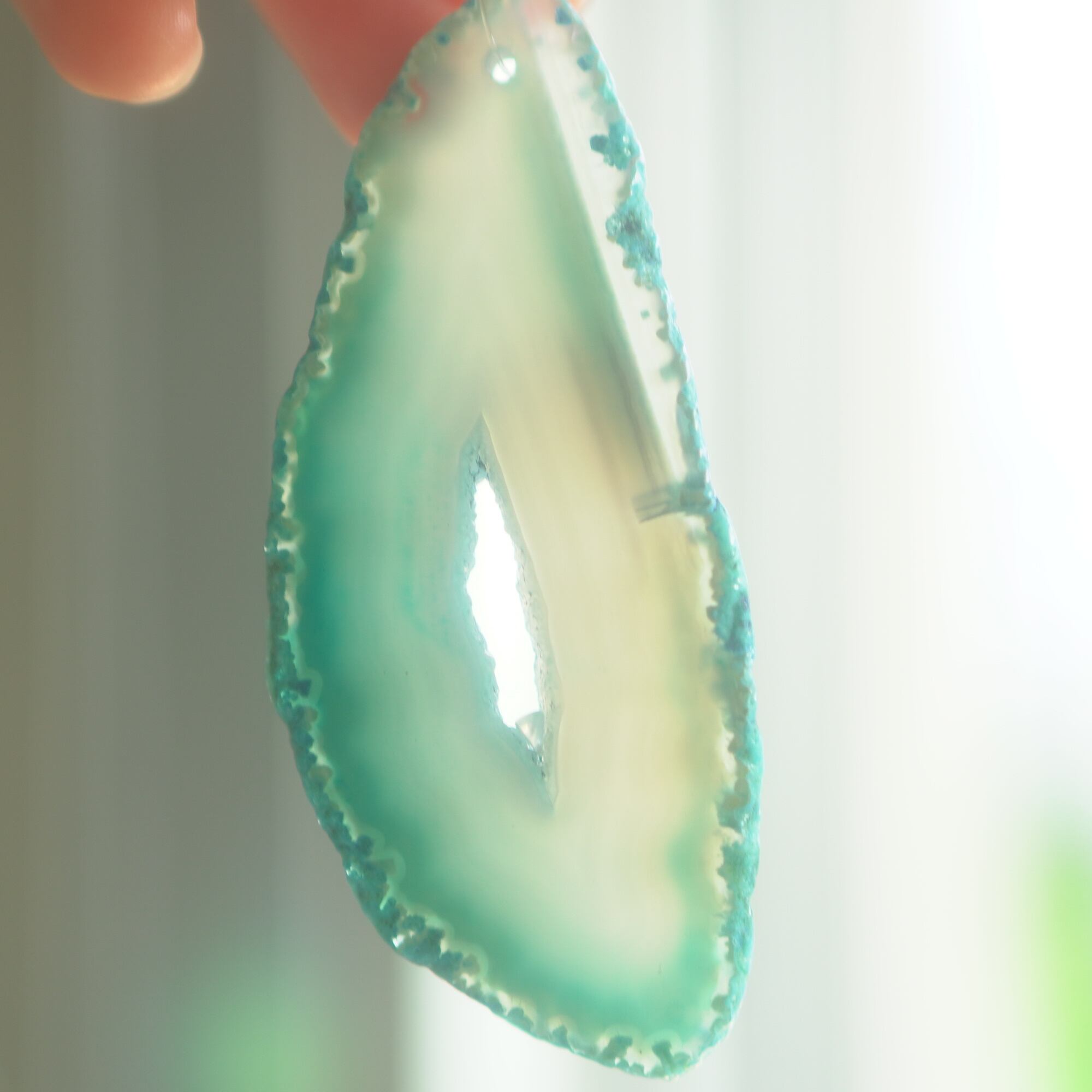 ✧染色の石なので耐光性(光による経年でのカラー変化の耐性)に優れているわけではなくベランダなど一日の中で長時間強い日光に当たるような場所に飾られるのはおすすめしないのですが、陽光に透かした時にだけ真価を発揮する美しさがありますので、是非、時折翳したりして光と一緒にお楽しみいただけたらと思います。特に濃い鮮やかな色など、色変化が気になられる場合は、日光のあまり当たらない場所に飾ってくださいね✧