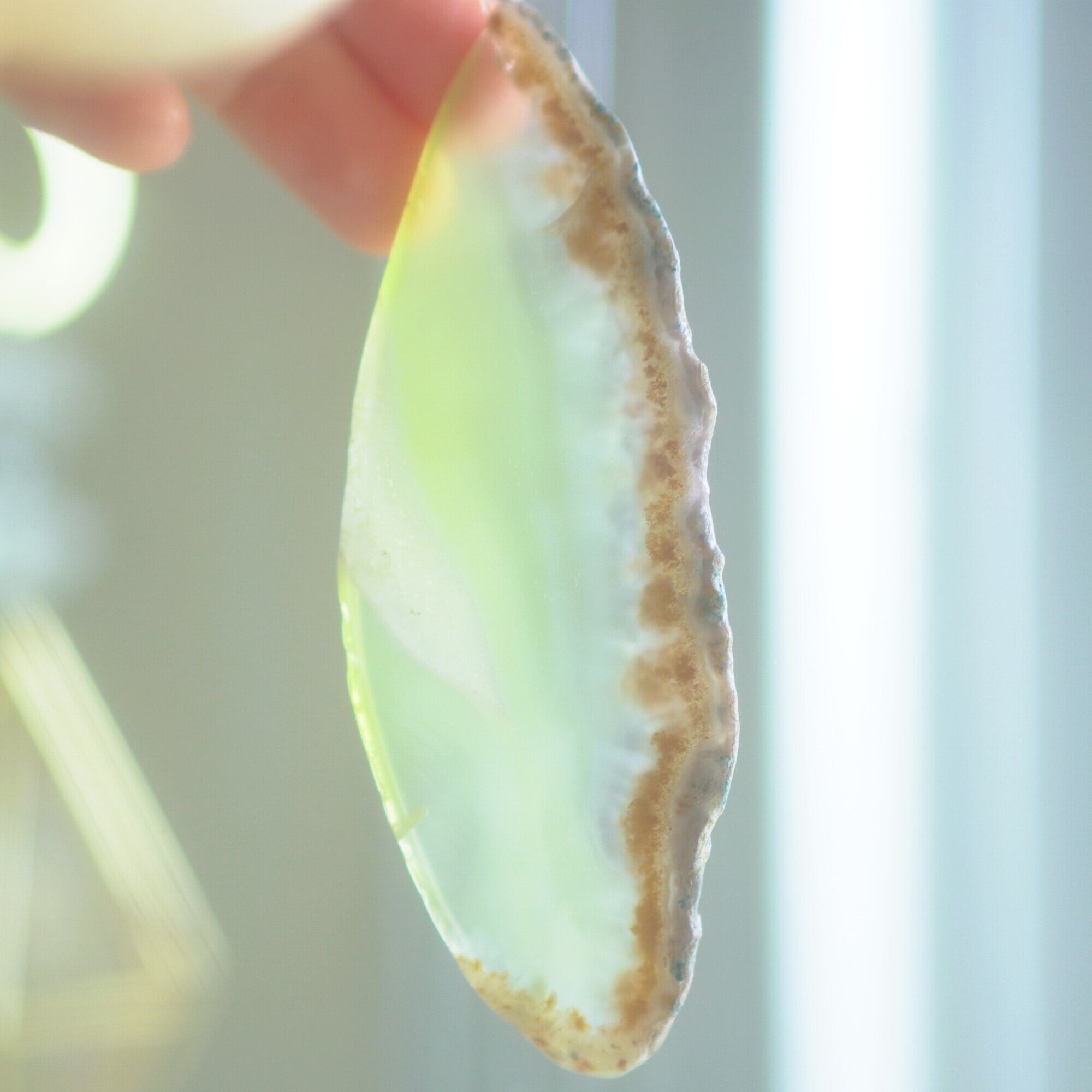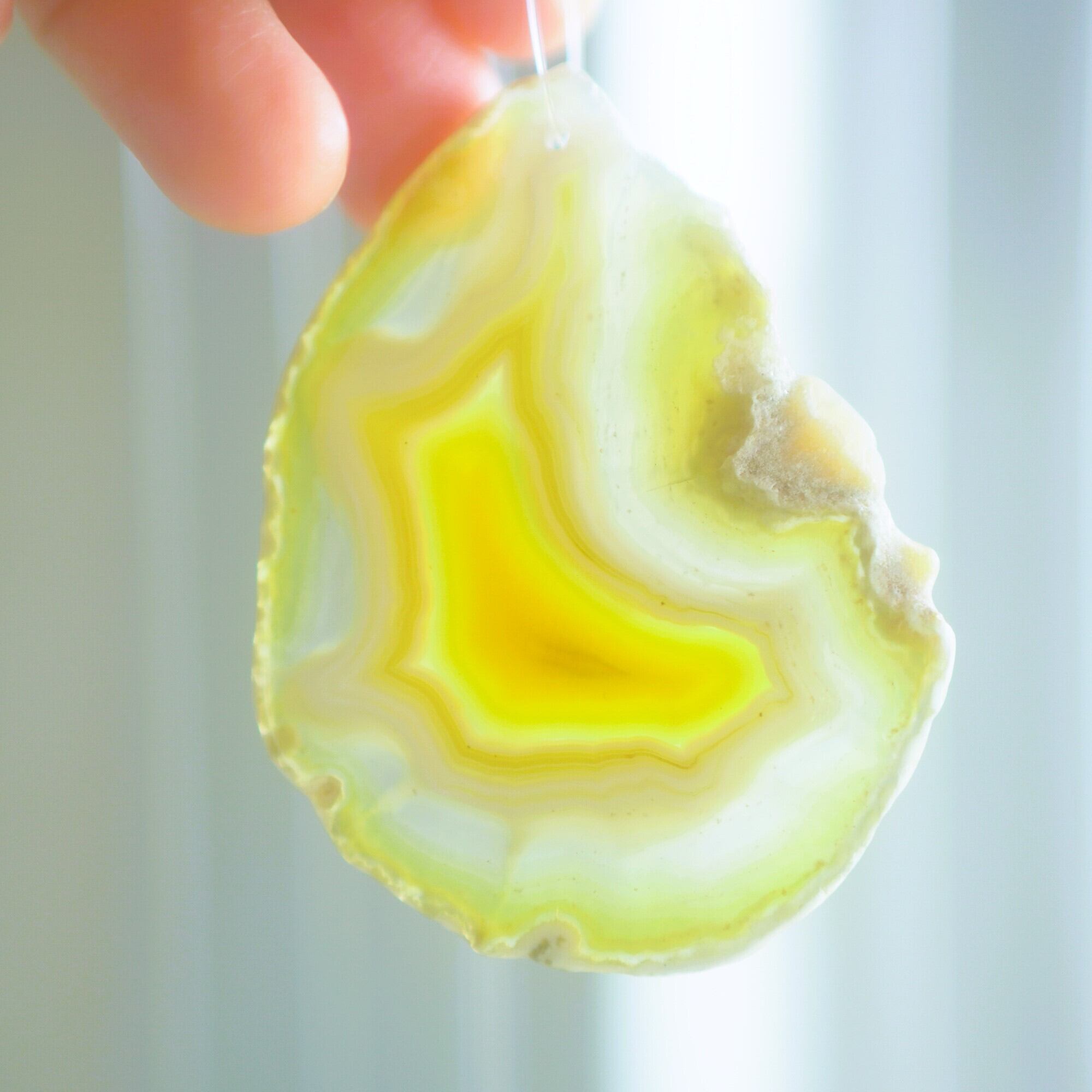 ✧染色の石なので耐光性(光による経年でのカラー変化の耐性)に優れているわけではなくベランダなど一日の中で長時間強い日光に当たるような場所に飾られるのはおすすめしないのですが、陽光に透かした時にだけ真価を発揮する美しさがありますので、是非、時折翳したりして光と一緒にお楽しみいただけたらと思います。特に濃い鮮やかな色など、色変化が気になられる場合は、日光のあまり当たらない場所に飾ってくださいね✧