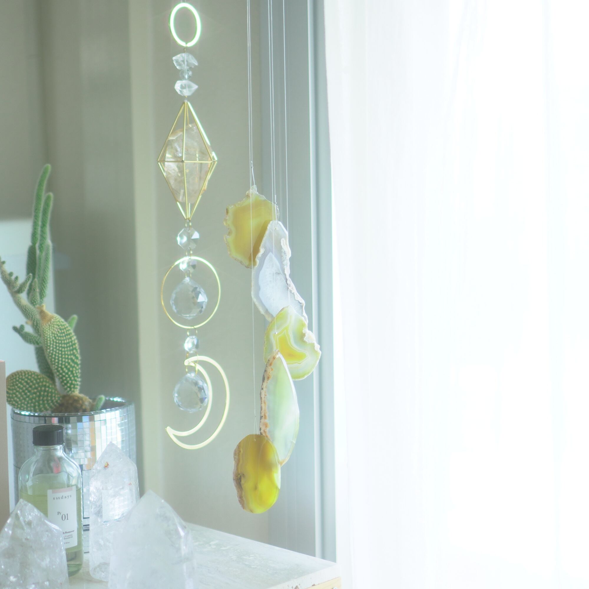 そしてカーテン越しではなく直射日光を当てた際のサンキャッチャーとしてのチャイムも、ピカピカとした美しい光をお部屋の中に運んでくれます。