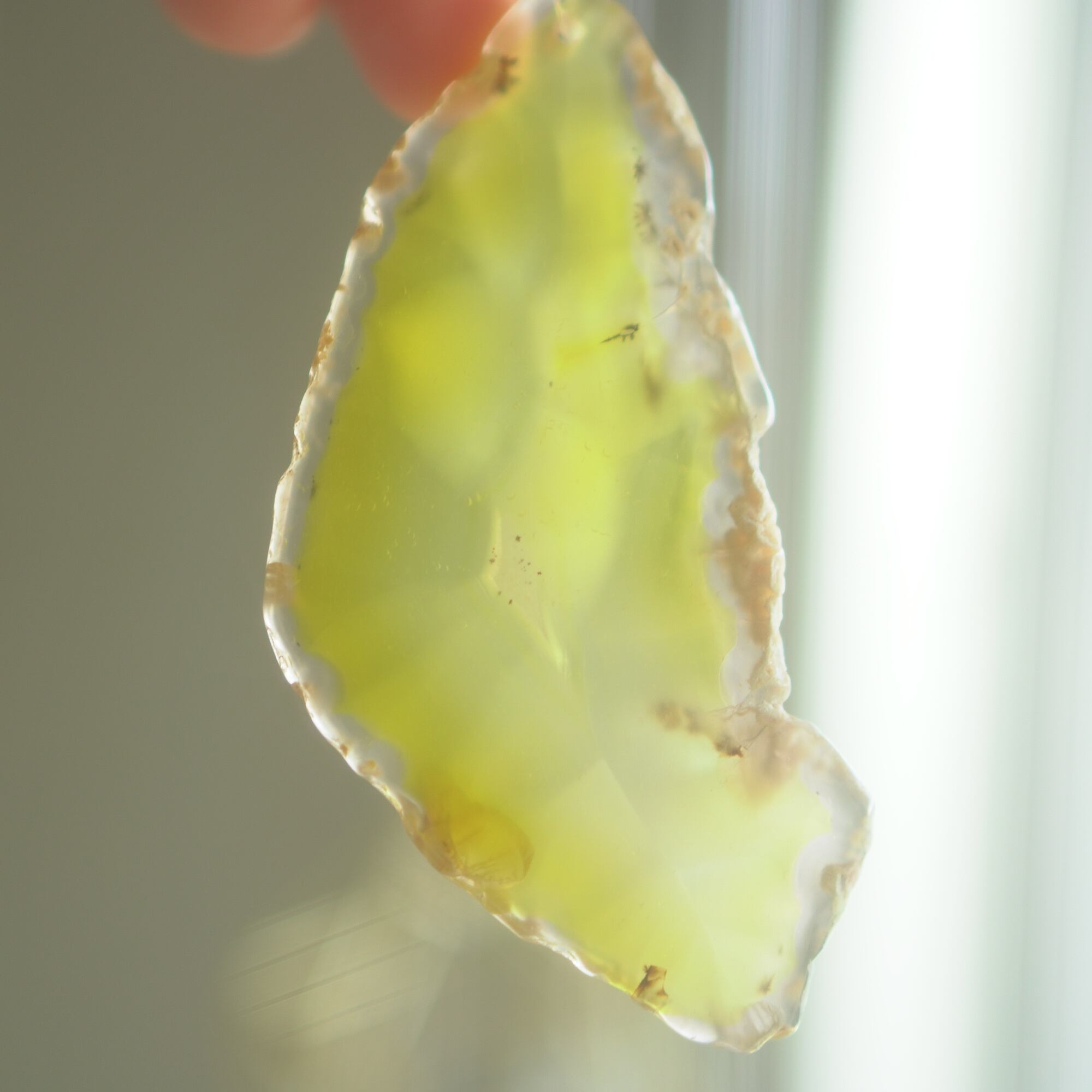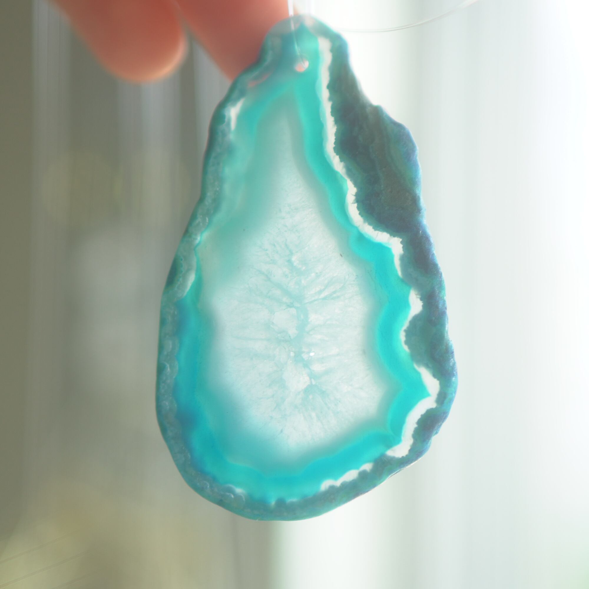 ✧染色の石なので耐光性(光による経年でのカラー変化の耐性)に優れているわけではなくベランダなど一日の中で長時間強い日光に当たるような場所に飾られるのはおすすめしないのですが、陽光に透かした時にだけ真価を発揮する美しさがありますので、是非、時折翳したりして光と一緒にお楽しみいただけたらと思います。特に濃い鮮やかな色など、色変化が気になられる場合は、日光のあまり当たらない場所に飾ってくださいね✧