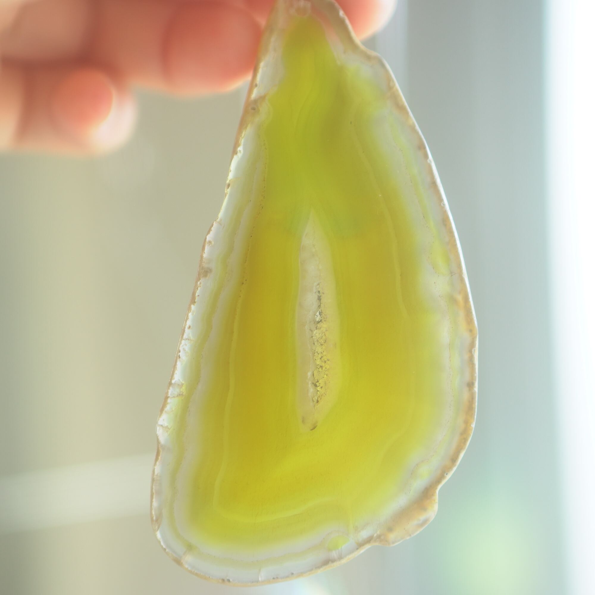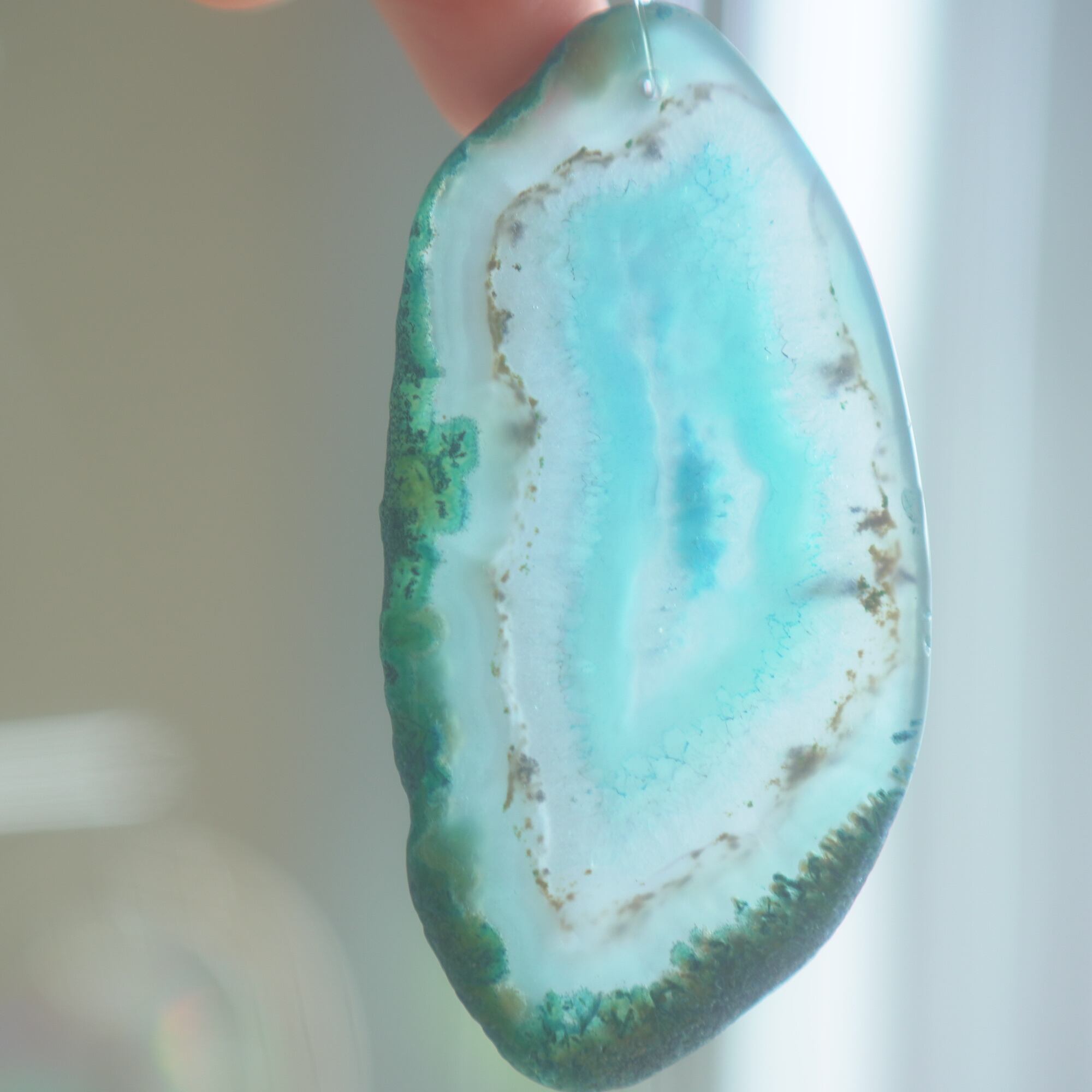 ✧染色の石なので耐光性(光による経年でのカラー変化の耐性)に優れているわけではなくベランダなど一日の中で長時間強い日光に当たるような場所に飾られるのはおすすめしないのですが、陽光に透かした時にだけ真価を発揮する美しさがありますので、是非、時折翳したりして光と一緒にお楽しみいただけたらと思います。特に濃い鮮やかな色など、色変化が気になられる場合は、日光のあまり当たらない場所に飾ってくださいね✧