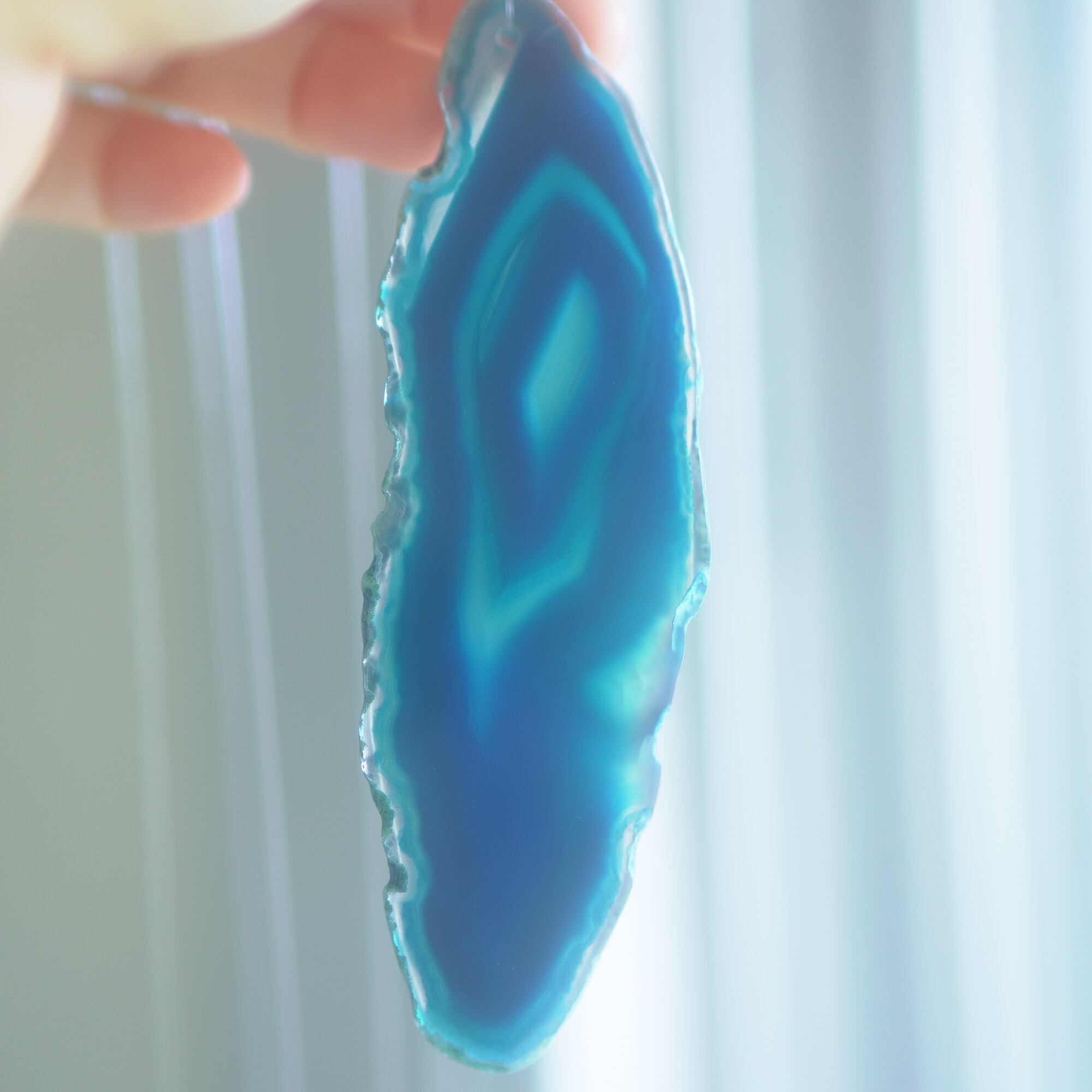 ✧染色の石なので耐光性(光による経年でのカラー変化の耐性)に優れているわけではなくベランダなど一日の中で長時間強い日光に当たるような場所に飾られるのはおすすめしないのですが、陽光に透かした時にだけ真価を発揮する美しさがありますので、是非、時折翳したりして光と一緒にお楽しみいただけたらと思います。特に濃い鮮やかな色など、色変化が気になられる場合は、日光のあまり当たらない場所に飾ってくださいね✧