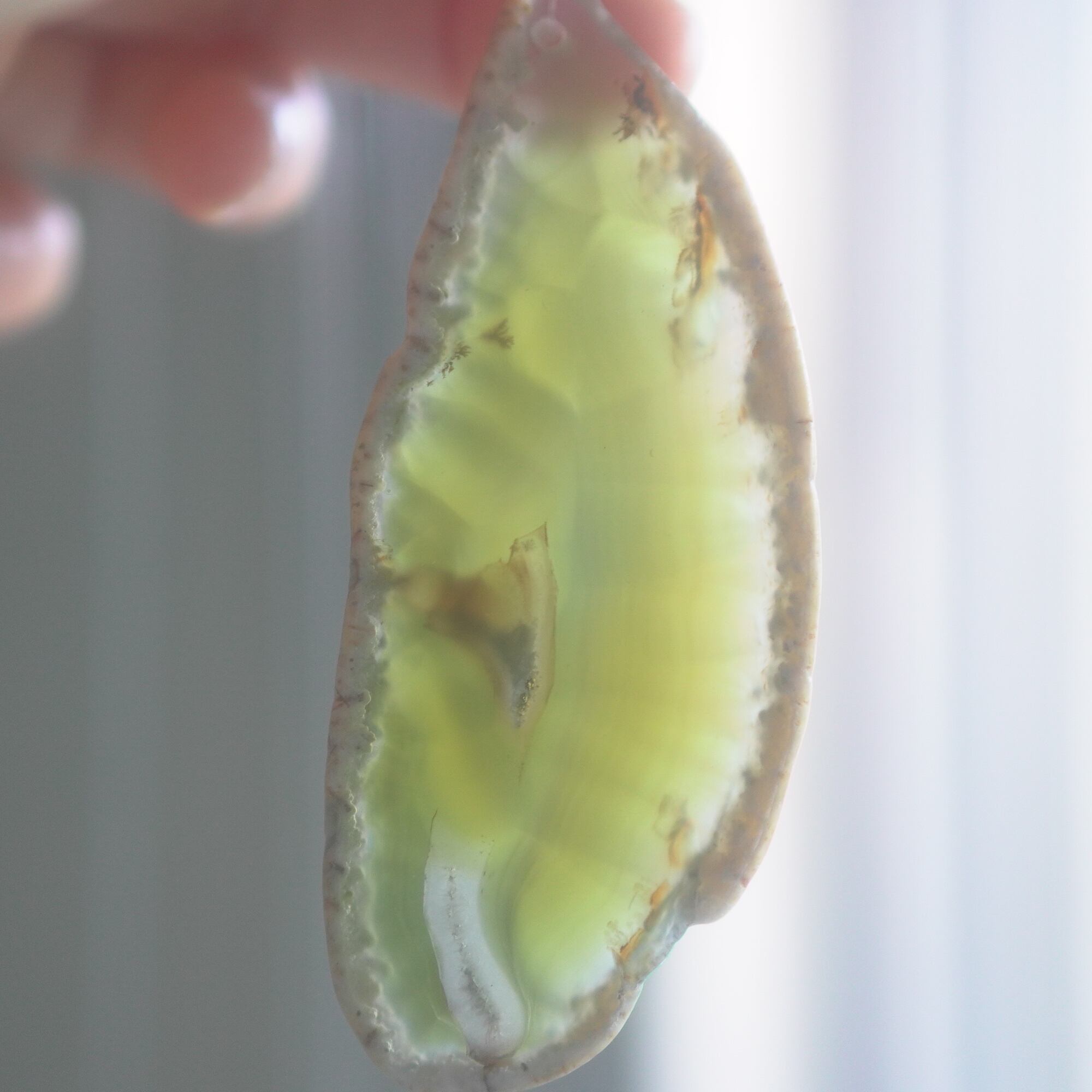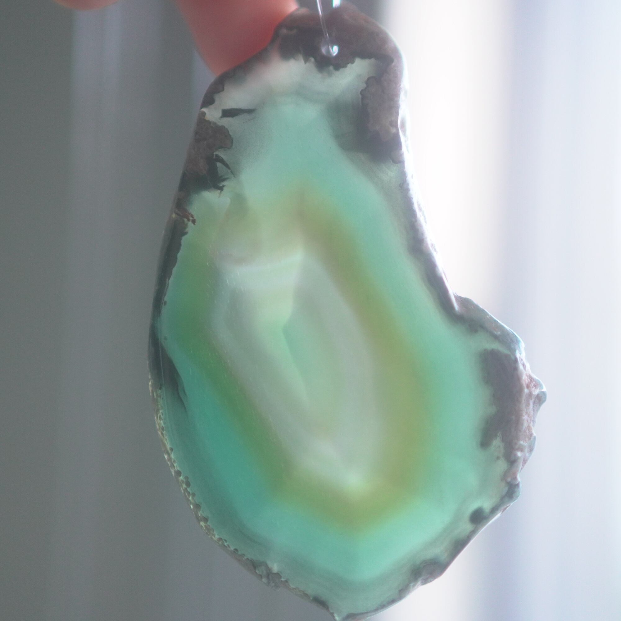 ✧染色の石なので耐光性(光による経年でのカラー変化の耐性)に優れているわけではなくベランダなど一日の中で長時間強い日光に当たるような場所に飾られるのはおすすめしないのですが、陽光に透かした時にだけ真価を発揮する美しさがありますので、是非、時折翳したりして光と一緒にお楽しみいただけたらと思います。特に濃い鮮やかな色など、色変化が気になられる場合は、日光のあまり当たらない場所に飾ってくださいね✧