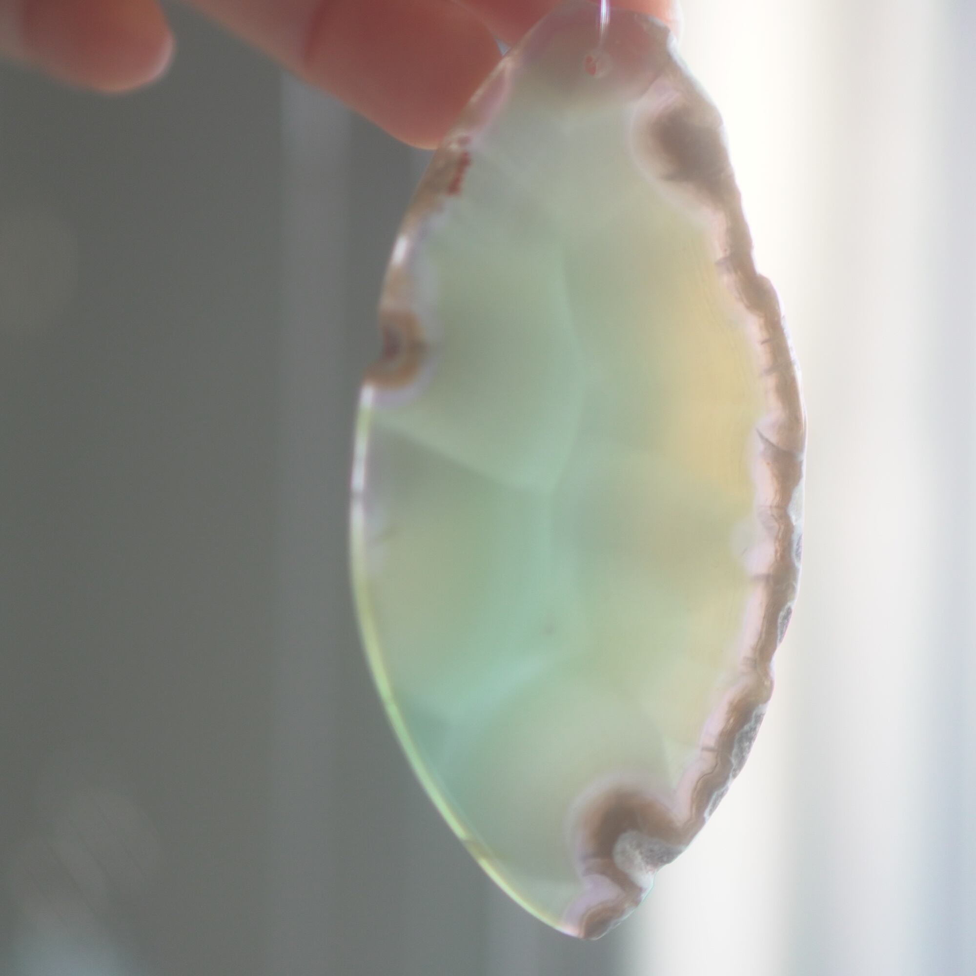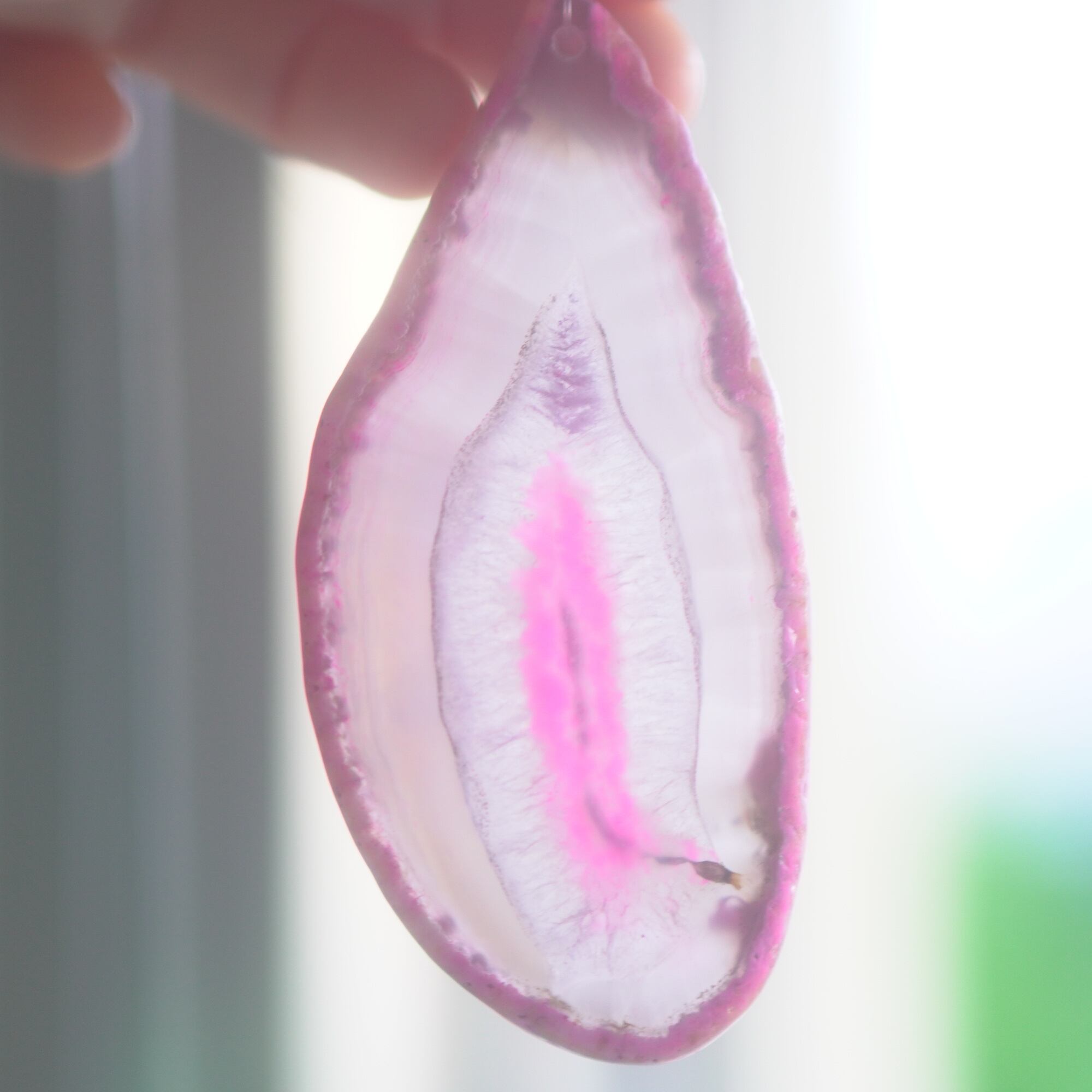 ✧染色の石なので耐光性(光による経年でのカラー変化の耐性)に優れているわけではなくベランダなど一日の中で長時間強い日光に当たるような場所に飾られるのはおすすめしないのですが、陽光に透かした時にだけ真価を発揮する美しさがありますので、是非、時折翳したりして光と一緒にお楽しみいただけたらと思います。特に濃い鮮やかな色など、色変化が気になられる場合は、日光のあまり当たらない場所に飾ってくださいね✧
