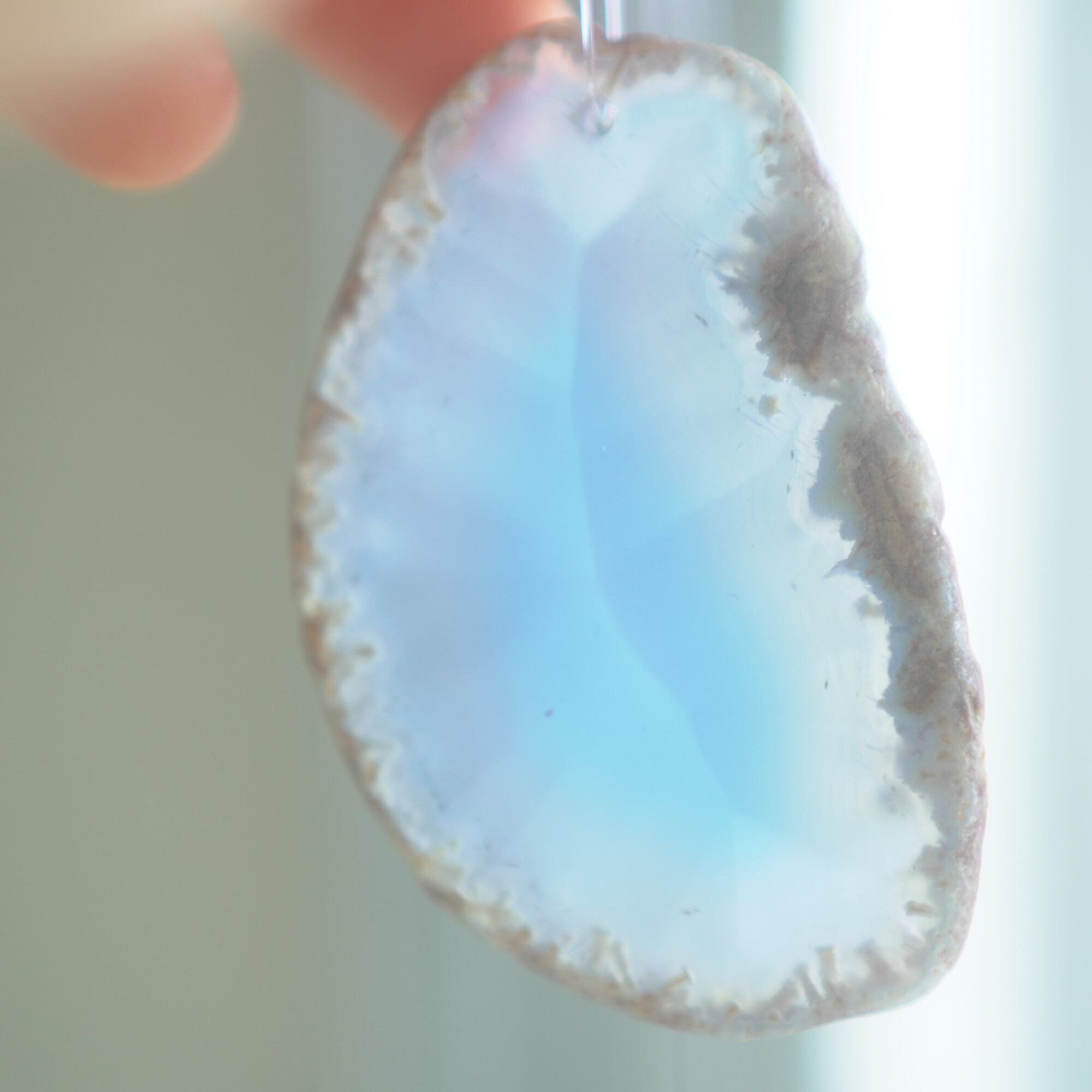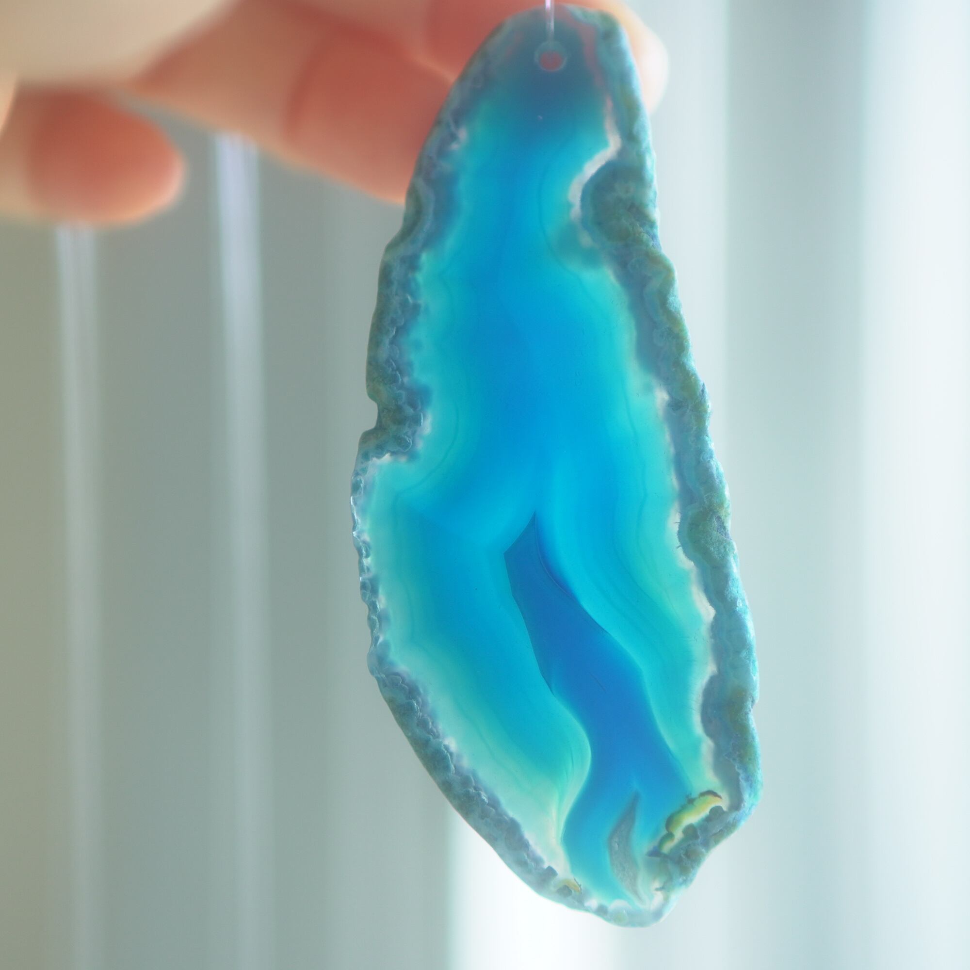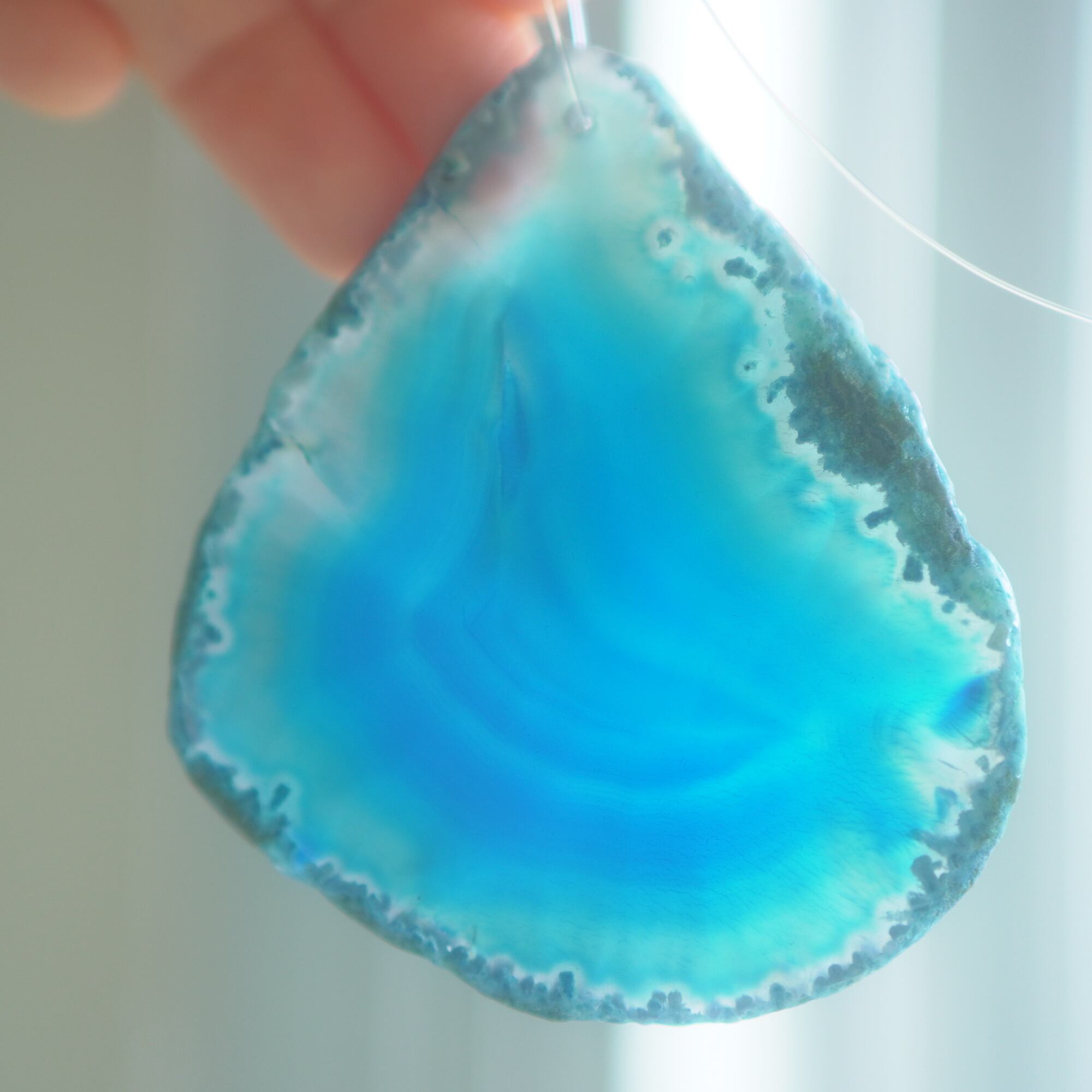 ✧染色の石なので耐光性(光による経年でのカラー変化の耐性)に優れているわけではなくベランダなど一日の中で長時間強い日光に当たるような場所に飾られるのはおすすめしないのですが、陽光に透かした時にだけ真価を発揮する美しさがありますので、是非、時折翳したりして光と一緒にお楽しみいただけたらと思います。特に濃い鮮やかな色など、色変化が気になられる場合は、日光のあまり当たらない場所に飾ってくださいね✧