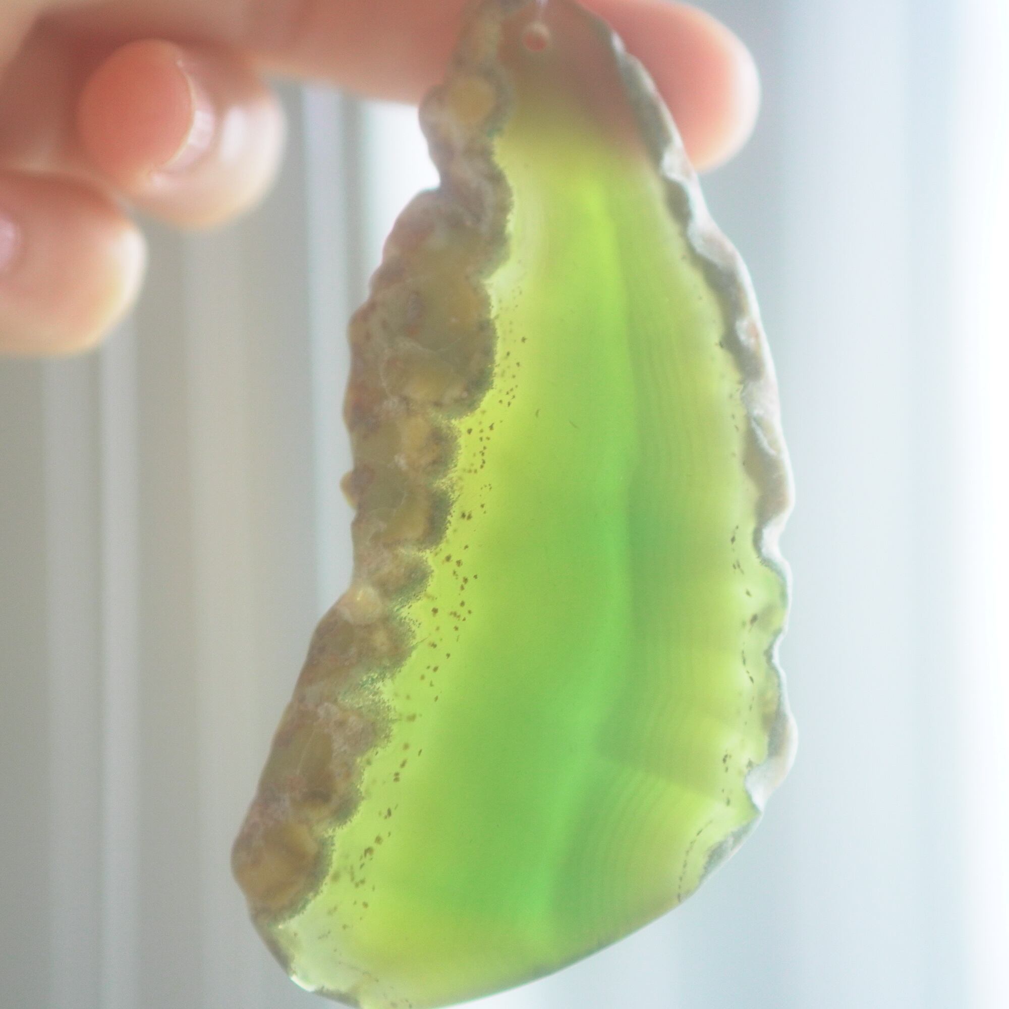 ✧染色の石なので耐光性(光による経年でのカラー変化の耐性)に優れているわけではなくベランダなど一日の中で長時間強い日光に当たるような場所に飾られるのはおすすめしないのですが、陽光に透かした時にだけ真価を発揮する美しさがありますので、是非、時折翳したりして光と一緒にお楽しみいただけたらと思います。特に濃い鮮やかな色など、色変化が気になられる場合は、日光のあまり当たらない場所に飾ってくださいね✧