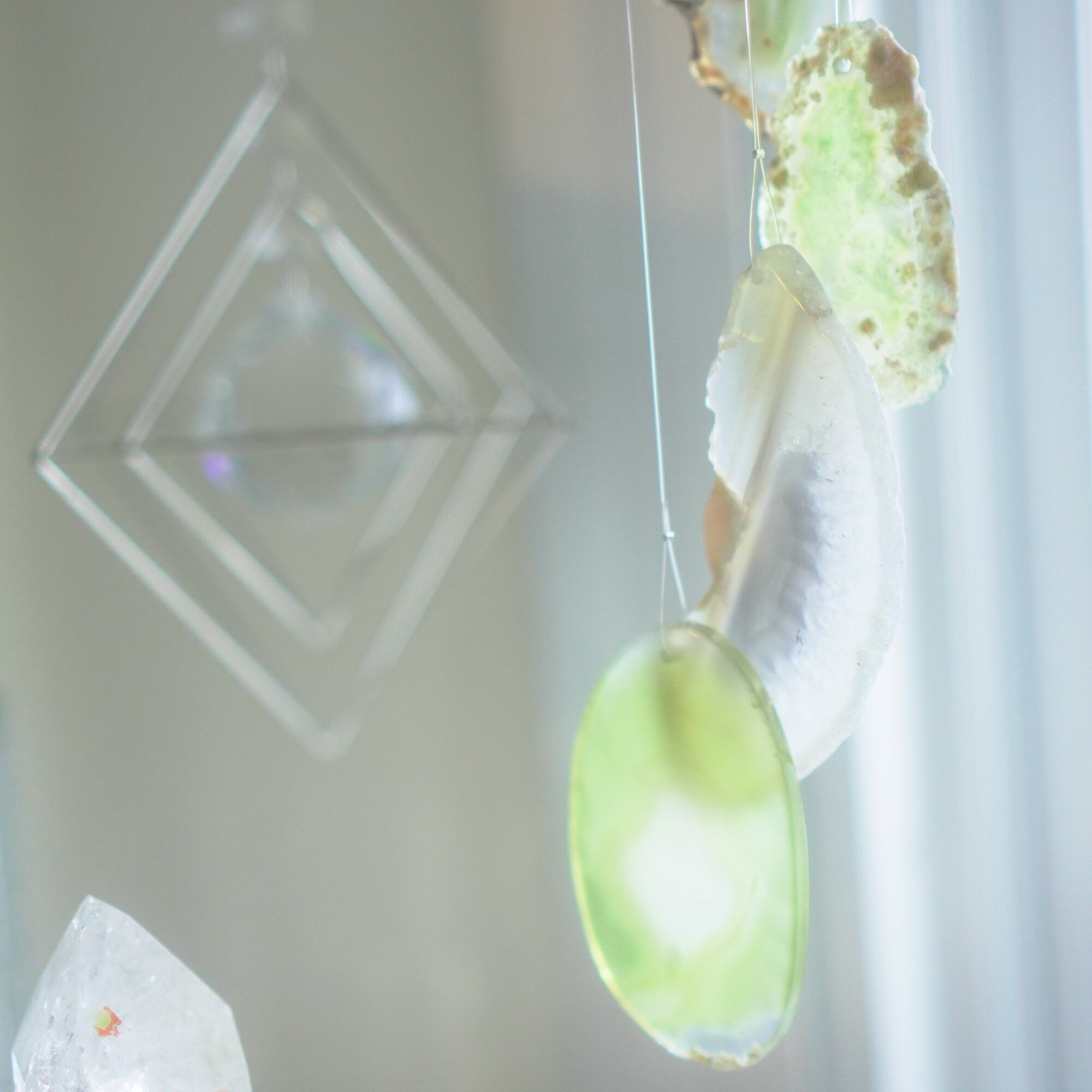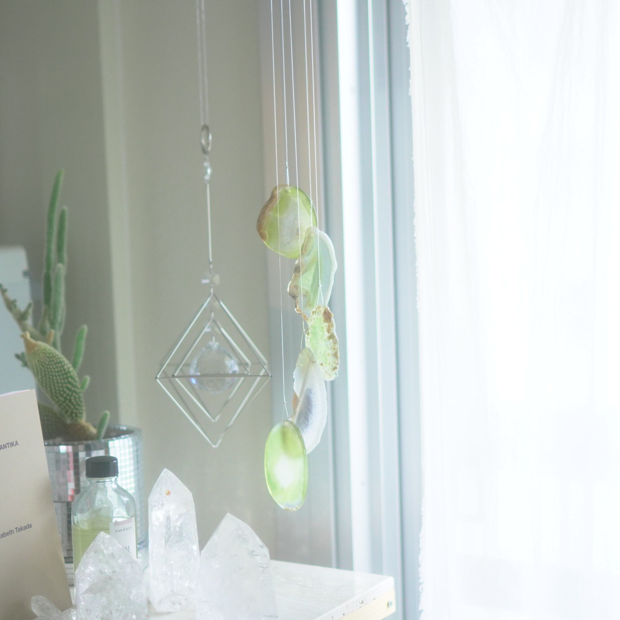 そしてカーテン越しではなく直射日光を当てた際のサンキャッチャーとしてのチャイムも、ピカピカとした美しい光をお部屋の中に運んでくれます。