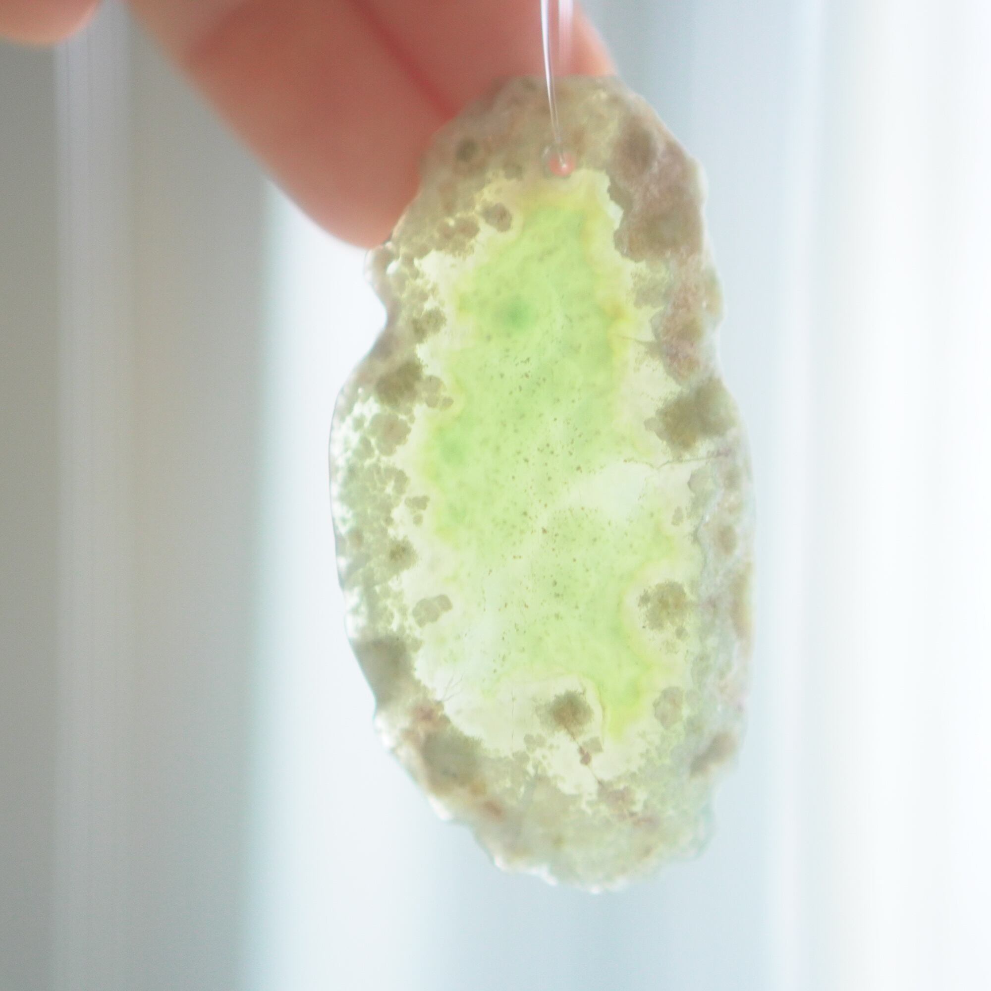 ✧染色の石なので耐光性(光による経年でのカラー変化の耐性)に優れているわけではなくベランダなど一日の中で長時間強い日光に当たるような場所に飾られるのはおすすめしないのですが、陽光に透かした時にだけ真価を発揮する美しさがありますので、是非、時折翳したりして光と一緒にお楽しみいただけたらと思います。特に濃い鮮やかな色など、色変化が気になられる場合は、日光のあまり当たらない場所に飾ってくださいね✧