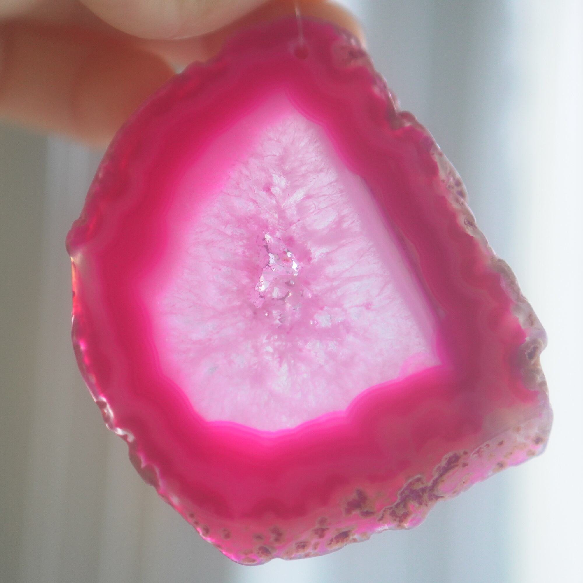 ✧染色の石なので耐光性(光による経年でのカラー変化の耐性)に優れているわけではなくベランダなど一日の中で長時間強い日光に当たるような場所に飾られるのはおすすめしないのですが、陽光に透かした時にだけ真価を発揮する美しさがありますので、是非、時折翳したりして光と一緒にお楽しみいただけたらと思います。特に濃い鮮やかな色など、色変化が気になられる場合は、日光のあまり当たらない場所に飾ってくださいね✧