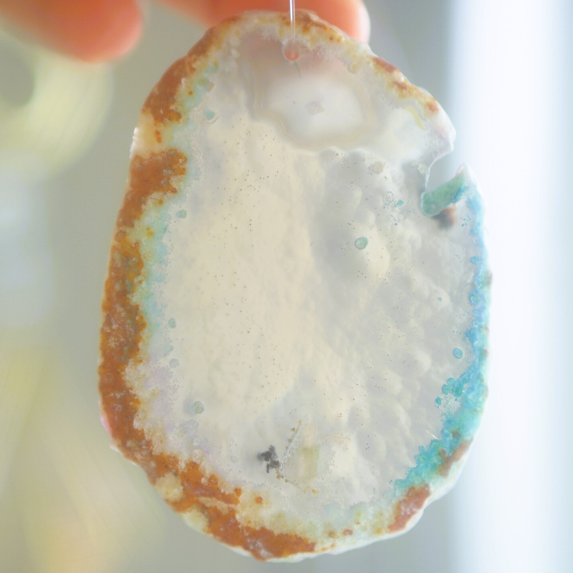 ✧染色の石なので耐光性(光による経年でのカラー変化の耐性)に優れているわけではなくベランダなど一日の中で長時間強い日光に当たるような場所に飾られるのはおすすめしないのですが、陽光に透かした時にだけ真価を発揮する美しさがありますので、是非、時折翳したりして光と一緒にお楽しみいただけたらと思います。特に濃い鮮やかな色など、色変化が気になられる場合は、日光のあまり当たらない場所に飾ってくださいね✧