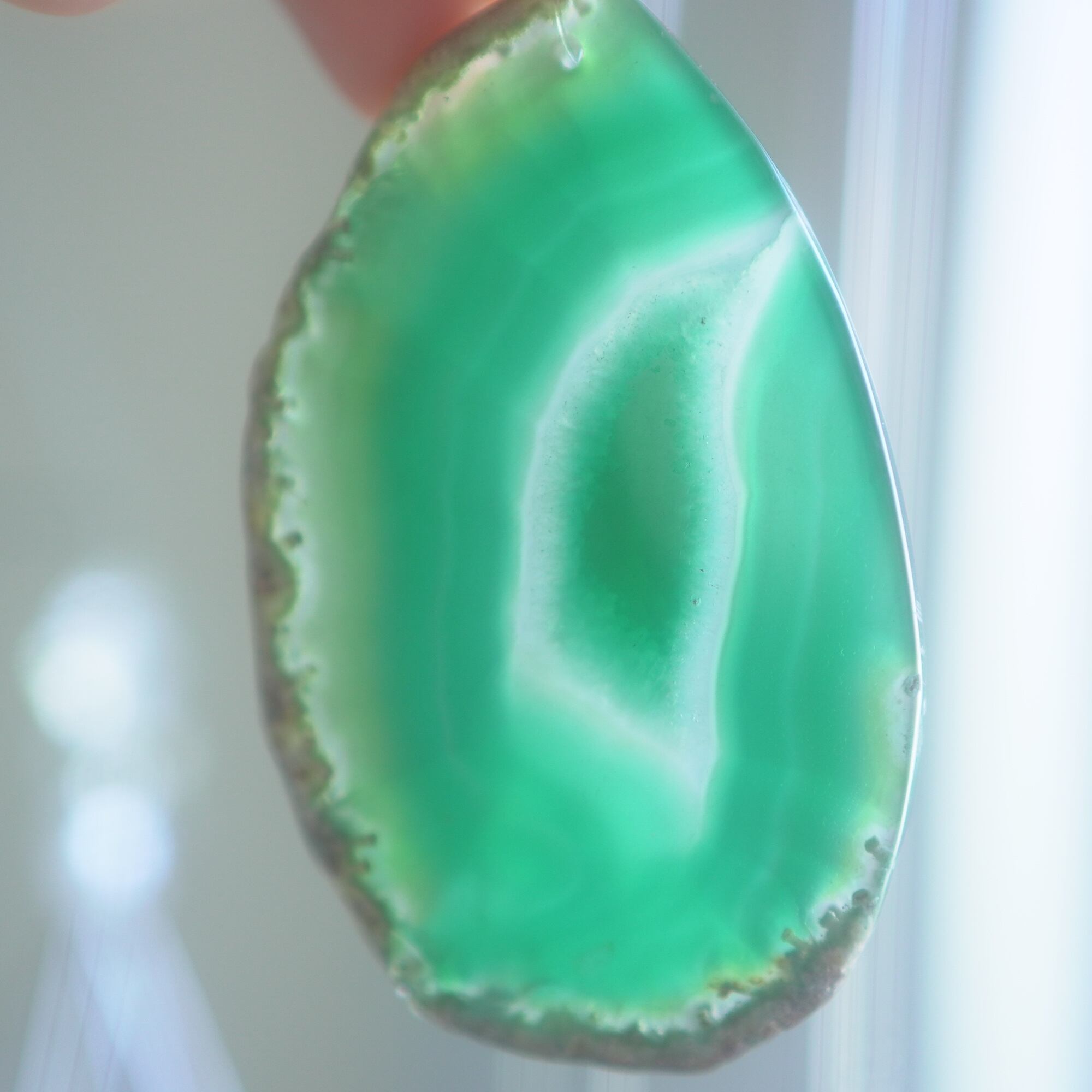 ✧染色の石なので耐光性(光による経年でのカラー変化の耐性)に優れているわけではなくベランダなど一日の中で長時間強い日光に当たるような場所に飾られるのはおすすめしないのですが、陽光に透かした時にだけ真価を発揮する美しさがありますので、是非、時折翳したりして光と一緒にお楽しみいただけたらと思います。特に濃い鮮やかな色など、色変化が気になられる場合は、日光のあまり当たらない場所に飾ってくださいね✧