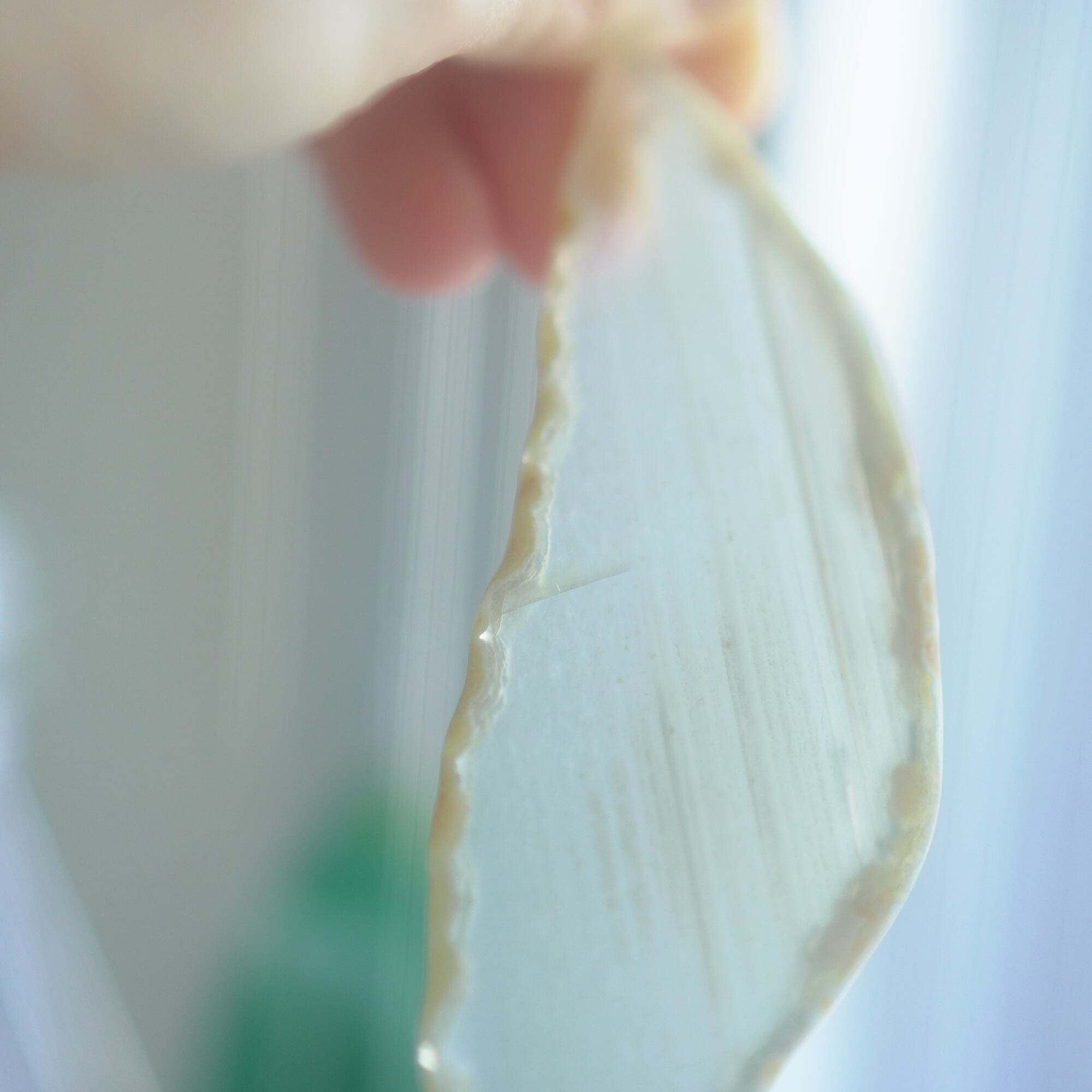また、透明感が魅力でもあるので、窓際で自然光を通した際と、室内灯の下で光を通さずに見る際、異なる表情を見せてくれますのでその違いも是非お楽しみいただけたらと思います。