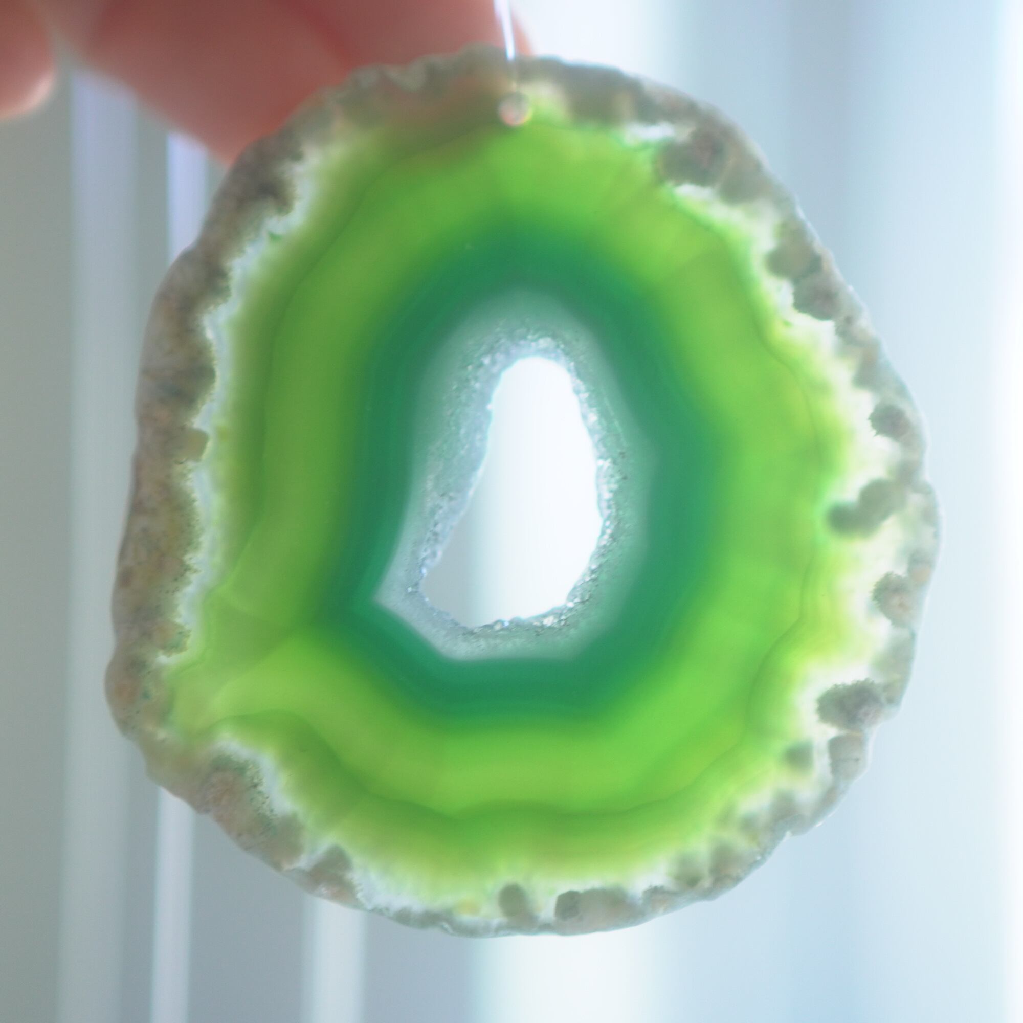 ✧染色の石なので耐光性(光による経年でのカラー変化の耐性)に優れているわけではなくベランダなど一日の中で長時間強い日光に当たるような場所に飾られるのはおすすめしないのですが、陽光に透かした時にだけ真価を発揮する美しさがありますので、是非、時折翳したりして光と一緒にお楽しみいただけたらと思います。特に濃い鮮やかな色など、色変化が気になられる場合は、日光のあまり当たらない場所に飾ってくださいね✧