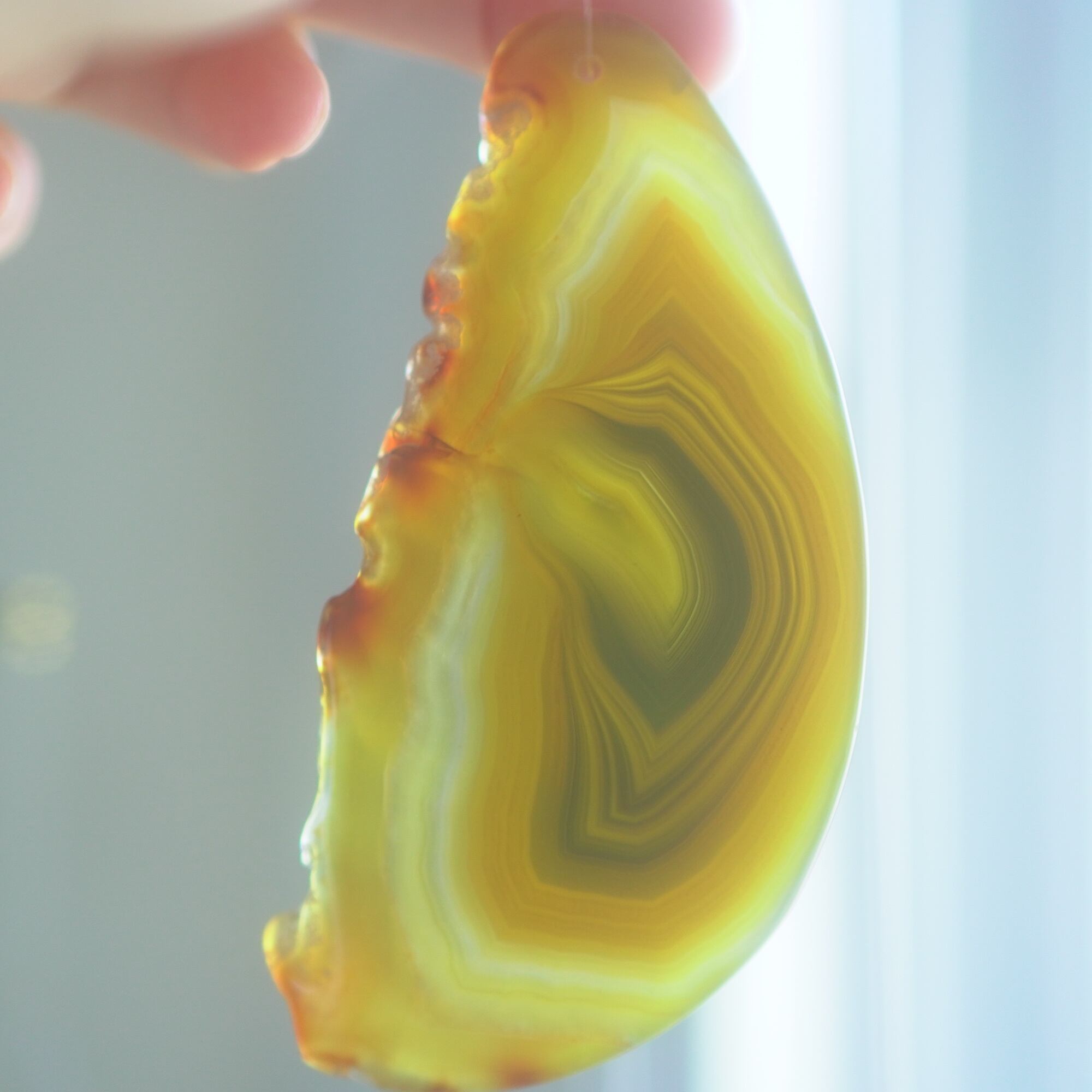 ✧染色の石なので耐光性(光による経年でのカラー変化の耐性)に優れているわけではなくベランダなど一日の中で長時間強い日光に当たるような場所に飾られるのはおすすめしないのですが、陽光に透かした時にだけ真価を発揮する美しさがありますので、是非、時折翳したりして光と一緒にお楽しみいただけたらと思います。特に濃い鮮やかな色など、色変化が気になられる場合は、日光のあまり当たらない場所に飾ってくださいね✧
