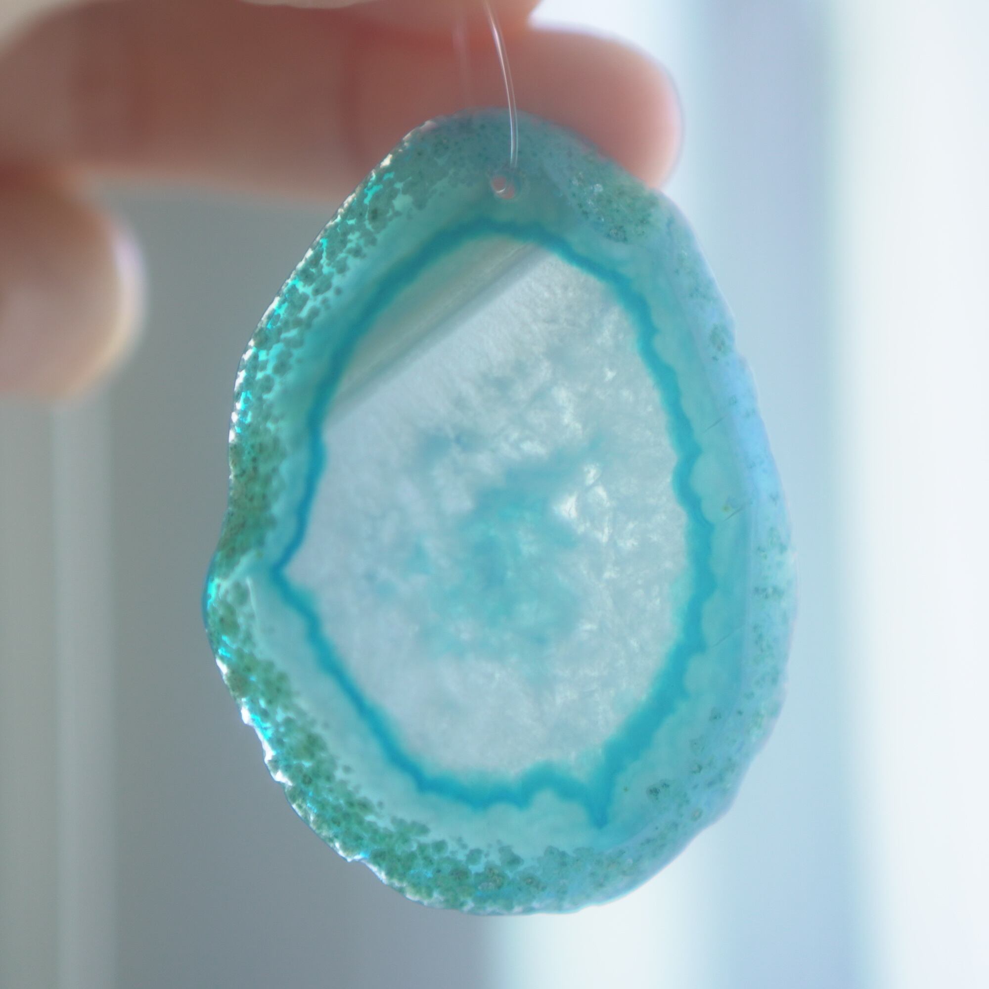 ✧染色の石なので耐光性(光による経年でのカラー変化の耐性)に優れているわけではなくベランダなど一日の中で長時間強い日光に当たるような場所に飾られるのはおすすめしないのですが、陽光に透かした時にだけ真価を発揮する美しさがありますので、是非、時折翳したりして光と一緒にお楽しみいただけたらと思います。特に濃い鮮やかな色など、色変化が気になられる場合は、日光のあまり当たらない場所に飾ってくださいね✧