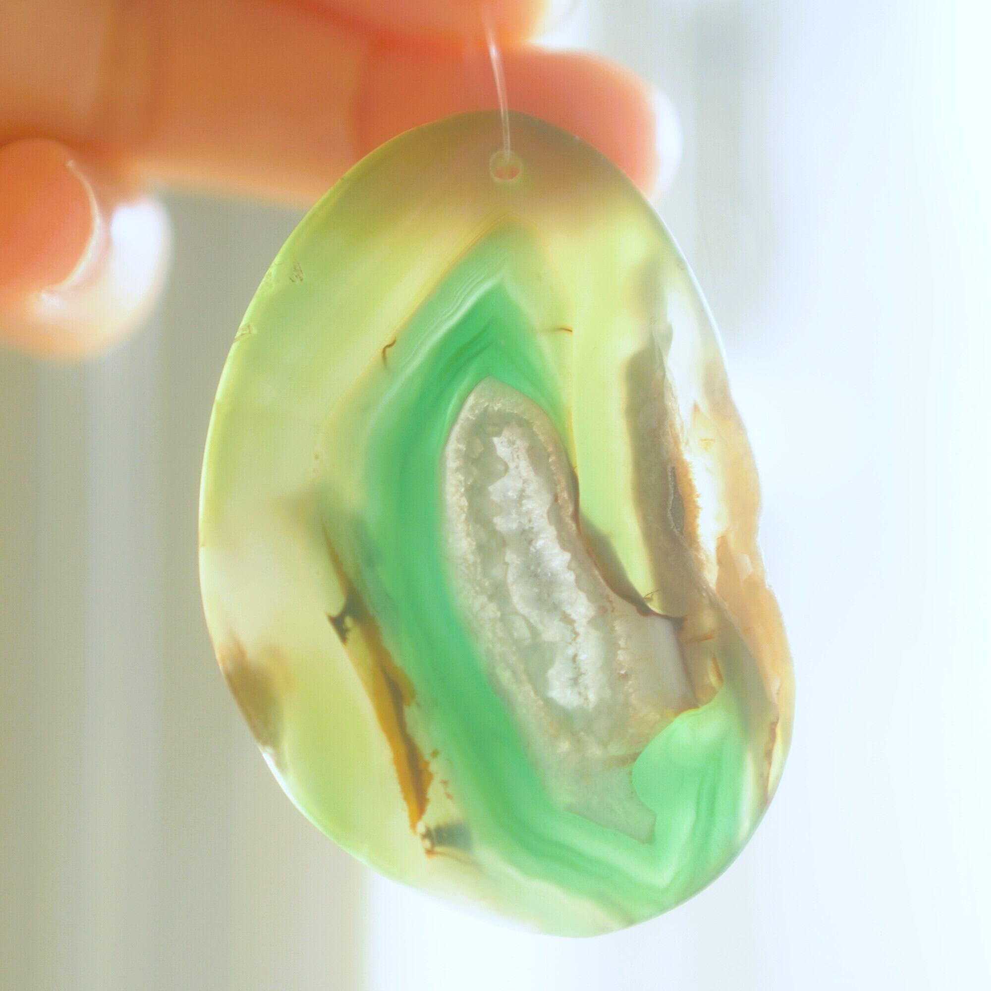 Agate Slice , Nylon Cord , Metal