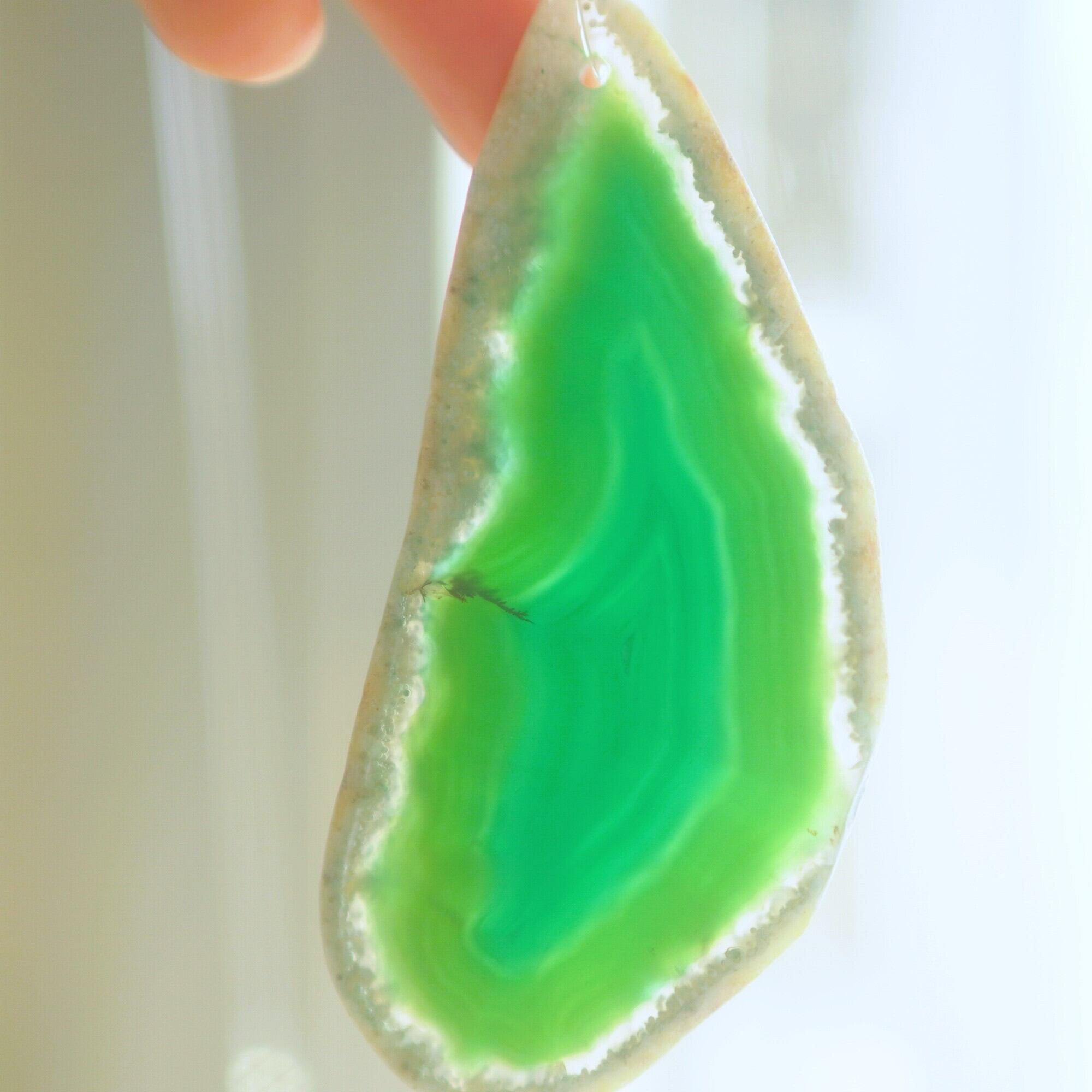 ✧染色の石なので耐光性(光による経年でのカラー変化の耐性)に優れているわけではなくベランダなど一日の中で長時間強い日光に当たるような場所に飾られるのはおすすめしないのですが、陽光に透かした時にだけ真価を発揮する美しさがありますので、是非、時折翳したりして光と一緒にお楽しみいただけたらと思います。特に濃い鮮やかな色など、色変化が気になられる場合は、日光のあまり当たらない場所に飾ってくださいね✧