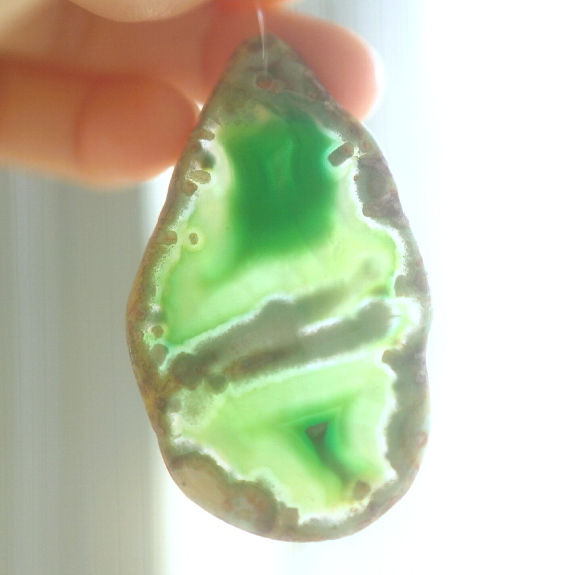 ✧染色の石なので耐光性(光による経年でのカラー変化の耐性)に優れているわけではなくベランダなど一日の中で長時間強い日光に当たるような場所に飾られるのはおすすめしないのですが、陽光に透かした時にだけ真価を発揮する美しさがありますので、是非、時折翳したりして光と一緒にお楽しみいただけたらと思います。特に濃い鮮やかな色など、色変化が気になられる場合は、日光のあまり当たらない場所に飾ってくださいね✧