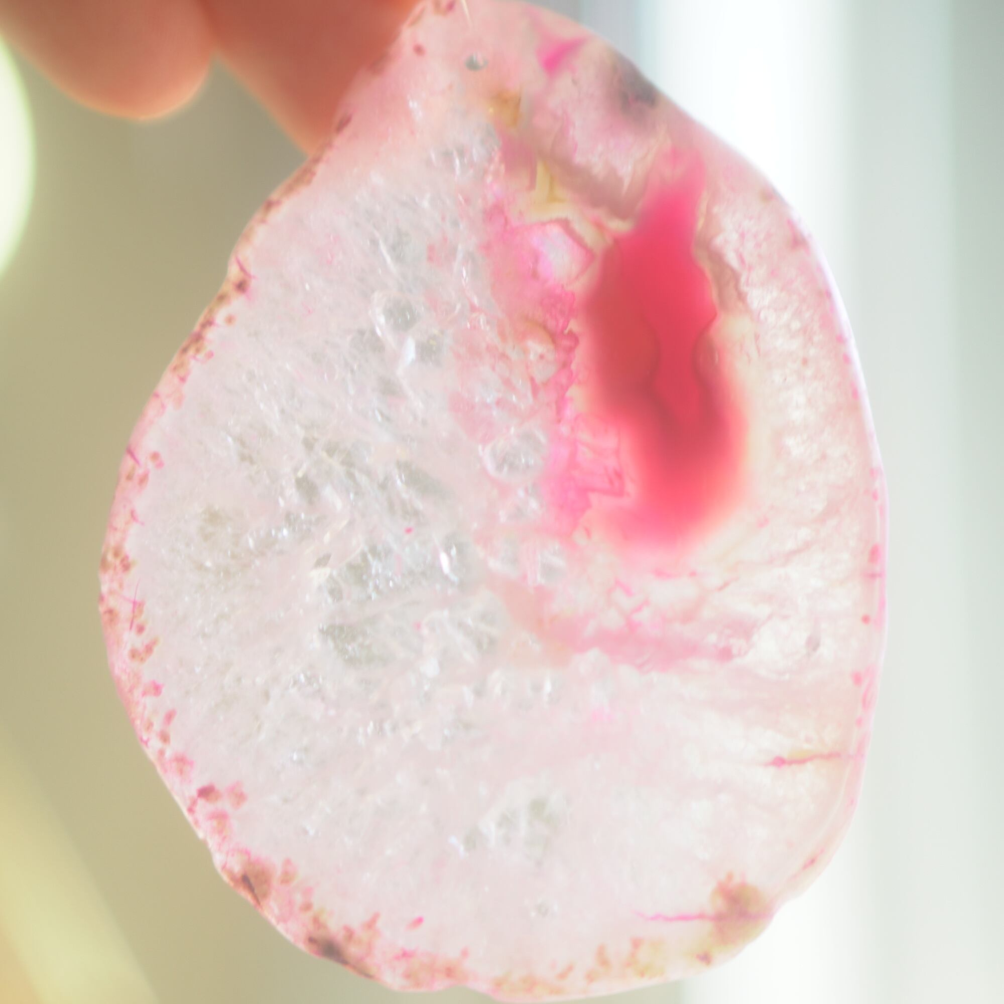 ✧染色の石なので耐光性(光による経年でのカラー変化の耐性)に優れているわけではなくベランダなど一日の中で長時間強い日光に当たるような場所に飾られるのはおすすめしないのですが、陽光に透かした時にだけ真価を発揮する美しさがありますので、是非、時折翳したりして光と一緒にお楽しみいただけたらと思います。特に濃い鮮やかな色など、色変化が気になられる場合は、日光のあまり当たらない場所に飾ってくださいね✧