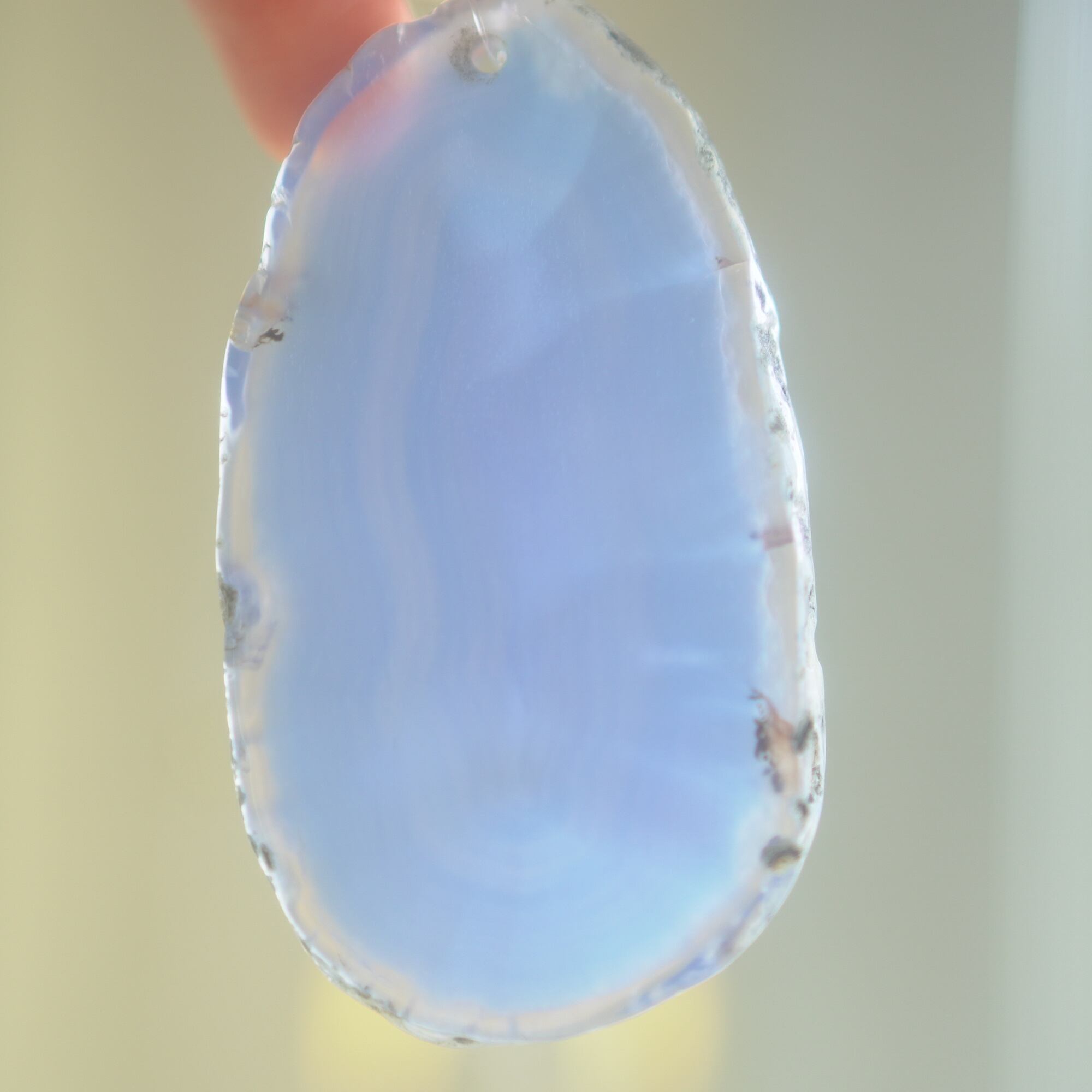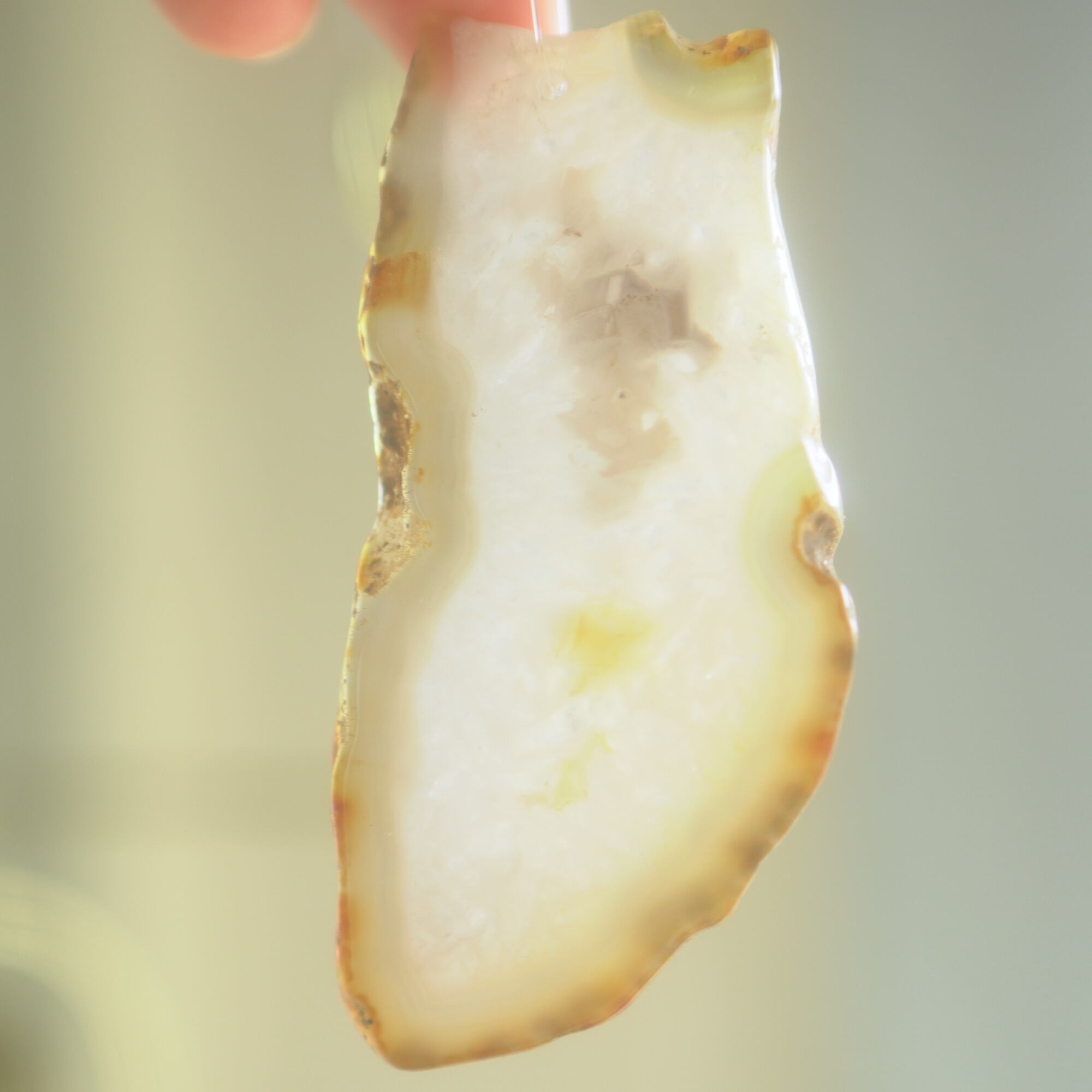 重ねる石同士の側面の加工状態によっても良い音が鳴ったり鳴らなかったり、石の見た目だけで組み合わせを決められないことが難しいポイントでもあるのですが、そんな中、たくさんの石の中から選ばれた5枚のスライスアゲートから出来上がったチャイムたちは、どこか悠々自適に空を泳ぐ妖精のようでもあり、それぞれの音を楽しそうに奏でてくれます。