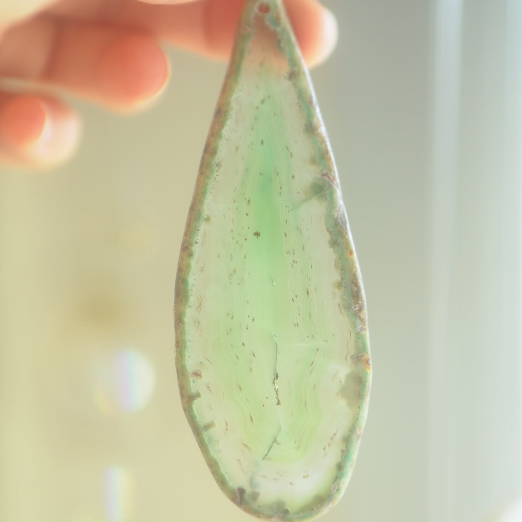 ✧染色の石なので耐光性(光による経年でのカラー変化の耐性)に優れているわけではなくベランダなど一日の中で長時間強い日光に当たるような場所に飾られるのはおすすめしないのですが、陽光に透かした時にだけ真価を発揮する美しさがありますので、是非、時折翳したりして光と一緒にお楽しみいただけたらと思います。特に濃い鮮やかな色など、色変化が気になられる場合は、日光のあまり当たらない場所に飾ってくださいね✧